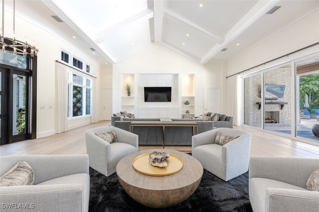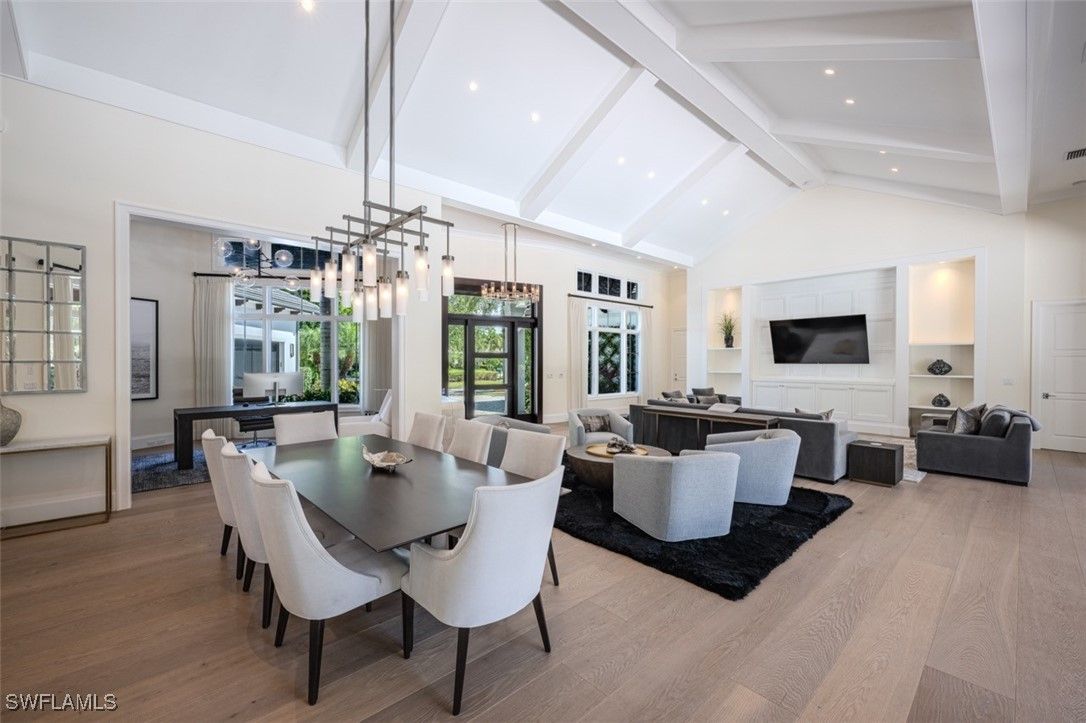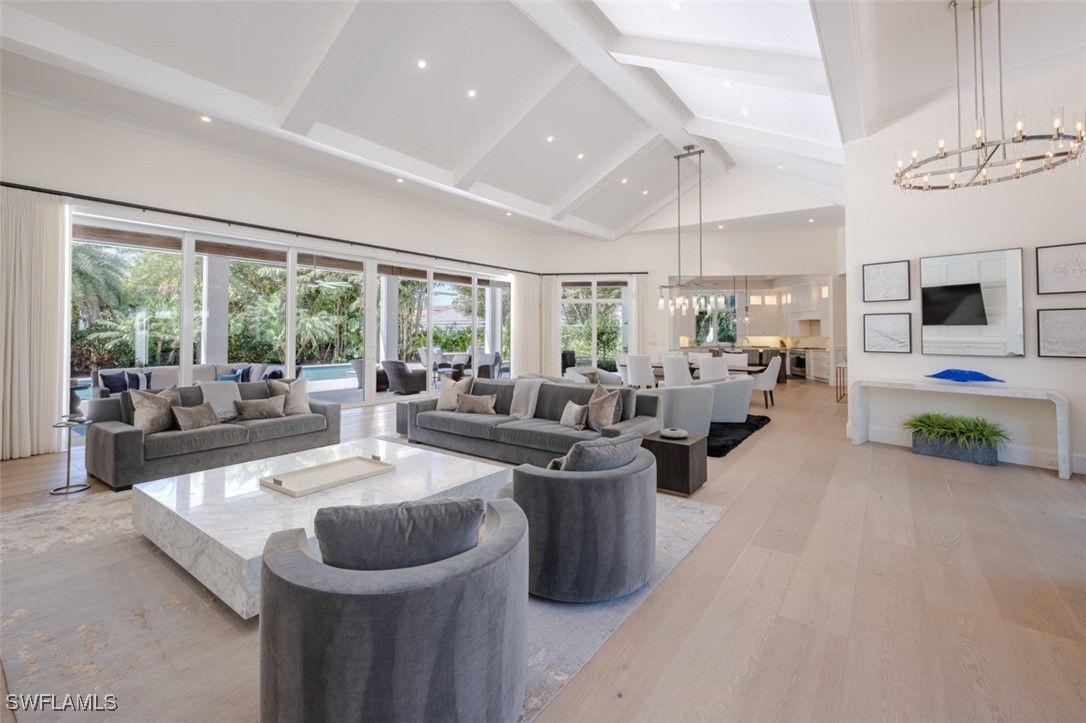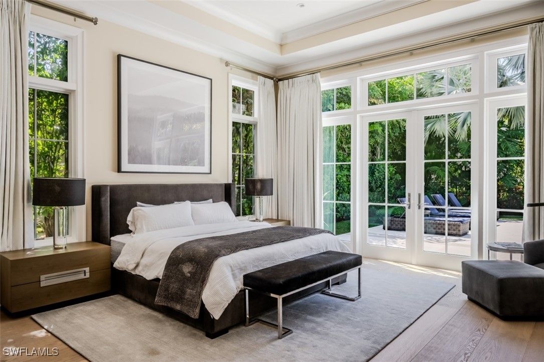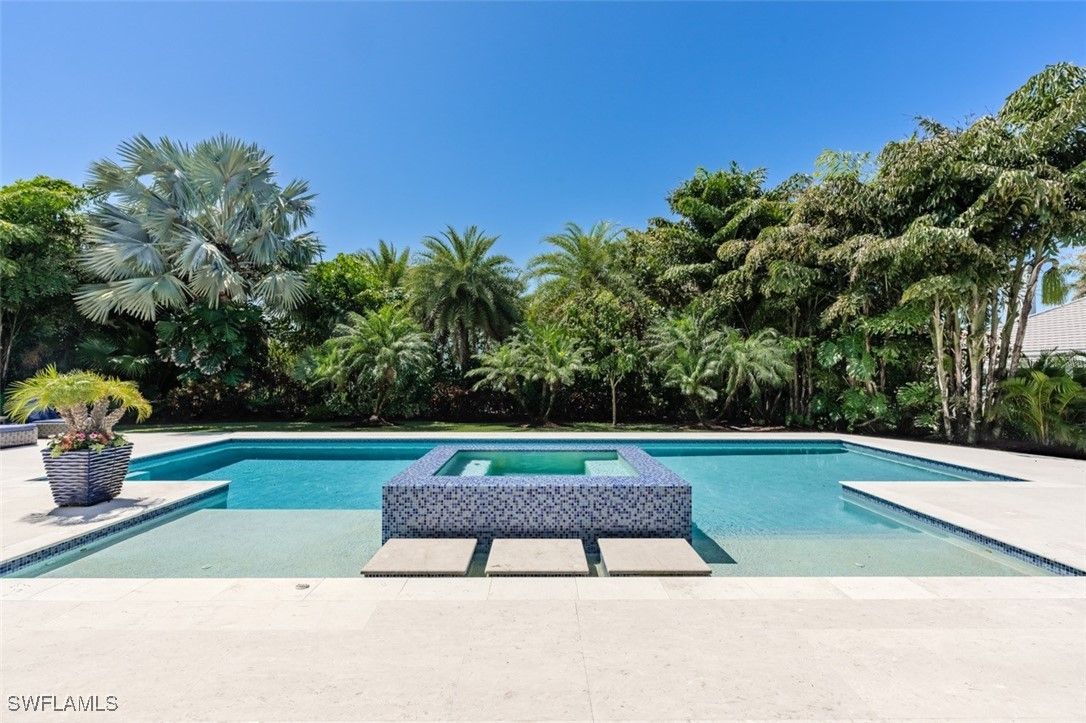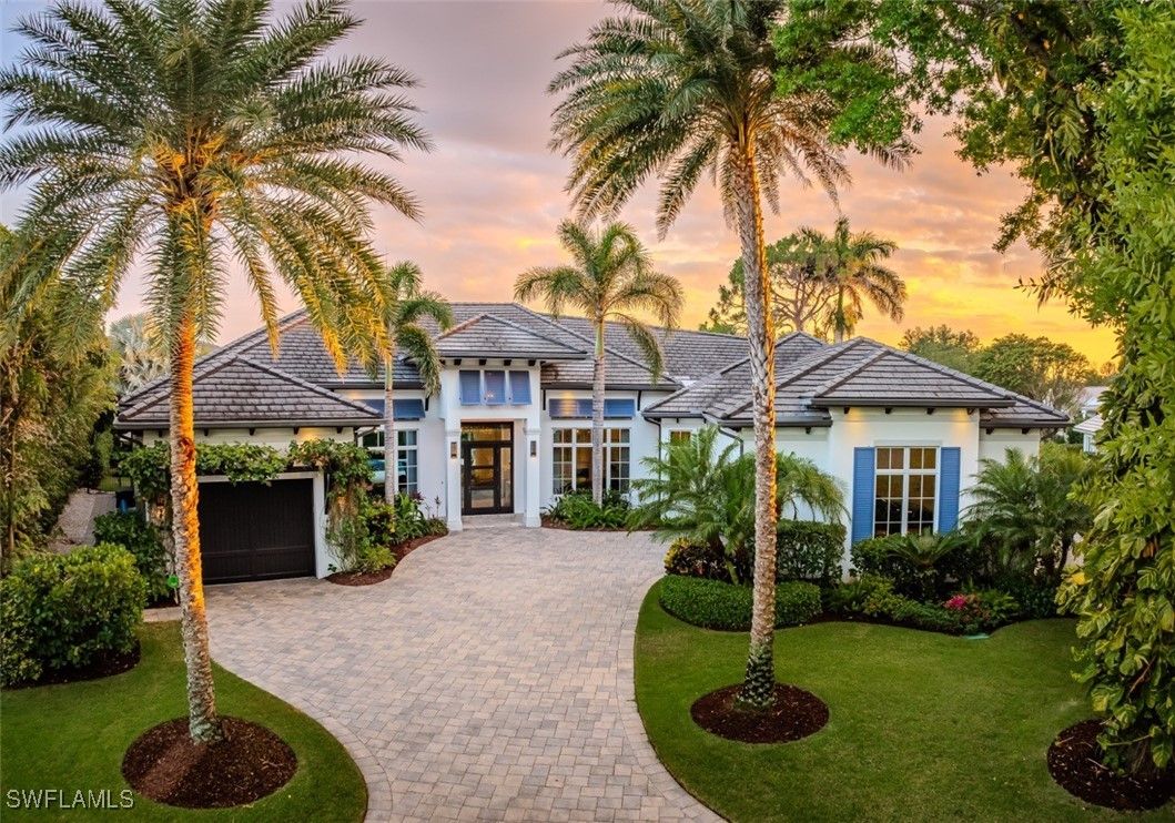 Welcome to this exquisitely designed British West Indies home, where timeless elegance meets modern luxury. Nestled on a beautifully landscaped cul-de-sac in the heart of Pelican Bay, this residence offers a serene retreat with every contemporary comfort. As you step inside, you're greeted by an open and inviting floor plan that seamlessly integrates with the expansive, lush backyard. Here, you'll find a 45-foot resort-style pool and an infinity edge spa, surrounded by a spacious entertainment and dining area, perfect for gatherings. This outdoor oasis is enhanced by a cozy fire pit and an outdoor shower, all enjoying coveted Southern exposure. The chef's kitchen is a culinary masterpiece, featuring custom inset cabinetry, stunning quartzite counters, and top-of-the-line Wolf and Sub-Zero appliances, along with a built-in Miele coffee station for the perfect start to your day. This stunning home boasts four en-suite bedrooms, providing ample space and privacy for family and guests, along with a dedicated office and a custom wine bar. A 3-car garage offers convenience and additional storage. Throughout the home, you'll find French white oak flooring and superior quality finishes that elevate the ambiance of this luxurious lifestyle. Living in Pelican Bay means enjoying unparalleled amenities, including two private beach clubs with miles of pristine white sandy beach, two exclusive restaurants, and complimentary chair and umbrella service. The community center offers a state-of-the-art fitness center, spa, and 18 Har-Tru tennis courts, ensuring an active and carefree lifestyle. Experience the best of Pelican Bay living in this exceptional home, where every detail has been carefully curated for your comfort and enjoyment. Carefree living at its finest awaits you!