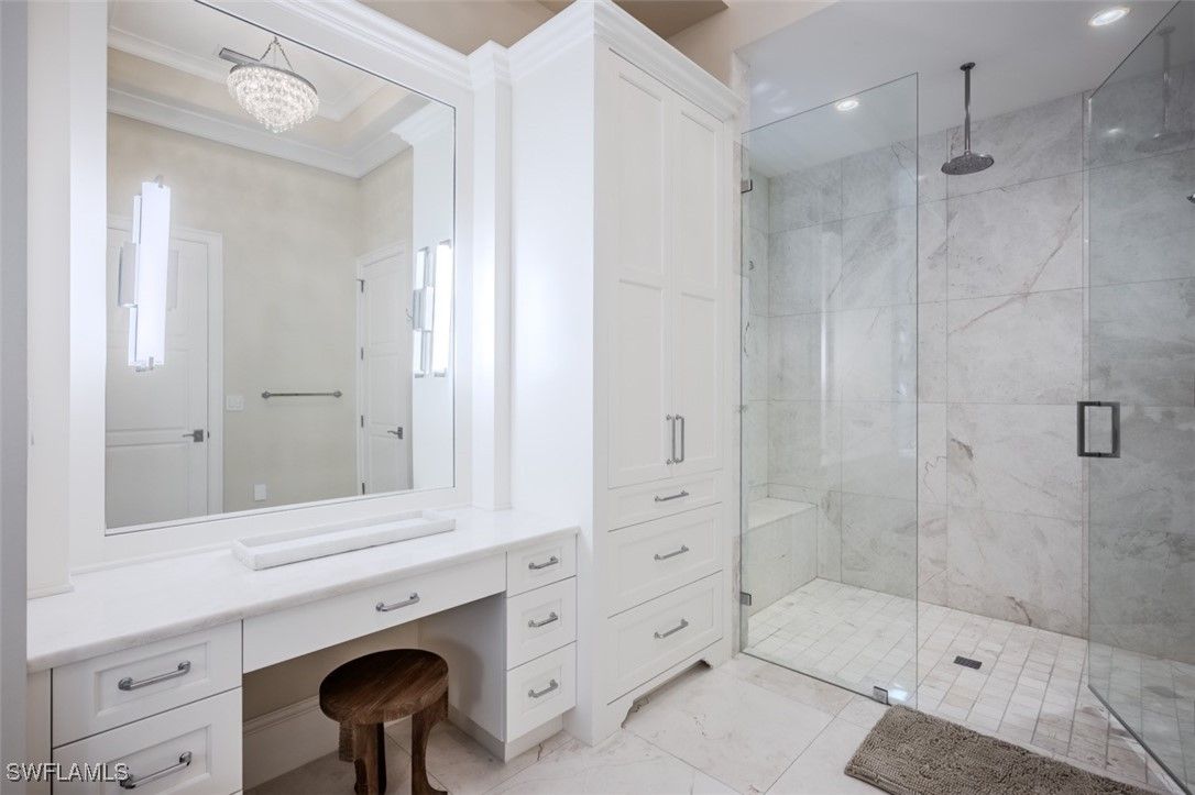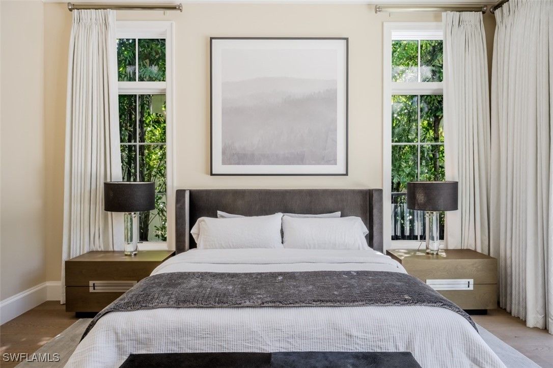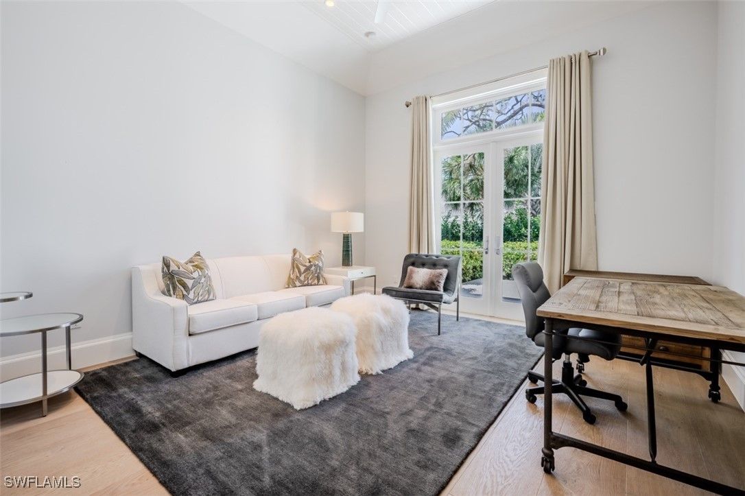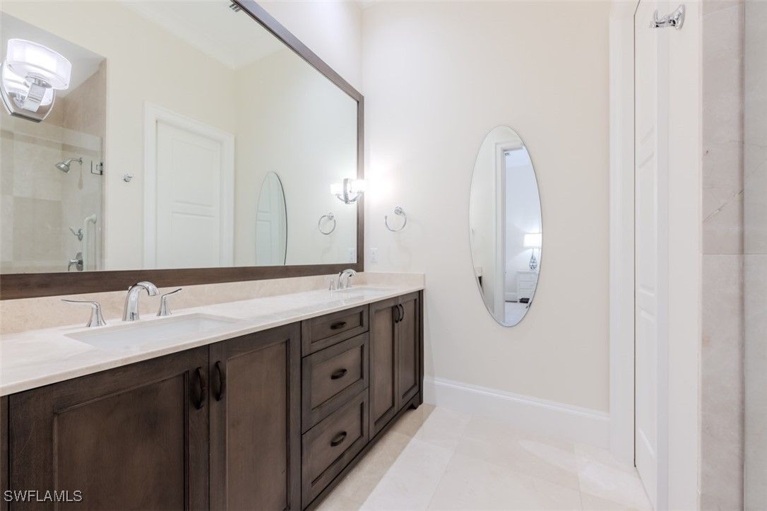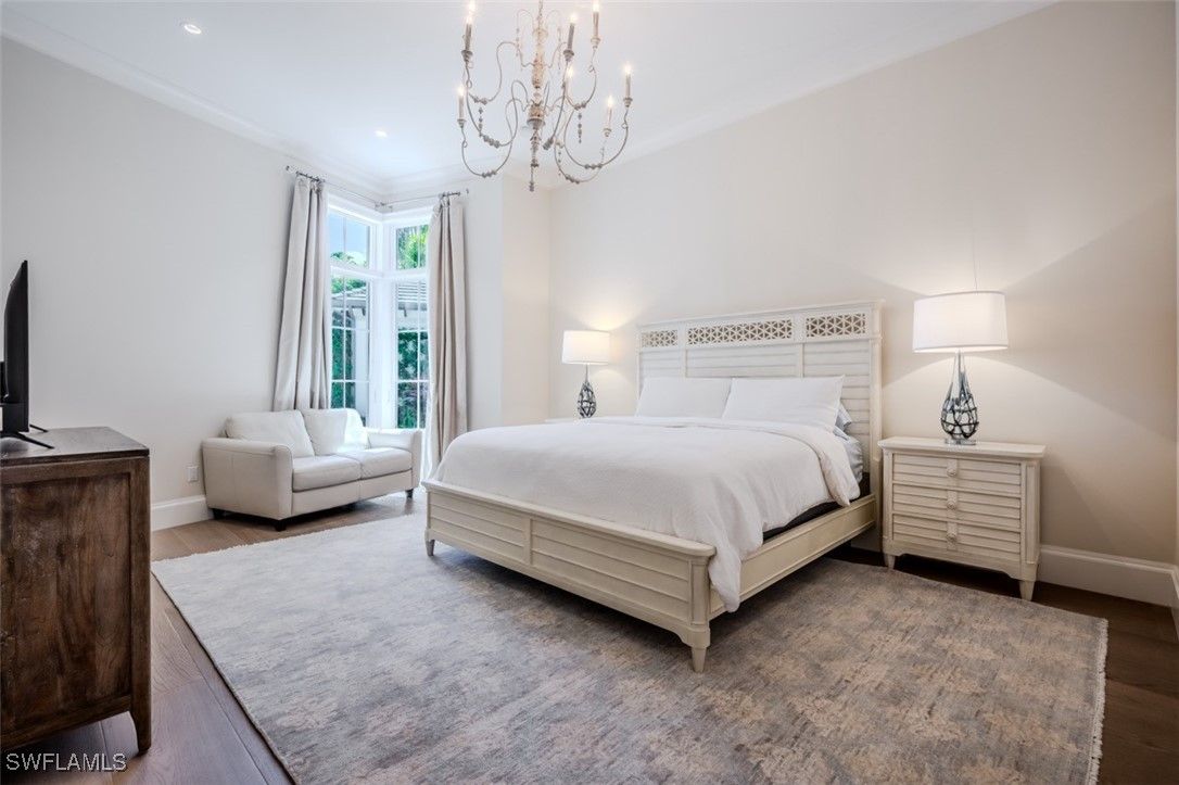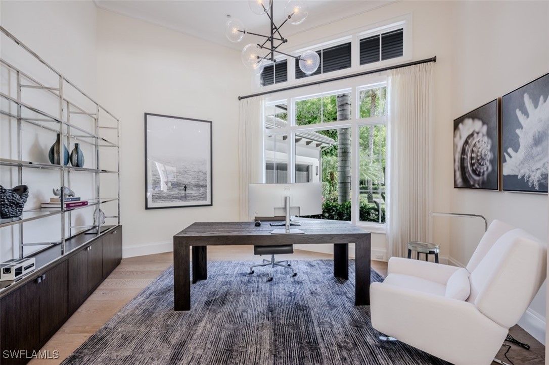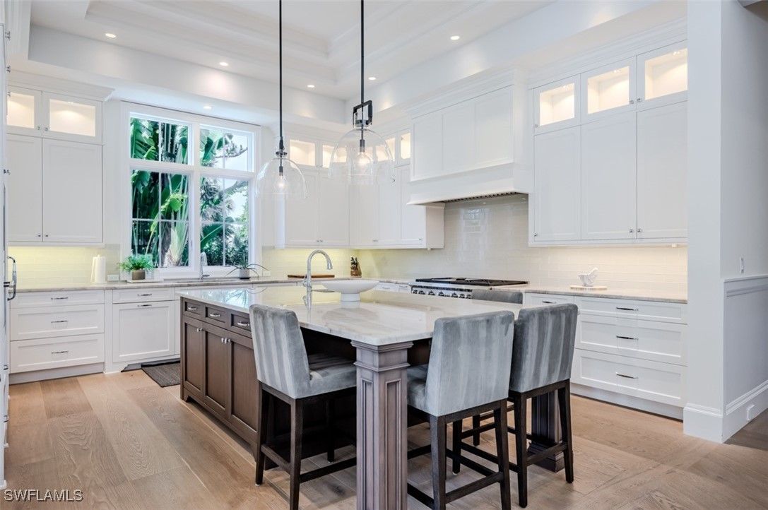 Welcome to this exquisitely designed British West Indies home, where timeless elegance meets modern luxury. Nestled on a beautifully landscaped cul-de-sac in the heart of Pelican Bay, this residence offers a serene retreat with every contemporary comfort. As you step inside, you're greeted by an open and inviting floor plan that seamlessly integrates with the expansive, lush backyard. Here, you'll find a 45-foot resort-style pool and an infinity edge spa, surrounded by a spacious entertainment and dining area, perfect for gatherings. This outdoor oasis is enhanced by a cozy fire pit and an outdoor shower, all enjoying coveted Southern exposure. The chef's kitchen is a culinary masterpiece, featuring custom inset cabinetry, stunning quartzite counters, and top-of-the-line Wolf and Sub-Zero appliances, along with a built-in Miele coffee station for the perfect start to your day. This stunning home boasts four en-suite bedrooms, providing ample space and privacy for family and guests, along with a dedicated office and a custom wine bar. A 3-car garage offers convenience and additional storage. Throughout the home, you'll find French white oak flooring and superior quality finishes that elevate the ambiance of this luxurious lifestyle. Living in Pelican Bay means enjoying unparalleled amenities, including two private beach clubs with miles of pristine white sandy beach, two exclusive restaurants, and complimentary chair and umbrella service. The community center offers a state-of-the-art fitness center, spa, and 18 Har-Tru tennis courts, ensuring an active and carefree lifestyle. Experience the best of Pelican Bay living in this exceptional home, where every detail has been carefully curated for your comfort and enjoyment. Carefree living at its finest awaits you!