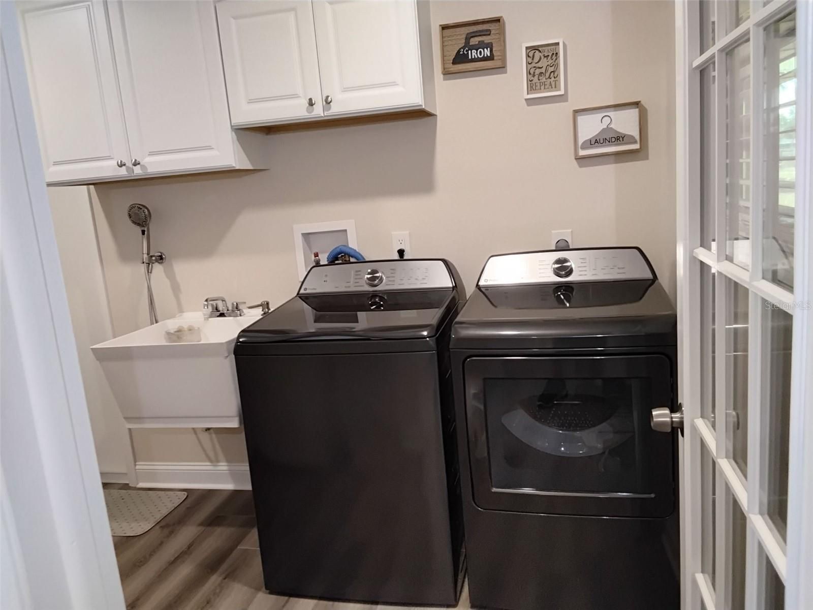 Located at the end of a cul-de-sac, this 3 bed/2 bath 2 car garage. Welcome to an incredible opportunity to embrace the vibrant 55+ lifestyle in Sun City Center! This home has been beautifully updated,New Roof Nov.2023, New HVAC in 2021, New Windows, French Doors, Total Ripipe with CPVC, updated Electrical Panel, Luxury Vinyl flooring and much more!! This home is moved in ready condition. Each of the 3 bedrooms are spacious, with plenty closet space, accompanied by 2 bathrooms that have been totally updated. Central of the home is the kitchen, featuring Granite countertops, and stainless steel appliances, with Dinning area and breakfast nook. The interior laundry room is equipped with washer & dryer, utility sink. Sun City Center offers endless amenities heated pools, fitness center, sports complex with two club houses with over 150 clubs