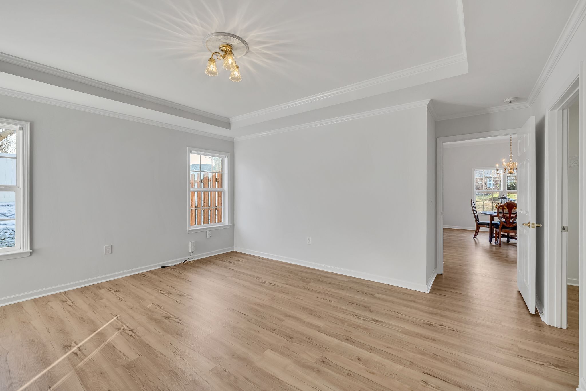 Nestled within the Cottages of Innsbrooke is this custom corner lot with light pouring in from every window. Providing so much privacy and new LVP throughout, this freshly painted jewel with open floor plan offers a combination living room/dining room and a flex room that can be used as an office or cozy library. Enjoy winter nights by the fireplace (with remote) or summer days on the patio with retractable awning. The eat-in kitchen has a large pantry and under-cabinet lighting. The primary ensuite features tray ceilings, an enormous walk-in closet, and a second large closet. In the adjoining bath, double vanity sinks and a garden tub provide a tranquil oasis. A second bathroom offers a low-step shower, and the two-car garage was built with a hobbyist in mind! This home has been well maintained: HVAC (2024), garage door opener (2023), dishwasher (2022), water heater (2021). A 55+ community with sidewalks, access to the pool, and a clubhouse with an exercise room & playground. Near grocery stores, banks, restaurants & medical facilities, this location, subdivision, and home have everything you could need or want!