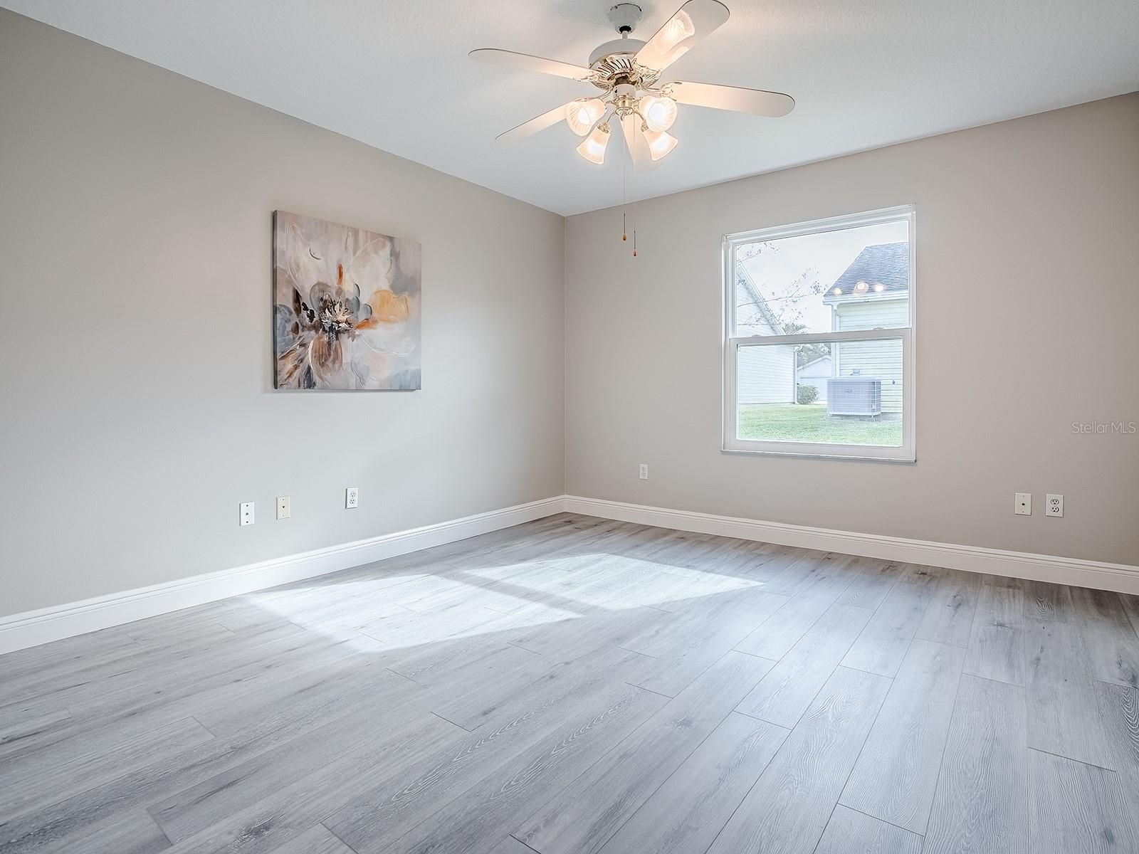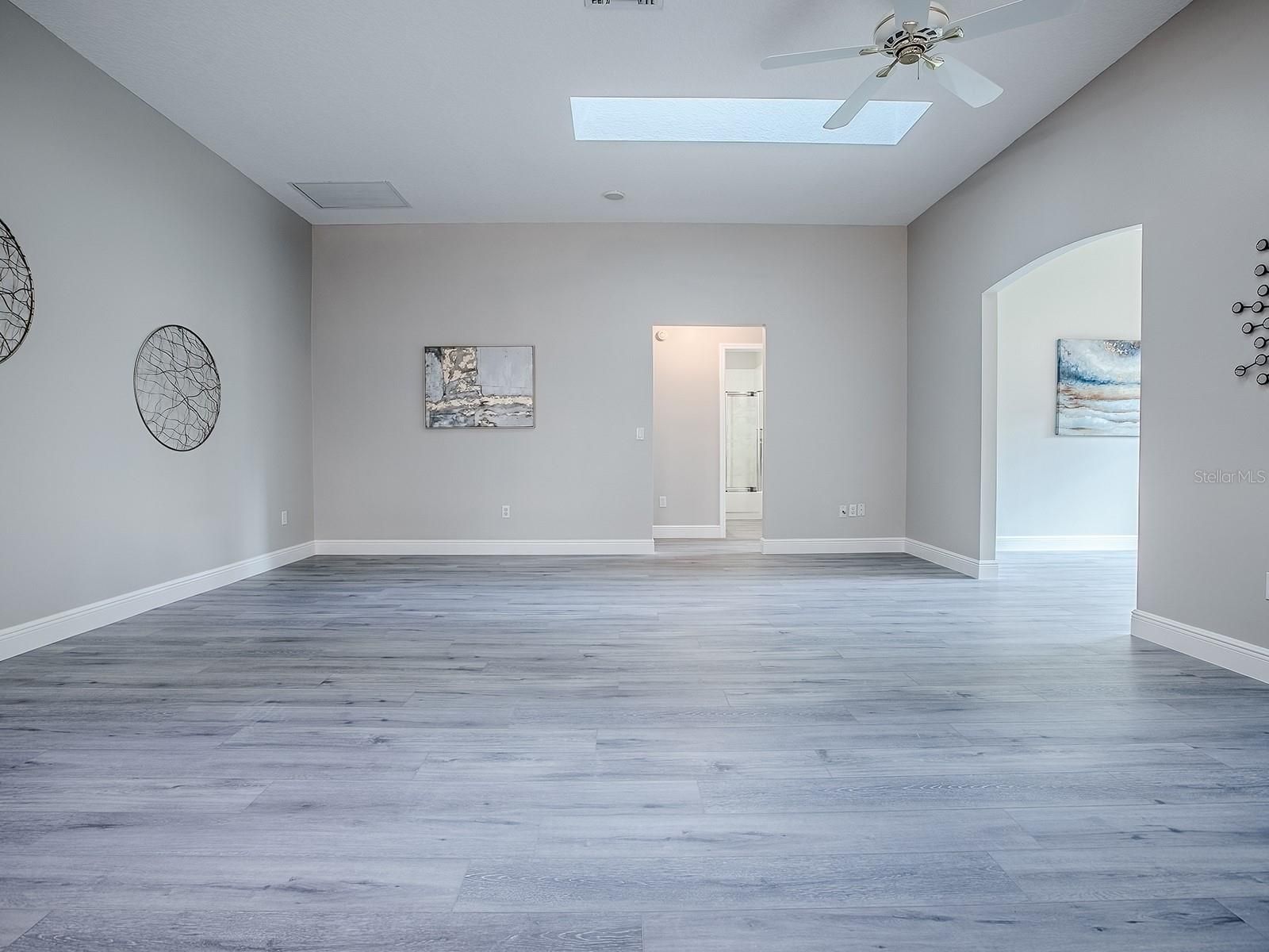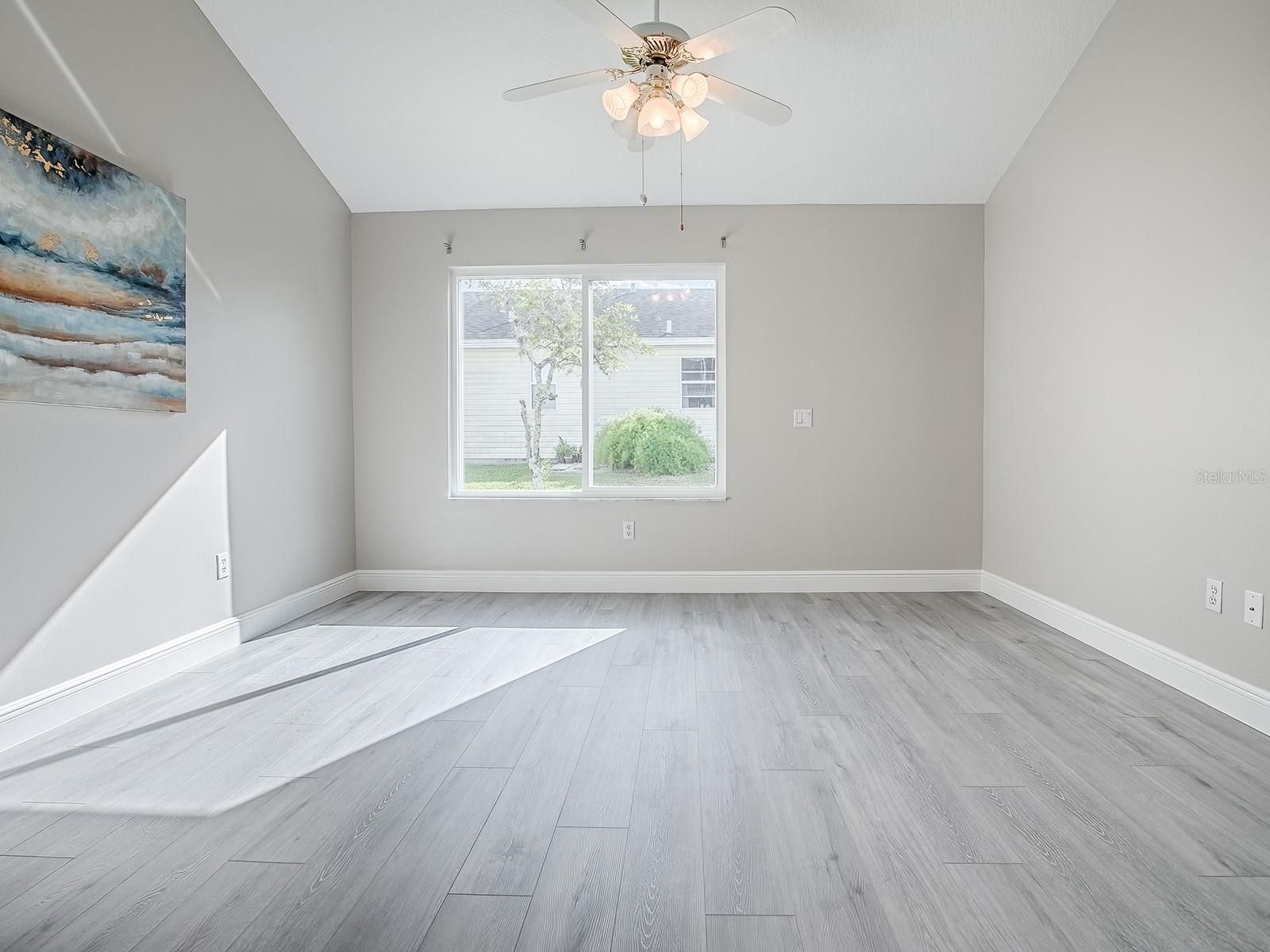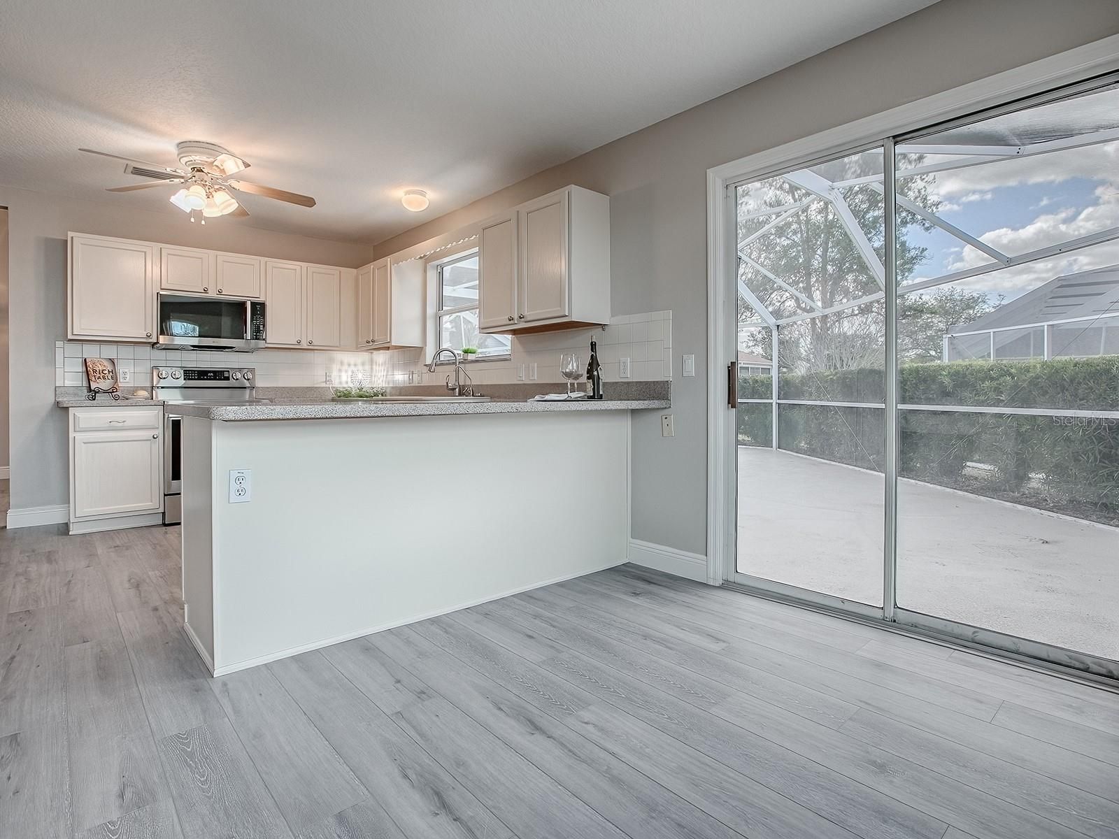 BOND PAID! Welcome to this beautifully updated Santa Domingo POOL HOME, perfectly situated on a quiet cul-de-sac in the Village of Rio Grande. If you are looking for a move-in-ready home, this one is sure to impress! Attractive landscaping and fresh exterior trim paint create wonderful curb appeal. Inside, you’re greeted by a welcoming foyer with a convenient coat closet, vaulted ceilings with NO POPCORN, and NEW luxury vinyl plank flooring throughout. The bright, updated kitchen features freshly painted cabinetry, brand-new stainless-steel appliances, Quartz countertops, a pantry, built-in desk space, and a window overlooking the pool. A cozy dinette just off the kitchen features sliding glass doors that lead directly to the pool area, perfect for casual dining and indoor-outdoor living. The spacious living room has two skylights that illuminate the space and showcase volume ceilings, and flows seamlessly into the formal dining area. At the same time, the Florida Room adds valuable living space and is ideally located just off the living room, great for entertaining. The owner’s suite offers dual closets and private access to the pool, along with an updated en-suite bath featuring QUARTZ countertops, dual sinks, a walk-in shower, and a linen closet. Step outside to enjoy the SPARKLING HEATED POOL with a newly screened birdcage, ideal for relaxing or entertaining in the Florida sunshine. The guest wing includes two comfortable bedrooms with double-door closets, separated by an updated guest bath with a new vanity and decorative glass door in the tub/shower combo. The laundry room is equipped with storage cabinets, a set sink, and an additional refrigerator. You will love the OVERSIZED GARAGE with room for two cars plus a golf cart! Recent improvements include NEW interior paint, NEW flooring, removal of popcorn ceilings, NEW front and back windows, freshly painted pool decking, NEW birdcage screens, NEW garage paint and floor, NEW exterior trim paint, NEW water heater, and all NEW appliances. Roof 2014, HVAC 2018. Conveniently located between Lake Sumter and Spanish Springs Town Squares. Located just 1/2 mile to the Rio Grande Neighborhood Pool and minutes to County Road 466 with numerous grocery stores, restaurants, banks, and medical. Close to three large Regional Recreation Centers, Laurel Manor, Savannah Center, and La Hacienda. Plus, this home is also close to several Country Clubs & Championship Golf Courses such as Tierra Del Sol, Hacienda Hills, and Orange Blossom Hills. This meticulously updated home is truly move-in ready. Don’t miss your opportunity to enjoy the best of Village living!