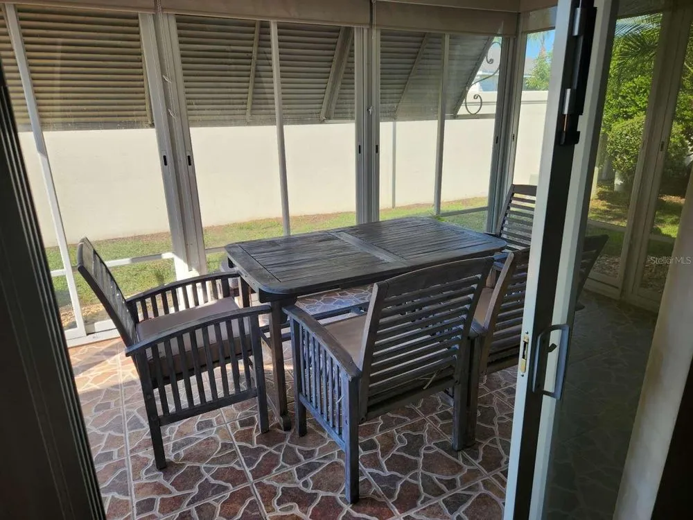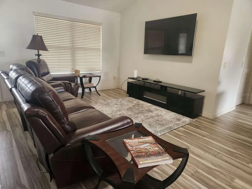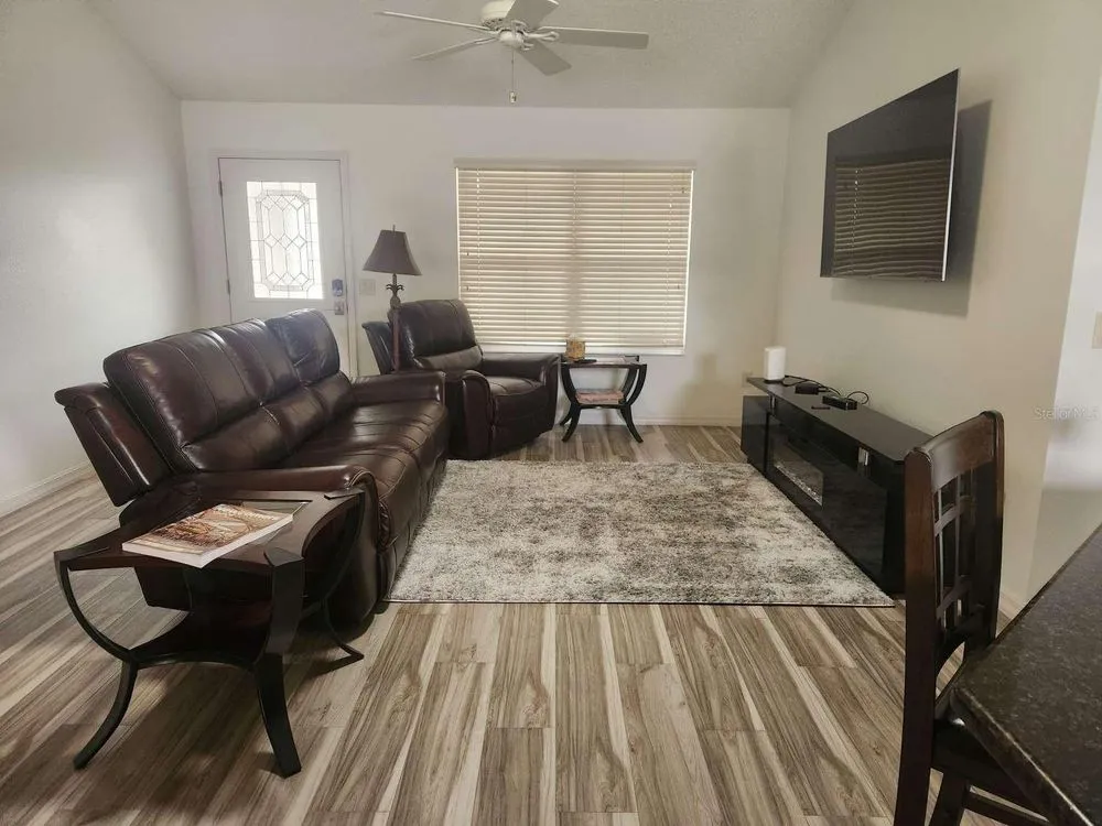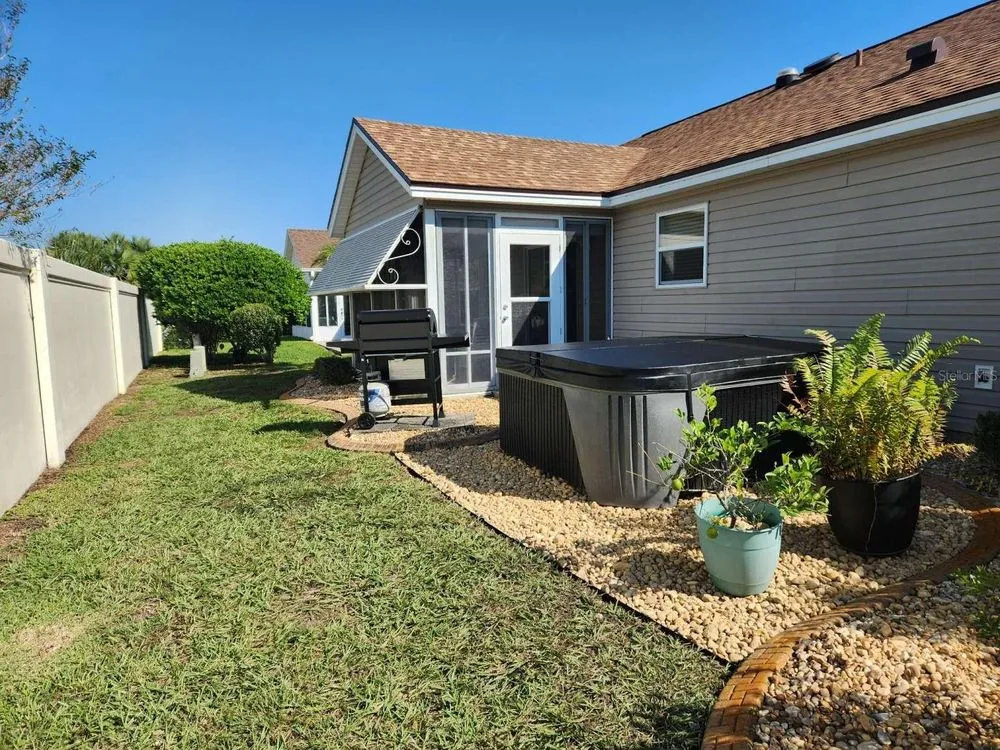 Designer Bougainvillea Split Floorplan Home is Located in the highly desirable Village of Winifred. Minutes to Palmer Legends Championship Course, Palmer Country club and less then 10 minutes from Sumter Landing. This Remodeled Updated Ready to Move in, 3 bedroom, 2 bathroom split Bedroom and Open floor plan with Vaulted Ceiling and many upgrade features Granite Kitchen and Baths, Upgraded stainless kitchen with French door refrigerator, Dishwasher, Gas Stove with convection/ air fry oven, microwave overhead, garbage disposal Wood Like Porcelain Tile Flooring Thru-out, Split floorplan with master opposite side of house and includes a separation door from living area on opposite side of house to close off guest bedrooms and bath, Master Bedroom has 2 walk in closets and bath with dual granite top sinks, walk in shower and privacy toilet. Front Screened Porch Rear Enclosed Sunroom with Slider Windows AC/Heat, Roller Blinds. Hard to find Privacy Wall behind house Furniture etc. available extra No Bond Remodeled Updated 2023 New Roof 4/2020 New HVAC 7/2016 Hot Tub with lid Stainless Steel Gas Grille Large Attic with stairs, Floor Storage Sealed Decorative Driveway Industrial Epoxy Garage Floor LP Gas Tankless Water Heater Whole House Water Filter and Softener System 3- Solar Tube Lights Lightning Spike Meter Protection Updated Landscaping Current Termite Contract Close to Lake Sumter Landing, Southern Trace, Laurel Manor, Polo Fields, Shopping, Dining, Doctors, more. Easy access to golf cart paths and Less than 15 minutes to Walmart, Publix, Fresh Market.