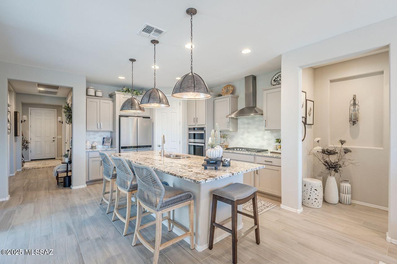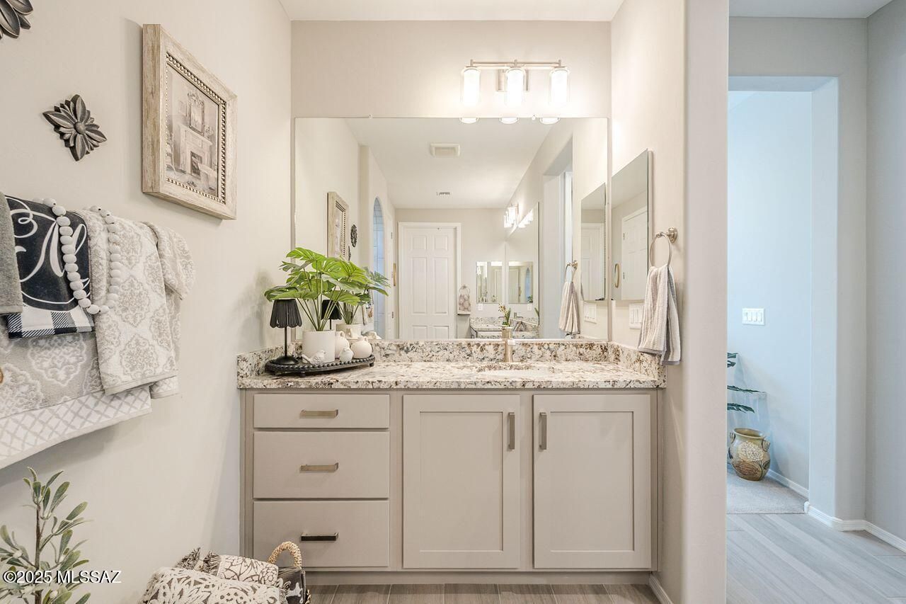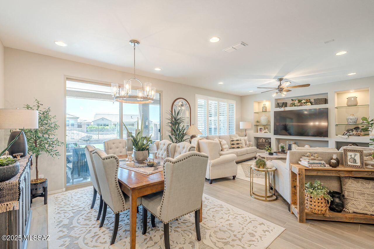 Step into refined desert living w/ this stunning 2-BD, 2-BA designer showcase home nestled in the heart of Del Webb Dove Mountain. Boasting 1,859 sq. ft. of thoughtfully designed space, this home blends modern elegance w/the warmth of a Sonoran landscape. Two generously sized BDRMS offer comfort & privacy. Flex Room: Perfect for a home office, creative studio, or cozy den. Open Concept Living: The kitchen, dining, & great room flow seamlessly--ideal for entertaining or relaxing. Owner's Suite Retreat: Features a walk-in closet & a luxurious en-suite bath w/dual separate sinks. Laundry Room is separate & easily accessible from the main hallway & garage. Washer/dryer/Refer included! Enjoy Arizona evenings on the covered patio, complete w/ a cozy FRPL. Plantation shutters thru out-Soft Water.