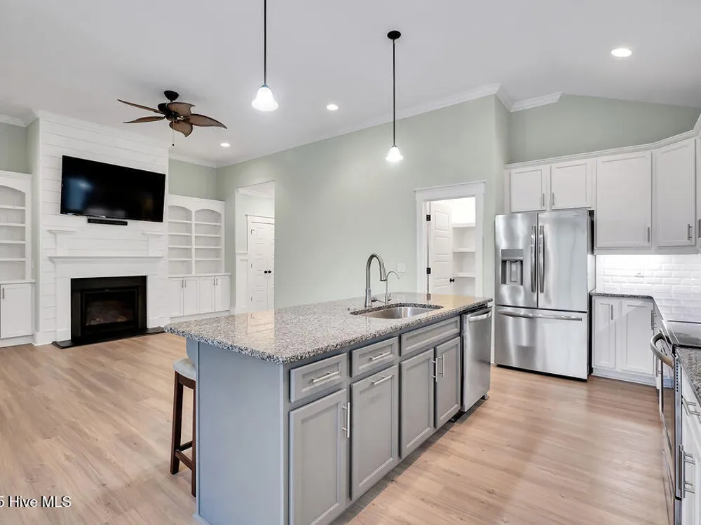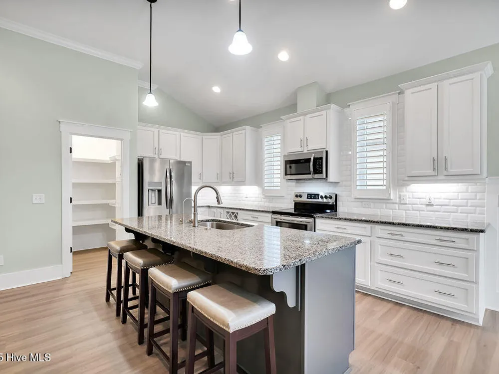 - Ceiling Fan(s), Gas Log, Walk-In Closet(s), Walk-in Shower, Pantry, Kitchen Island, High Ceilings