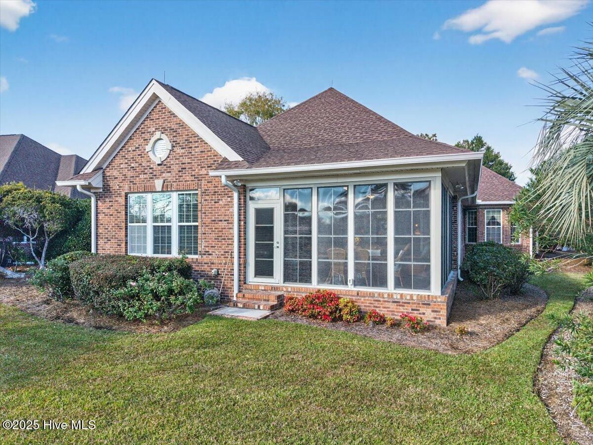Welcome to 7035 Bloomsbury Court SW, an elegant, brick waterfront home nestled within the prestigious gates of Ocean Ridge Plantation. From the moment you arrive, the manicured landscaping and peaceful pond views set the stage for a home that blends refined design with serene coastal living. Step inside to a light-filled great room where windows frame the tranquil pond and fountain beyond. The open layout features tile floors, crown molding, and trey ceilings, seamlessly connecting the spacious living, dining, and kitchen areas. The kitchen is both functional and inviting, offering stainless-steel appliances, granite countertops, abundant cabinetry, and a comfortable breakfast nook perfect for morning coffee or casual dining. All three bedrooms are conveniently located on the right side of the home, providing privacy and a natural flow for single-level living. The primary suite feels like a retreat, complete with a generous layout and spa-inspired ensuite bath. Step out to the three-season porch overlooking the pond—a peaceful setting to unwind, entertain, or enjoy the sound of the fountain as the sun sets. Beyond the home, Ocean Ridge Plantation is a lifestyle like no other. Golf enthusiasts can enjoy four premier courses, two driving ranges, multiple putting greens, and three clubhouses featuring restaurants, bars, and pro shops. For beach lovers, residents have exclusive access to a private oceanfront Beach Club at Sunset Beach, complete with parking, showers, dressing areas, kitchenettes, ocean-view decks, and an elevator for convenience. Spend your days soaking in panoramic ocean views, dining al fresco, or simply relaxing in one of North Carolina's most beloved coastal destinations. Those with a green thumb will also appreciate the community gardens and greenhouse, where residents can grow herbs, vegetables, or flowers, or simply relax under the shaded porch near the fountain while chatting with neighbors. Sedgefield is also a lawn maintenance free section!