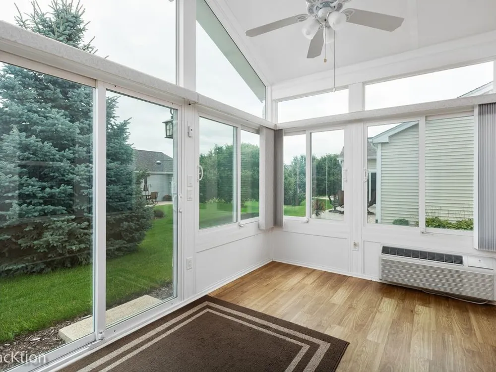 Ask and you shall receive... FRESHLY PAINTED! A blank palette awaits for you to decide what makes you feel at home. Come enjoy the desirable lifestyle of Del Webb's Shorewood Glens 55+ active adult gated community offering resort-style amenities! The painting is complete, and this home is move-in ready! This expanded Madison Ranch model offers true one-level living with no stairs. Freshly painted in a neutral palette, it provides the perfect backdrop to complement your personal style. Featuring 2 Bedrooms, 2 Full Bathrooms, a Sunroom, and a Separate Four-Season Florida Room with volume ceiling and walls of windows that fill the space with natural light-perfect for enjoying fresh breezes in a shaded retreat. It's a wonderful spot for relaxing or entertaining! Major Updates: NEW in 2025 - Furnace, A/C, Hot Water Heater & Paint! Refrigerator (2024) + Roof, Siding & Gutters (2023). The open floor plan offers a versatile layout, allowing you to decide what rooms work best as living or dining areas. The kitchen is well-appointed with SS appliances, gorgeous stacked 42" cabinetry, pantry, and an expanded breakfast bar that makes entertaining easy. The spacious primary suite offers a 12 x 6 walk-in closet and private bathroom. Custom cellular window blinds are installed throughout. Additional highlights include a heated garage with extensive upgrades and thoughtful storage solutions. Plus, enjoy generous spacing between neighboring homes for added privacy. Leave the outdoor maintenance behind and start filling your days with activities that make you happiest in this vibrant community!