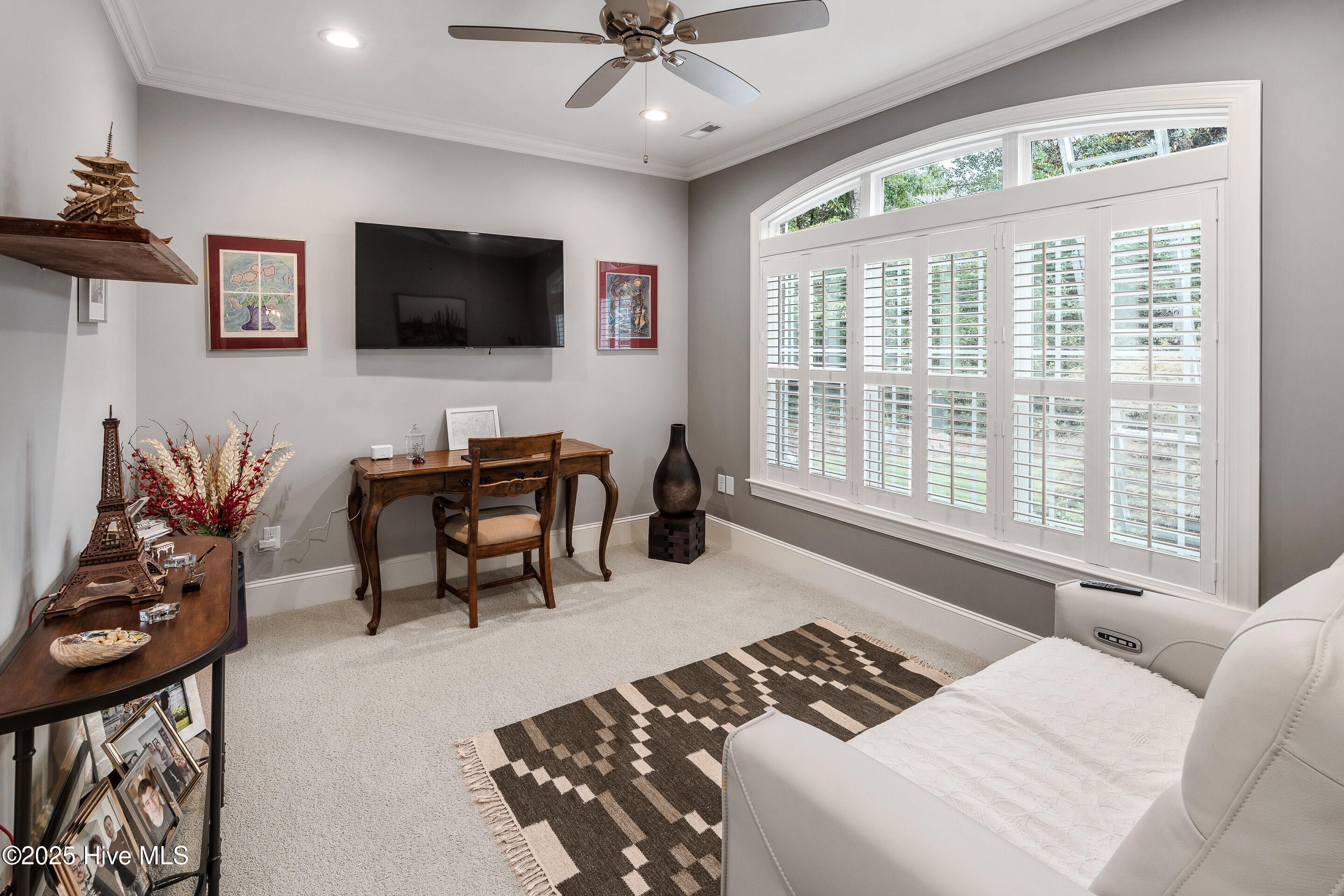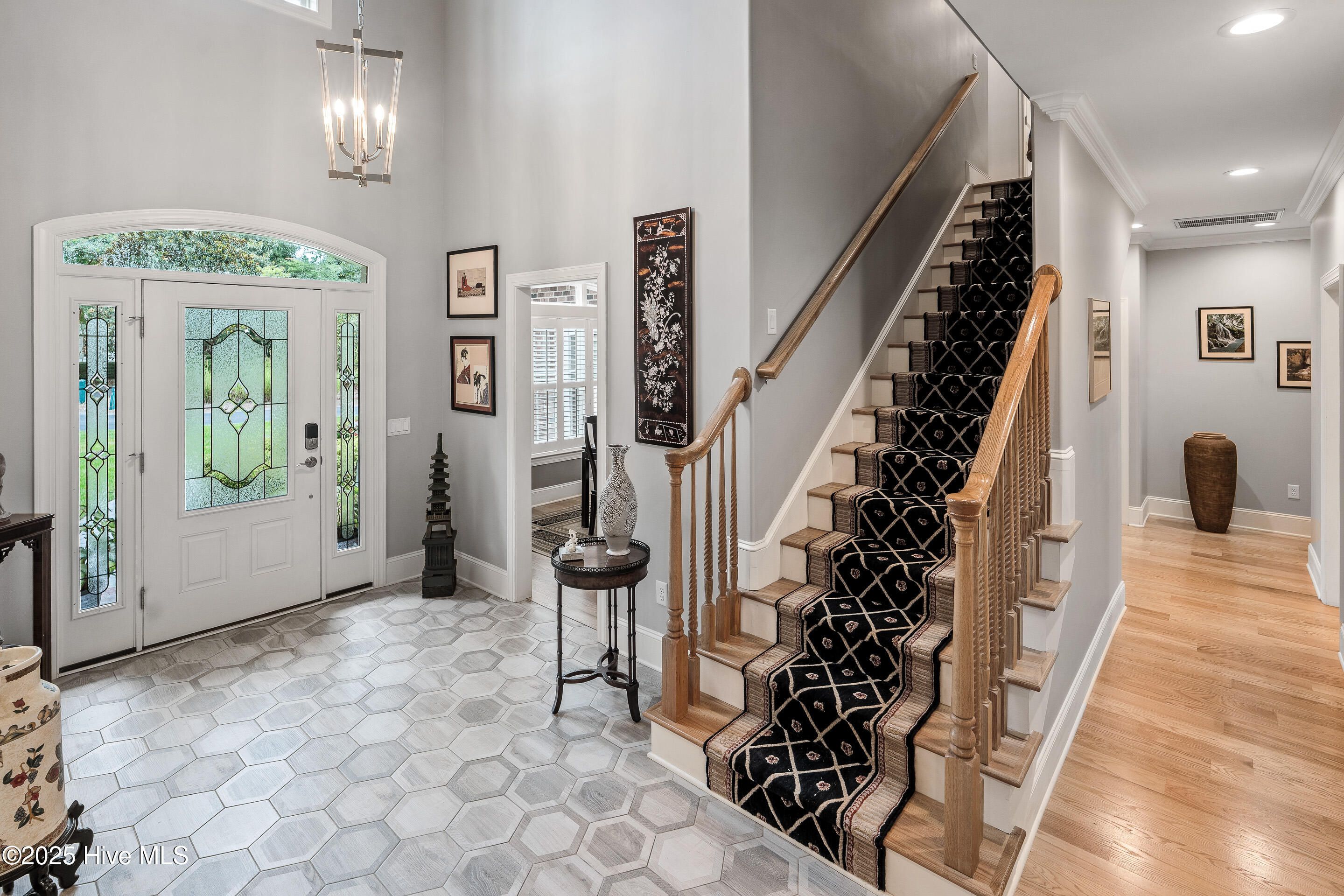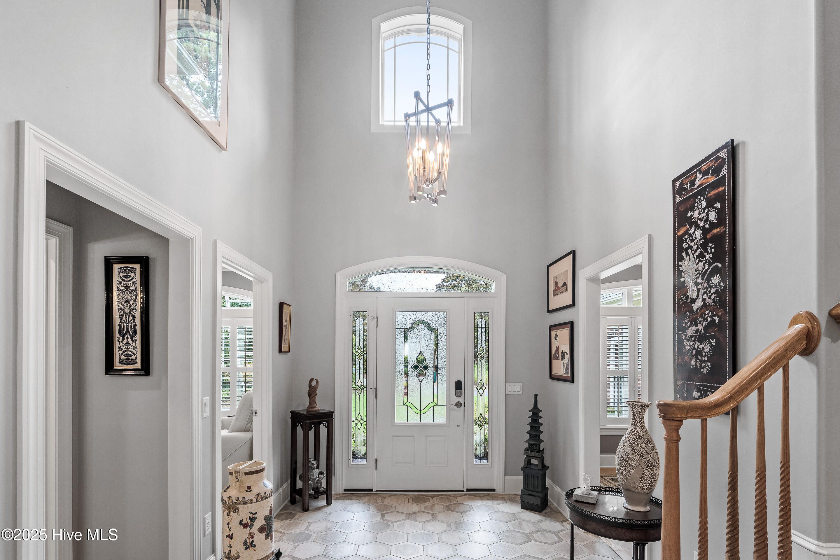 - Master Downstairs, Walk-In Closet(s), High Ceilings, Entrance Foyer, Kitchen Island, Ceiling Fan(s), Walk-In Shower, Blinds
