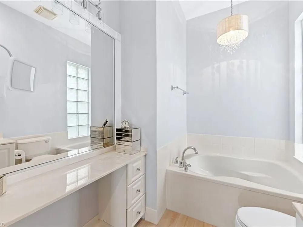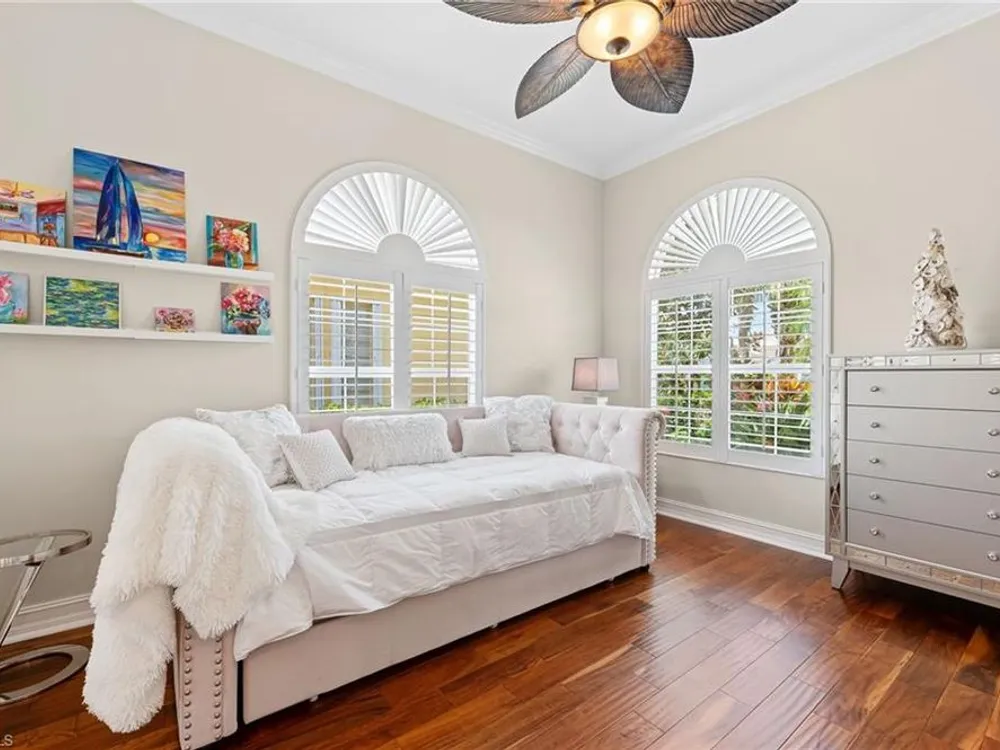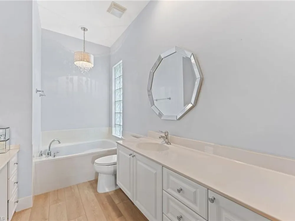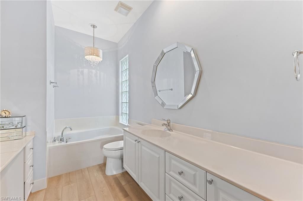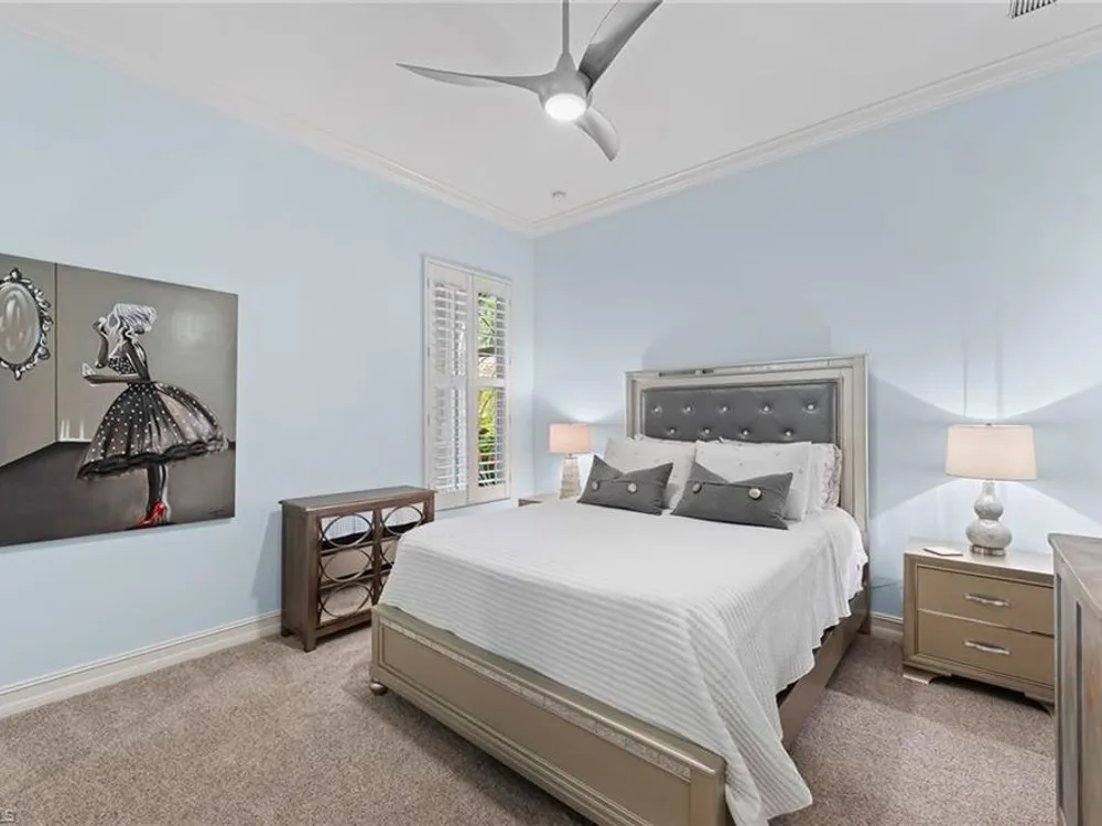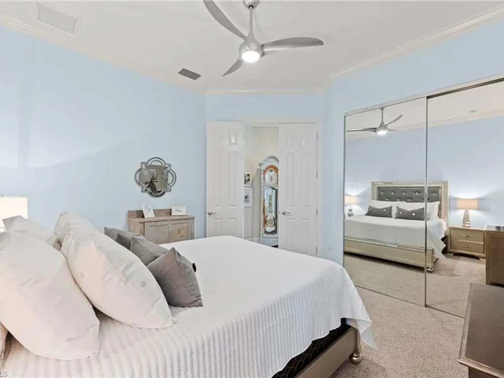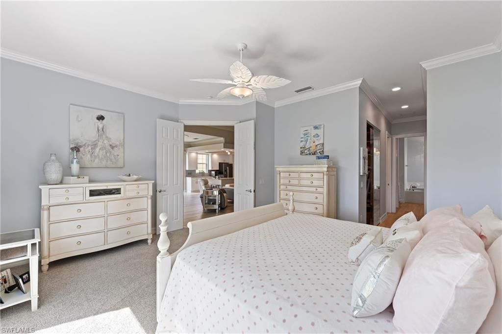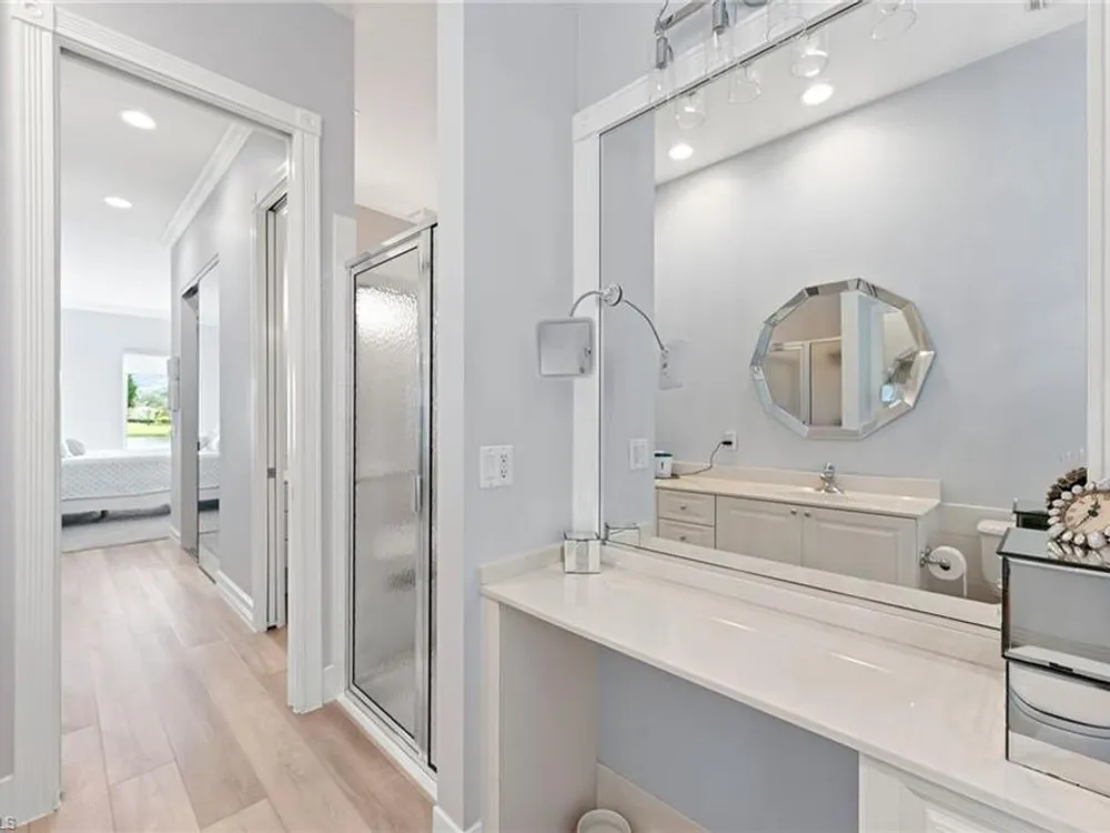 Welcome to the Oakmont model home in Verona Walk—a beautifully updated, move-in-ready residence you won’t want to miss. This home has been thoughtfully upgraded with features and finishes that add both style and function. Step inside to find gorgeous Plus Premium vinyl flooring that runs throughout the main living areas, complemented by new baseboards and newly installed crown molding & ceiling molding for a clean, modern touch. The kitchen was fully renovated in 2020 by Kitchen Solvers and features a sleek, modern backsplash that pairs perfectly with slate appliances (2017). The dishwasher was recently replaced in 2024, adding even more convenience. The den, accessible through new French doors, features rich Acadia wood flooring (2014) and is filled with natural light—making it an ideal space for a home office or guest room. The spacious master bedroom includes new carpet (2018) and a large en-suite bathroom. Both the bedroom and bathroom have been freshly painted. Throughout the home, you’ll find custom mirrors and upgraded lighting fixtures from Lighting First, enhancing both bathrooms and main living spaces.The two guest bedrooms are bright, spacious, and outfitted with the same premium vinyl flooring, offering comfort and style for family or visitors. The laundry room is clean and functional, complete with a utility sink.Additional updates include; water heater replaced in 2021, AC unit professionally serviced every six months andHurricane shutters installed in 2009 by AAA Hurricane Protection (electric shutters on the lanai, roll-down on all other openings). The community of Verona Walk is a vibrant and friendly community. You’ll enjoy access to a well-appointed Town Center featuring a café, ice cream shop, post office, gas station, salon, bank, and even a full-time activities director. Just minutes from downtown Naples, this home is close to white sand beaches, restaurants, and shopping. Don’t miss your chance to see this exceptional home—schedule a showing today!