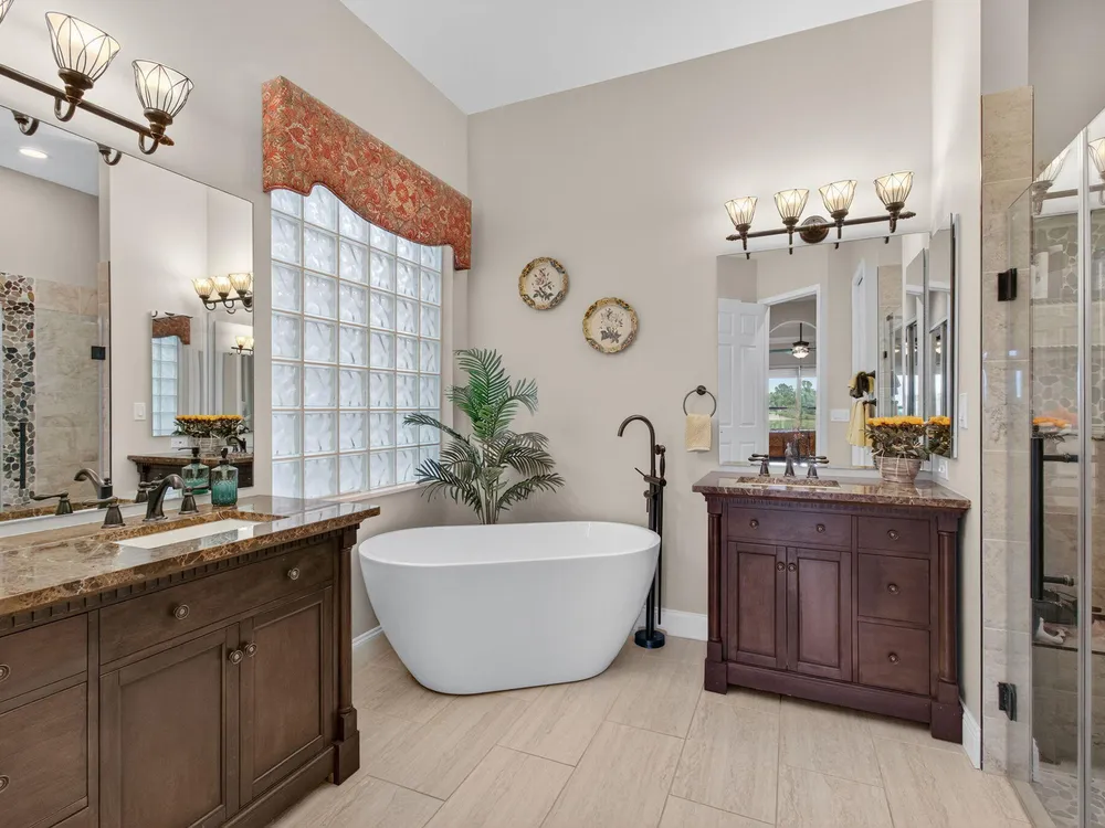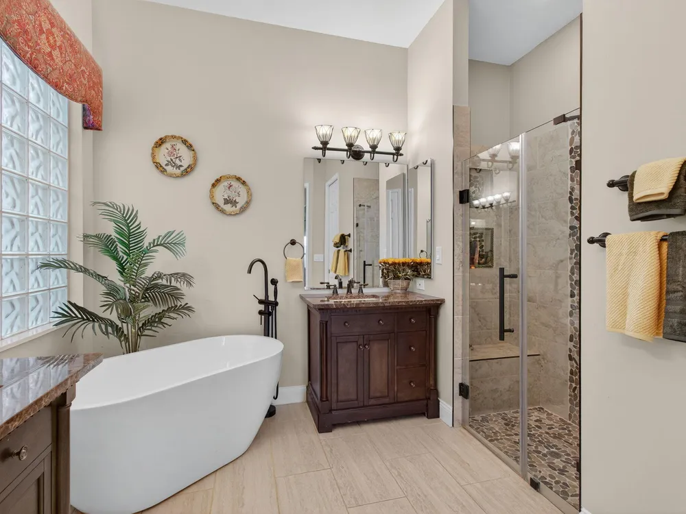 - Entrance Foyer, Garden Tub/Roman Tub, Split Bedrooms, Walk-In Closet(s), Great Room, Kitchen/Dining Combo, Separate/Formal Dining Room, Sliding Window(s), Primary Downstairs, Bathtub