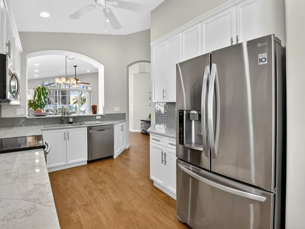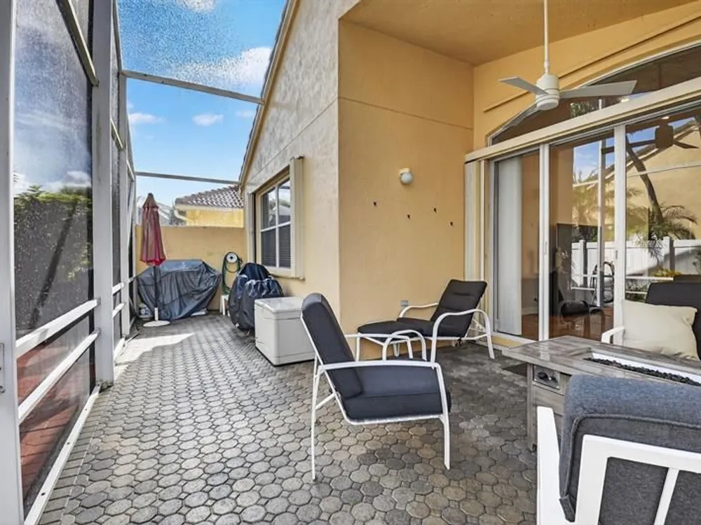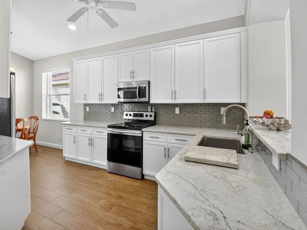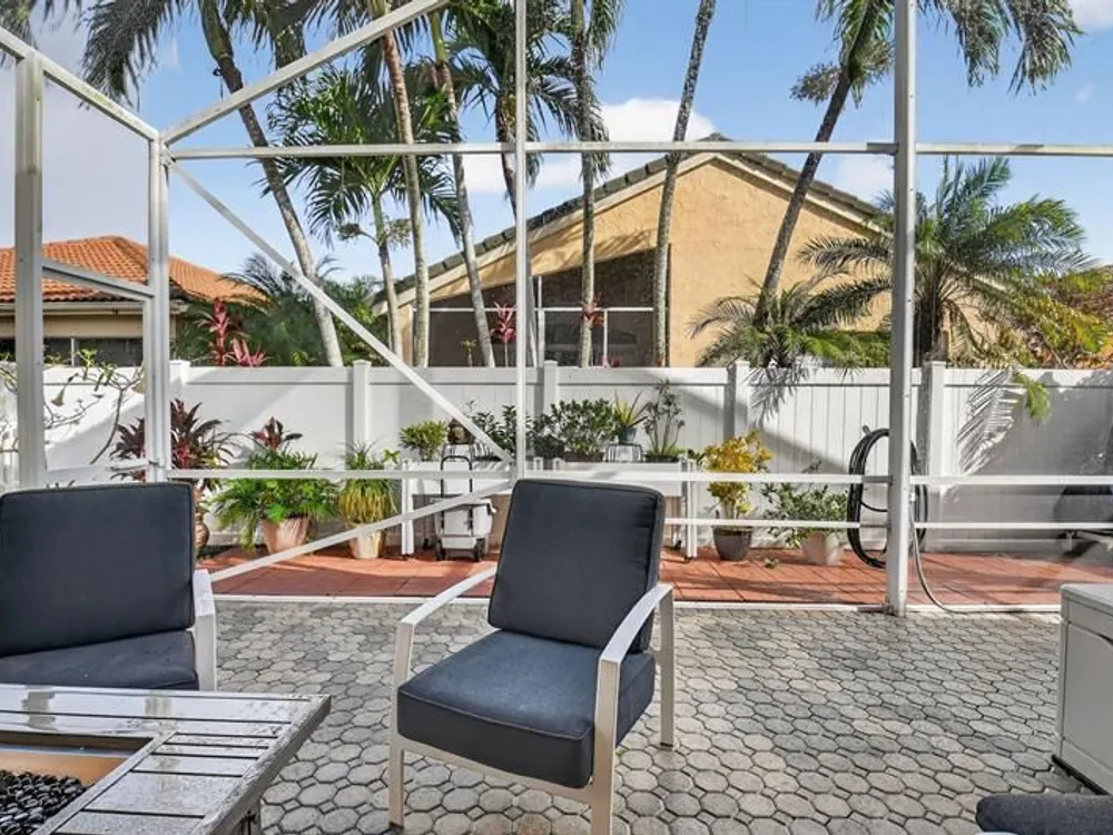 RARE UPDATED home in this price range!  Major UPDATES include kitchen cabinets, quartz counter tops , wood-grain ceramic flooring, new vanities, frameless shower, garage storage, AC 2025, water, heater 2021, 2 walk-in closets, storm shutters.  Vizcaya is pet friendly allowing 2 pets! Enjoy the expanded, screened/covered patio while entertaining.  Cable, internet, exterior painting (Oct 2025), roof maintenance, and landscaping are included in the low monthly HOA fees of $485. Roads paved in 2023.  At the clubhouse, you'll find pickleball, tennis, heated pool, bocce ball, card rooms, fitness center and more.  This is a 55+ gated community on Atlantic Ave close to places of worship, shopping, theater, nightlife, and easy access to the FL Turnpike and I95!