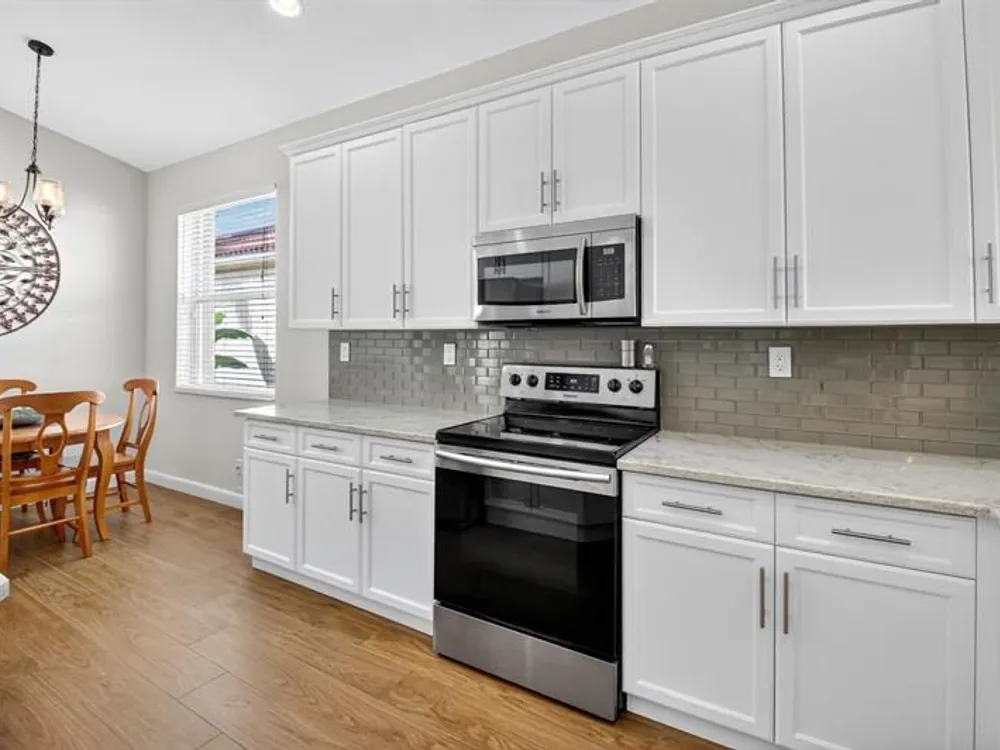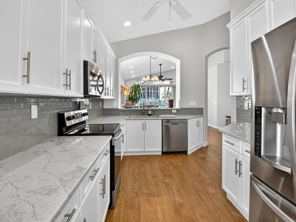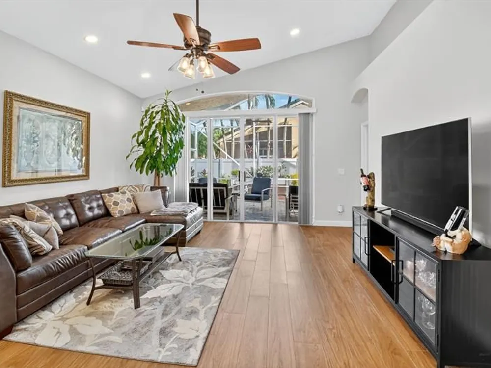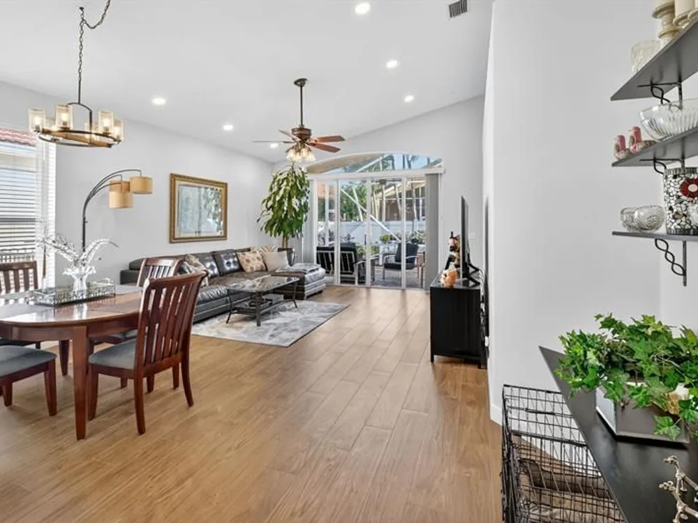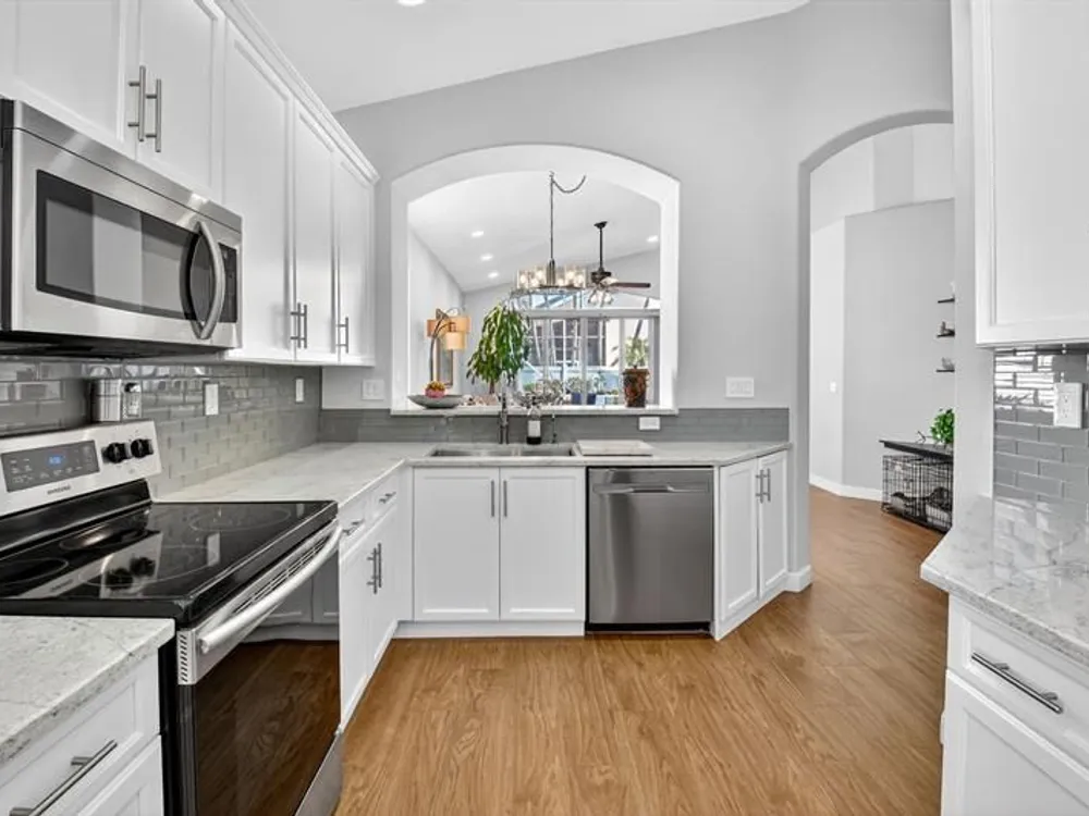 RARE UPDATED home in this price range!  Major UPDATES include kitchen cabinets, quartz counter tops , wood-grain ceramic flooring, new vanities, frameless shower, garage storage, AC 2025, water, heater 2021, 2 walk-in closets, storm shutters.  Vizcaya is pet friendly allowing 2 pets! Enjoy the expanded, screened/covered patio while entertaining.  Cable, internet, exterior painting (Oct 2025), roof maintenance, and landscaping are included in the low monthly HOA fees of $485. Roads paved in 2023.  At the clubhouse, you'll find pickleball, tennis, heated pool, bocce ball, card rooms, fitness center and more.  This is a 55+ gated community on Atlantic Ave close to places of worship, shopping, theater, nightlife, and easy access to the FL Turnpike and I95!