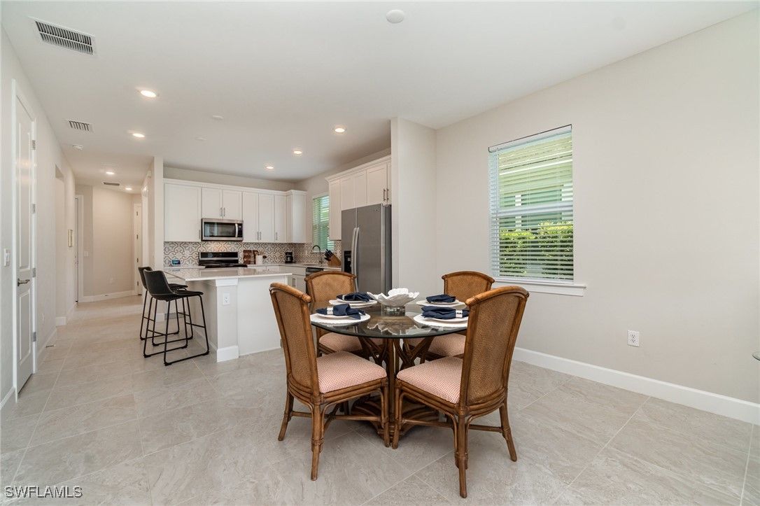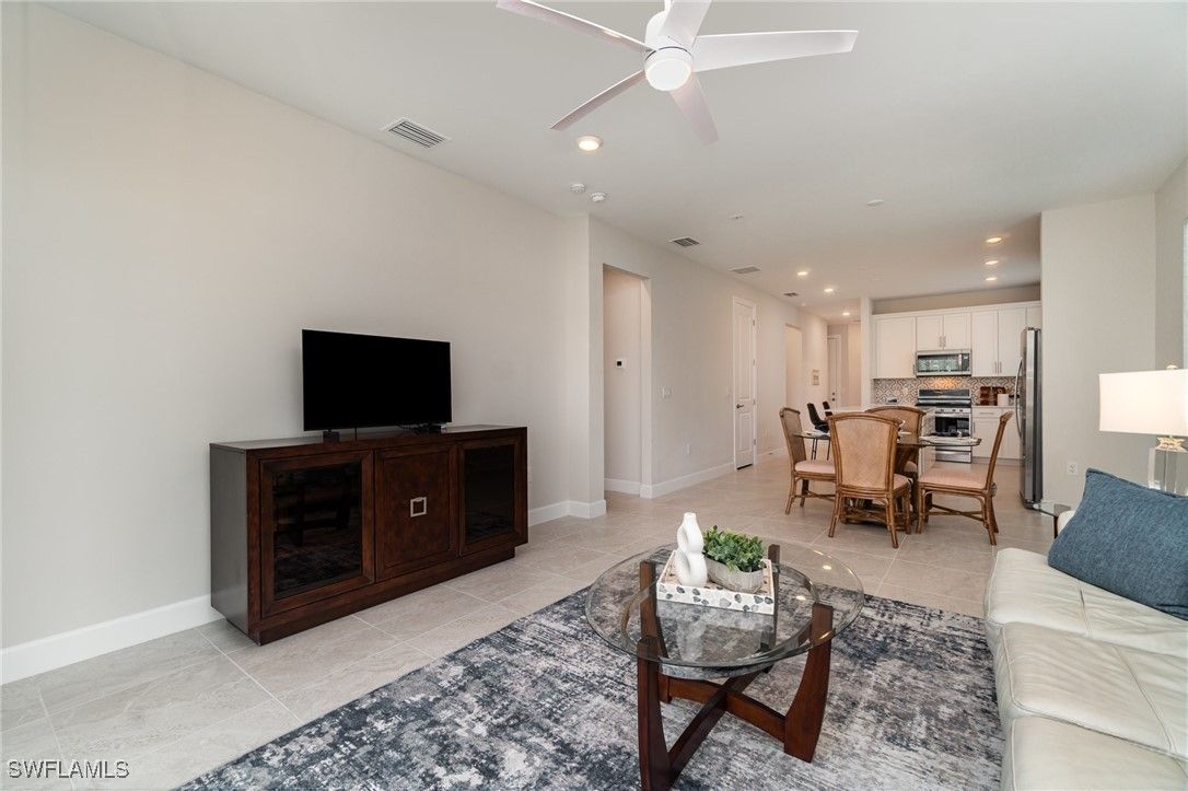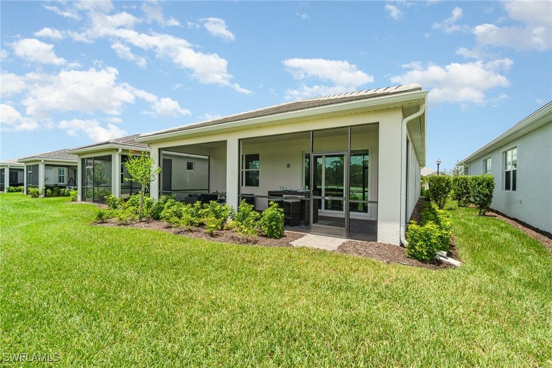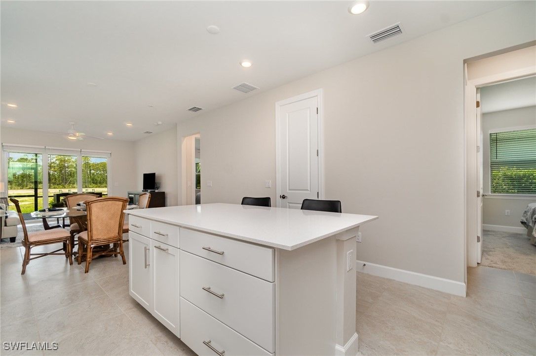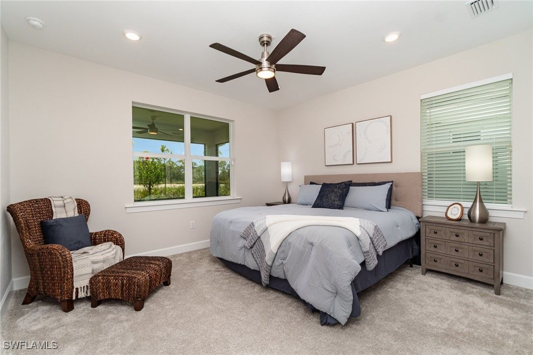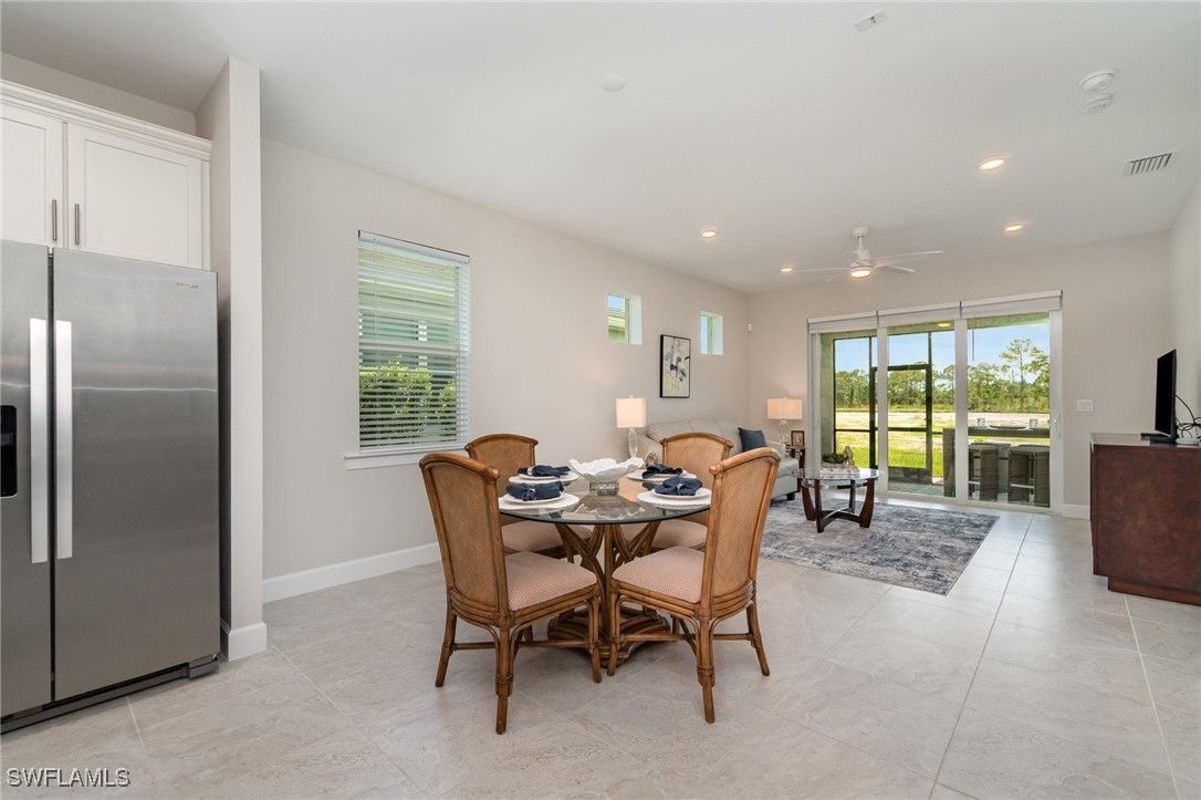 Motivated Seller! Step into effortless Florida living with this elegant 2-bedroom + den, 2-bath Contour model in Del Webb’s highly sought-after 55+ community of Oak Creek. This gem of a home is located near the amenities and entrance providing easy access and convenience and boast a 30' x 10' Screened in LANAI! This nearly new home features a spacious open floor plan and premium upgrades throughout. The kitchen is a chef’s dream with stainless steel appliances, 42" upgraded white wood cabinetry, granite countertops, and a custom tile backsplash. Impact-resistant windows add peace of mind. The spacious owner's suite offers a luxurious walk-in shower, a dual bowl vanity, and a large walk-in closet and a linen closet. Enjoy indoor-outdoor living with the gathering room’s sliding glass doors leading to an EXTENDED, screened-in LANAI —perfect for Florida evenings. Smart home features, upgraded ceiling fans, and built-in laundry room cabinets complete this thoughtfully designed home. FURNISHINGS ARE NEGOTIABLE OUTSIDE OF CONTRACT. Oak Creek is a natural gas, gated community offering world-class amenities: a 17,000 square foot clubhouse, a cafe-style lounge, a resort-style pool with lap lanes, a heated spa, restaurant and covered tiki bar, state-of-the-art fitness center, 8 pickleball courts & three bocce courts. Explore nearby Gulf Coast beaches, the Fort Myers River District, and top-tier shopping just minutes away. Dining options include the Oak House Bar & Grill, offering both indoor seating and poolside service beneath a covered tiki bar. Indoor hobby spaces, card rooms, and multi-use areas round out the lifestyle experience—all nestled against a scenic 38-acre lake and island preserve. Why wait to build when you can have better than new—today?