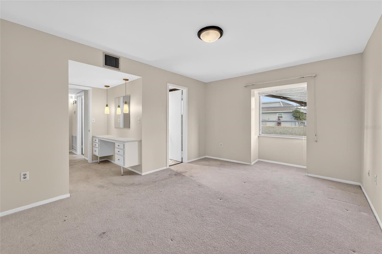 - Ceiling Fan(s), Eat-in Kitchen, Main Level Primary, Solid-Wood Cabinets, Thermostat, Walk-In Closet(s), Window Treatments