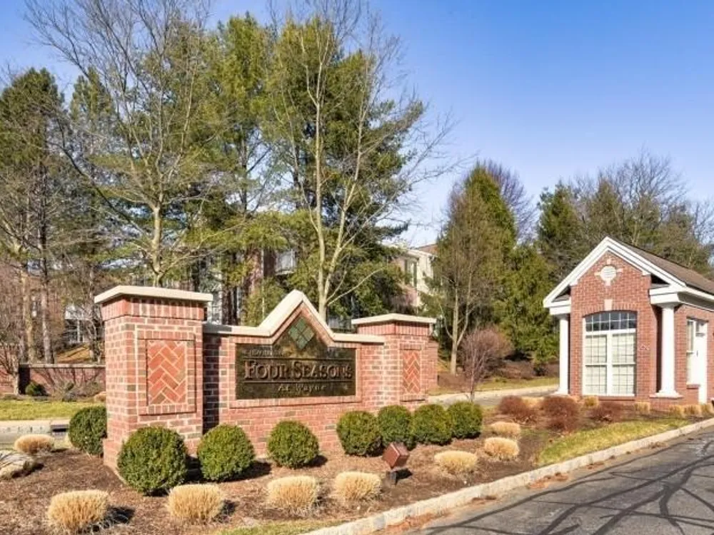 Welcome to Four Seasons at Wayne, a 55+ active adult community. This Building 7 Cherry model is perhaps the best-located in the entire complex, offering privacy, wooded surroundings with stream views, and the added convenience of a few-step walk to the clubhouse. The unit is in pristine condition, with numerous updates, and is ready for move-in. This model was equipped with every available upgrade, including recessed lighting, an entertainment console with a gas fireplace, a bonus room, and an upgraded floor plan for the primary bathroom—laminate wood surfaces throughout the unit. The eat-in kitchen features abundant cabinets, ample counter space, stainless steel appliances, and a slider to a private patio. Large primary bedroom suite with a stall-seated shower, double sinks, a soaking tub, and two closets, including a walk-in. A second bedroom with a large closet and access to the hallway's main bathroom. Two new Kohler toilets. Additional features include a utility room with a washer/dryer/ sink, indoor garage parking with elevator access, two large storage rooms, and shared hallway storage. The resort-style clubhouse features a pool, pickleball, billiards, ping-pong, a fitness center, a library, resident card games, a kitchen, and bocce. It is conveniently located near numerous shopping centers and restaurants, major highways, and NJ Transit. This is community living at its very finest. All kitchen appliances, washer/dryer, and electric BBQ grill are included in the sale