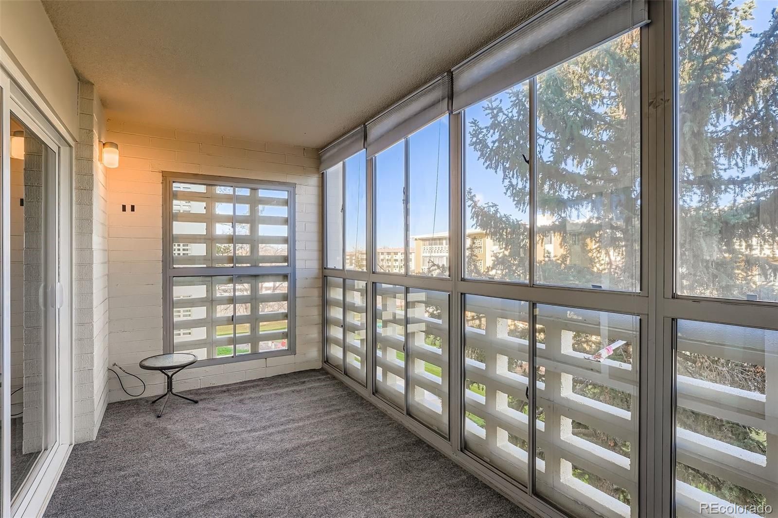 Welcome to this 2 bed/2 bath plus den condo in Windsor Gardens, an active and vibrant 55+ community. Just steps from the Highline Canal trail, this unit has just undergone a refresh that includes all new flooring, both luxury plank vinyl and carpeting, new kitchen appliances, new bathroom vanities, and paint. Enjoy the sun drenched enclosed Lanai off of the Den and main living area. There is also plenty of storage which includes a storage space in the unit, a storage closet on the same floor, and a storage locker in the garage. This unit is a clean slate ready for you to come in and make it your own. HOA fees include 24 Hour first responder trained security, beautiful clubhouse and pool with restaurant, heat, water, trash and yearly property tax payment. To learn more about all of the amenities that Windsor Gardens offers its residents, visit https://windsorgardensdenver.org/page/15778~293381/For-Buyers