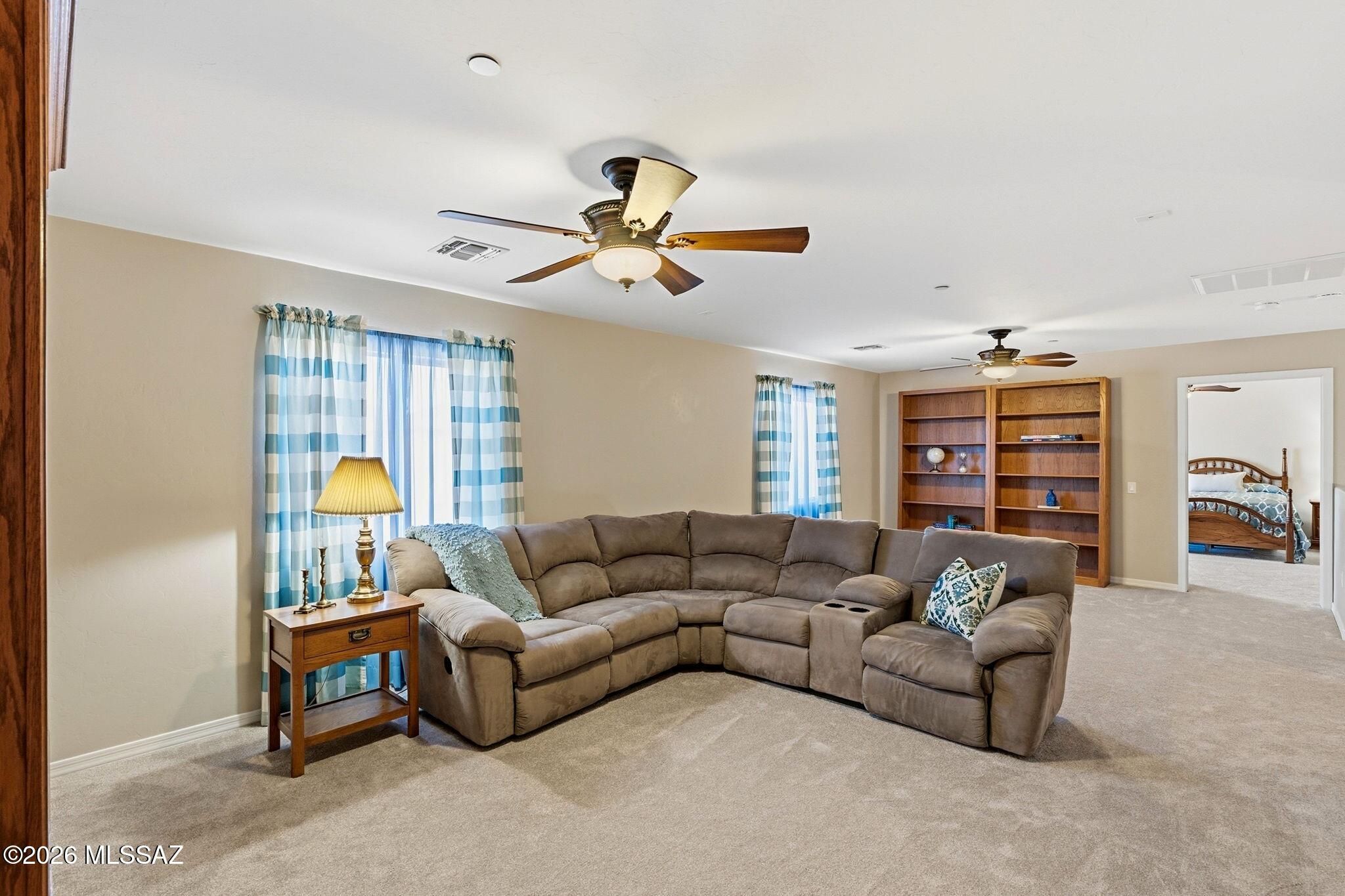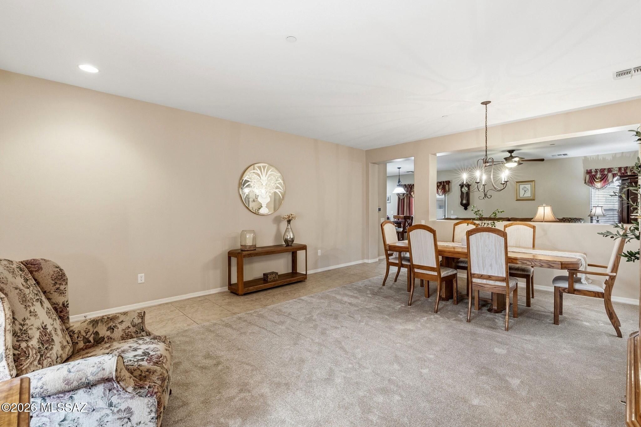 OPEN HOUSE 4/4/26 11am-2pm. Beautiful 3,070 sq ft, 4-bedroom, 3-bath, 3-car garage, 2-story home ideally situated on a spacious lot in the award-winning, master-planned community of Rancho Sahuarita. Designed for family living, flexibility, and entertaining, this home features brand new carpet, generous living spaces, and thoughtful upgrades throughout. The main level offers formal living and dining rooms, plus an open-concept family room that flows into a well-appointed kitchen. The kitchen features a center island, granite counters, SS appliances and breakfast nook. A main-floor bedroom with full bath provides the ideal setup for guests, extended family, or home office. Upstairs, an expansive loft delivers versatile space for a media room, playroom, or work-from-home lifestyle