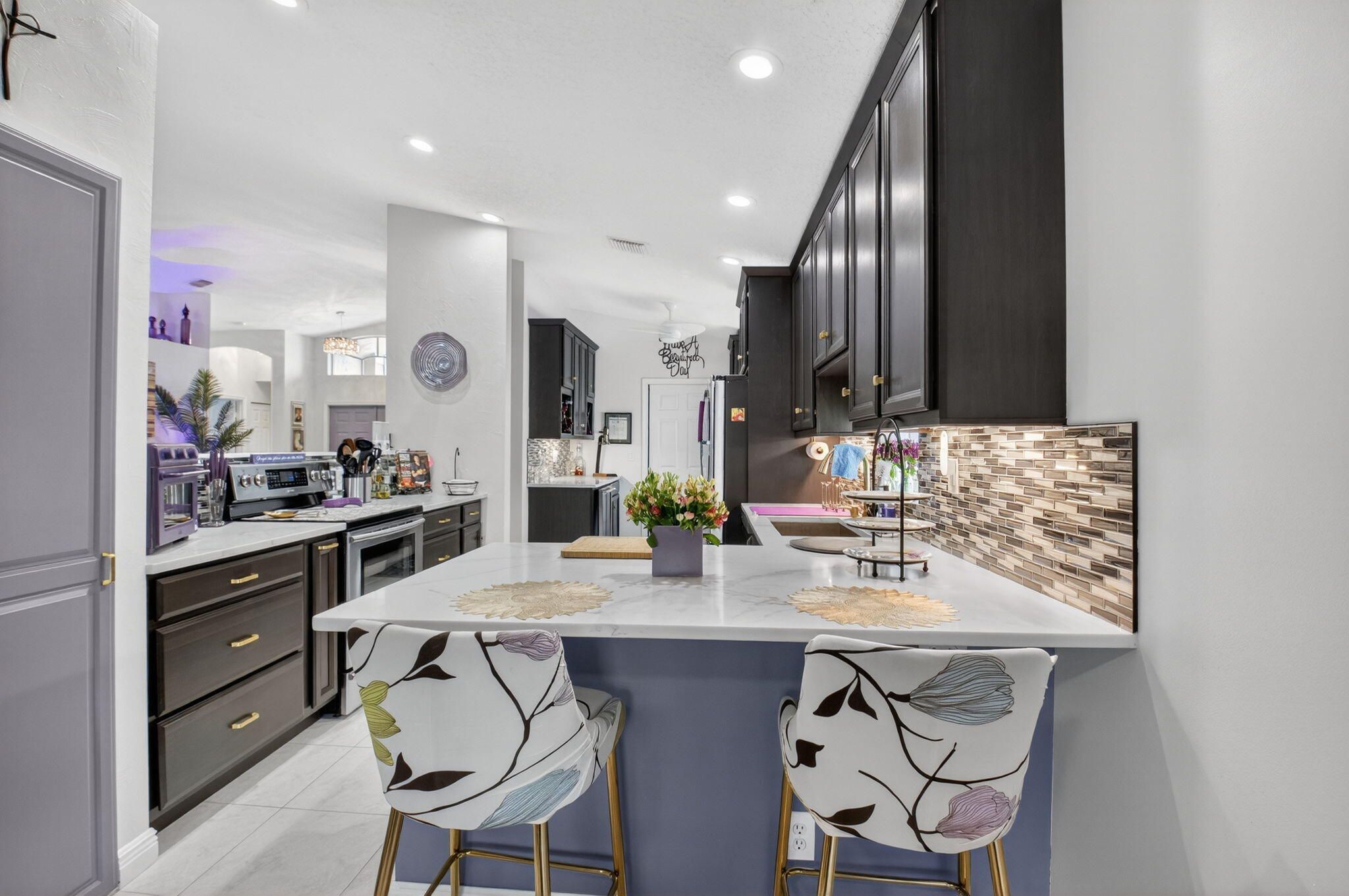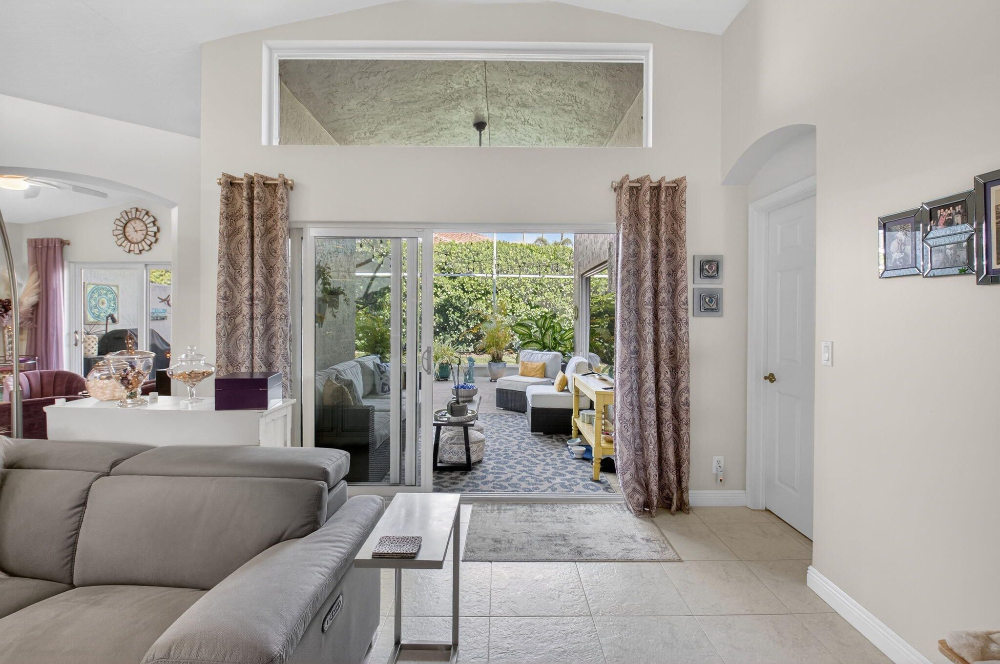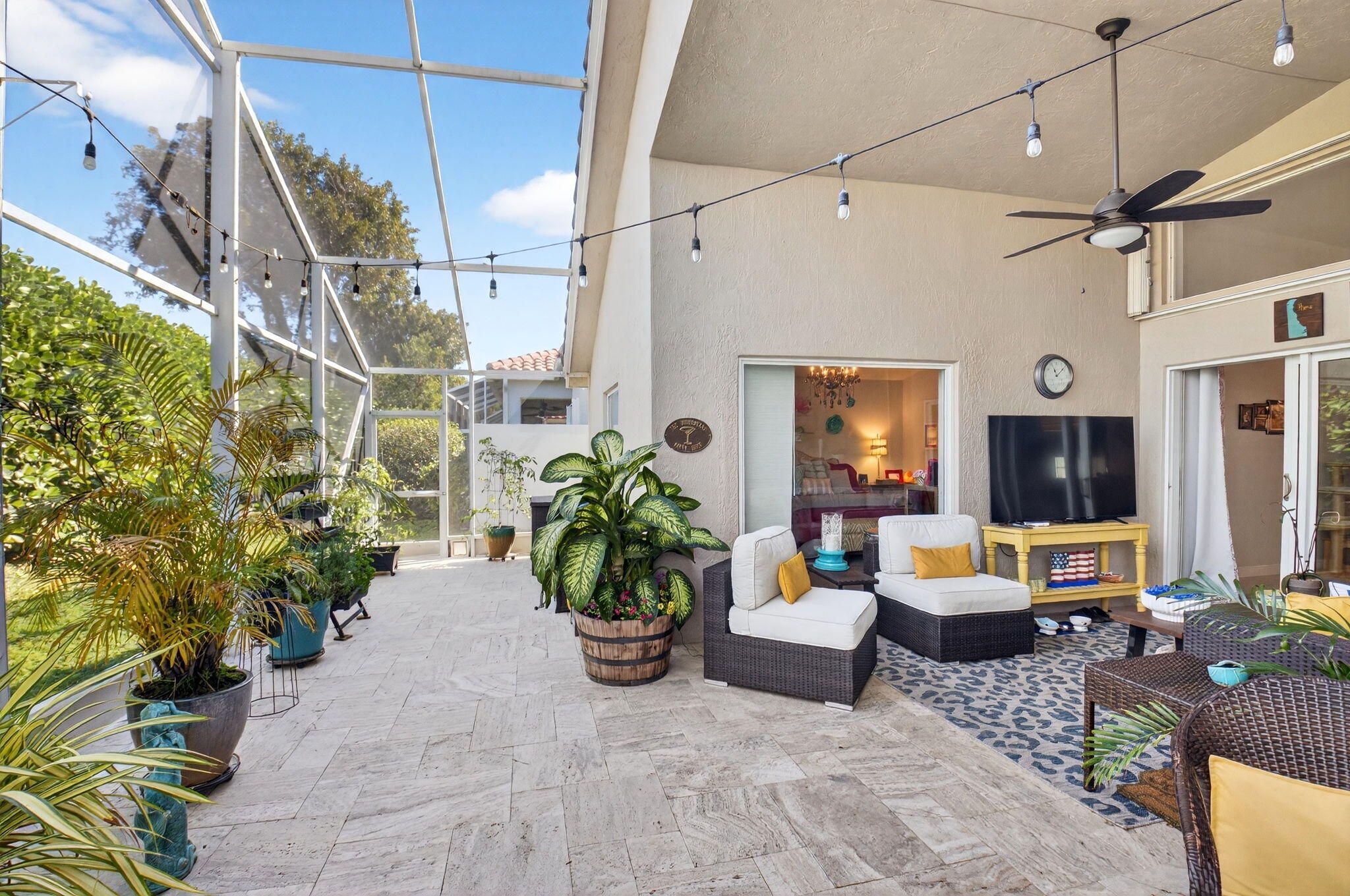 Welcome to this beautiful, bright 3-bedroom, 2-bathroom home located in the highly desirable Ponte Vecchio community. This well-maintained home features numerous upgrades throughout, offering both style and functionality. The kitchen showcases stunning wood cabinetry, along with quartz countertops, a breakfast bar, stainless steel appliances, including a refrigerator and stove just a few months old. Entertain with ease thanks to the added coffee bar and dry bar complete with a built-in wine refrigerator. Bathrooms are tasteful updated with wood cabinets, quartz counters, ceramic finishes. The spacious screened patio with elegant travertine tile is perfect for relaxing or entertaining and even includes a hot tub. The flexible family area can be used as a casual dining space or comfortable sitting area. The home has also been recently painted and has impact windows, providing peace of mind and energy efficiency. AC 2022, WH 2020 Residents of Pontecchio enjoy a country club-style lifestyle with a newly remodeled clubhouse with a theater, card rooms, billiards and a resort style pool area and an exciting sports complex currently underway, featuring pickleball courts, tennis, bocce ball and a putting green. This active community offers numerous clubs and social opportunities. The HOA covers cable, exterior painting and complete landscaping, including trees and shrubbery, providing low-maintenance living. Conveniently located just 15 minutes to beaches, and blocks from Publix, Whole Foods, Sprouts, Walmart, Target, and a wide variety of restaurants, with easy access to both the Florida Turnpike and I-95, this home offers the perfect blend of comfort, convenience, and community living. FURNITURE NEGOTIABLE