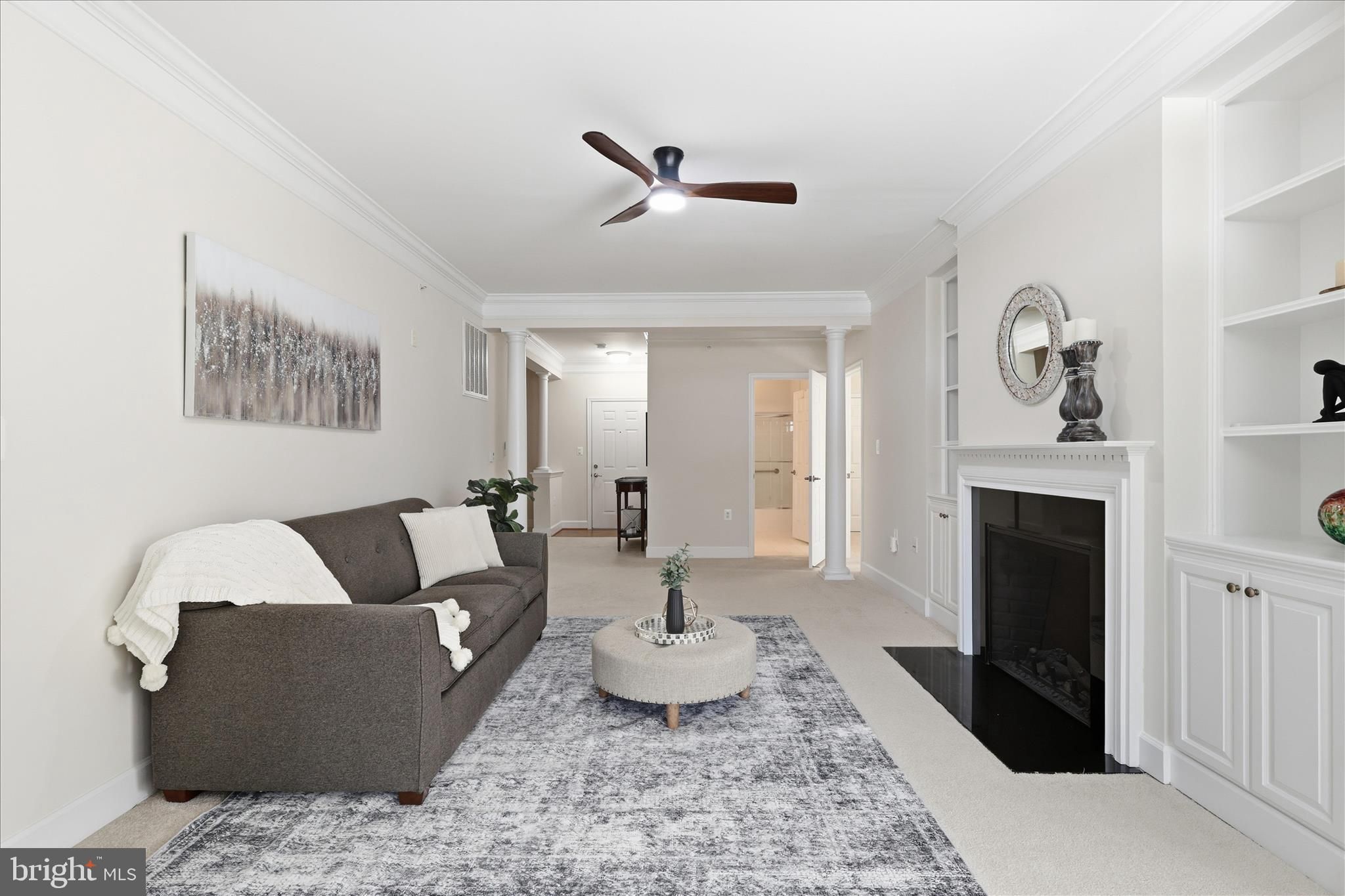 Welcome to the gated Heritage Hunt Golf & Country Club, a premier 55+ active adult community offering exceptional, maintenance-free living. This rarely available third-floor Eastport end-unit is filled with natural light and shows true pride of ownership throughout. The home features 2 bedrooms, 2 full baths, and a versatile den, perfect for a home office or library. The open-concept layout includes a foyer entry and a spacious living room with custom built-ins and an electric fireplace. Elegant upgrades include plantation shutters, crown and chair rail molding, four ceiling fans, and neutral décor—truly move-in ready. The gourmet eat-in kitchen offers maple cabinetry, Corian countertops, stainless steel appliances, and a separate pantry. Enjoy morning coffee or evening sunsets from the private patio/balcony with scenic landscaped and distant mountain views. Both bedrooms function as private suites with ensuite baths, including a primary suite with a walk-in closet. Additional features include in-unit laundry, a whole-condo surge protector, assigned covered garage parking, and a separate climate-controlled storage unit. Elevator access enhances the ease of this garden-style condominium. Heritage Hunt’s 750-acre resort-style community offers an Arthur Hills–designed 18-hole golf course, two clubhouses, indoor and outdoor pools, fitness center, restaurant, tennis, bocce, pickle ball courts, and the restored Marsh Mansion. Conveniently located near I-66 and Route 29, with easy access to shopping, dining, wineries, and entertainment. Monthly assessments include: cable, internet, WiFi, phone, water, trash, snow removal, landscaping, pest control, common-area maintenance, reserve funding, climate-controlled storage, and full use of community amenities.