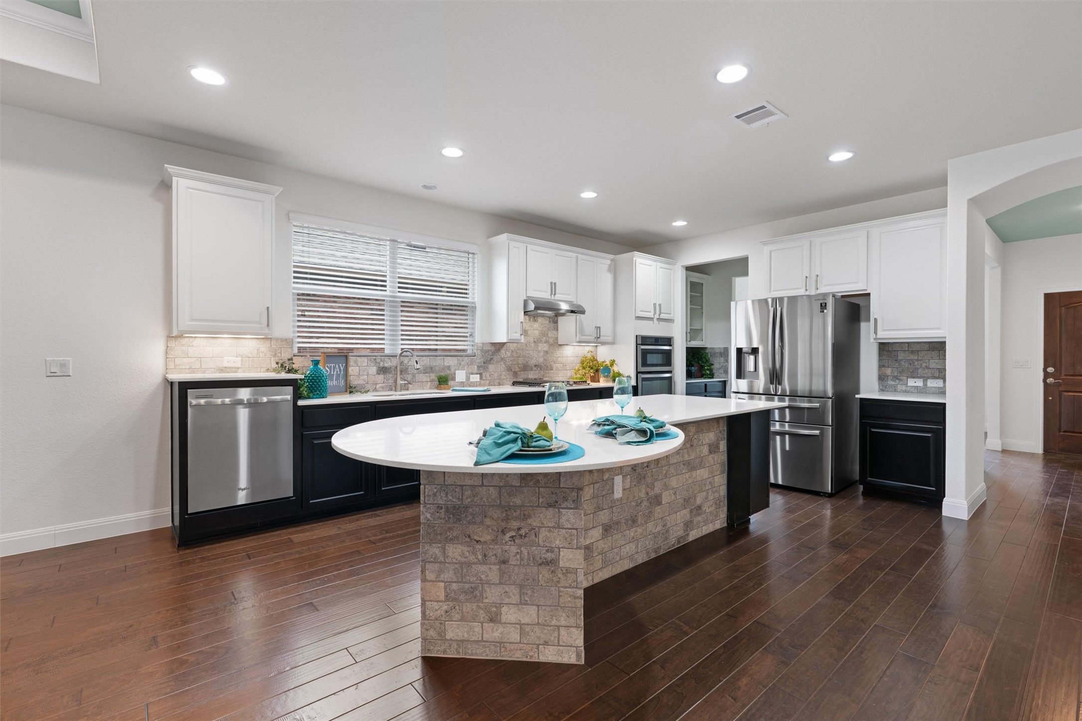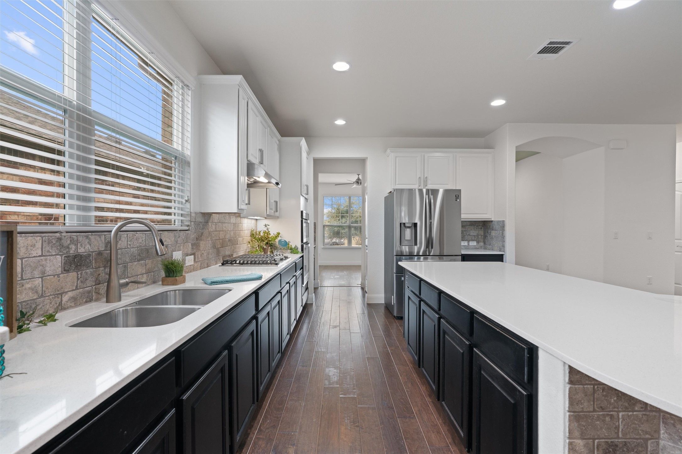 - Built-In Oven, Dryer, Dishwasher, Gas Cooktop, Disposal, Gas Water Heater, Microwave, Plumbed For Ice Maker, Refrigerator, Range Hood, Self Cleaning Oven, Stainless Steel Appliance(s), Vented Exhaust Fan, Washer