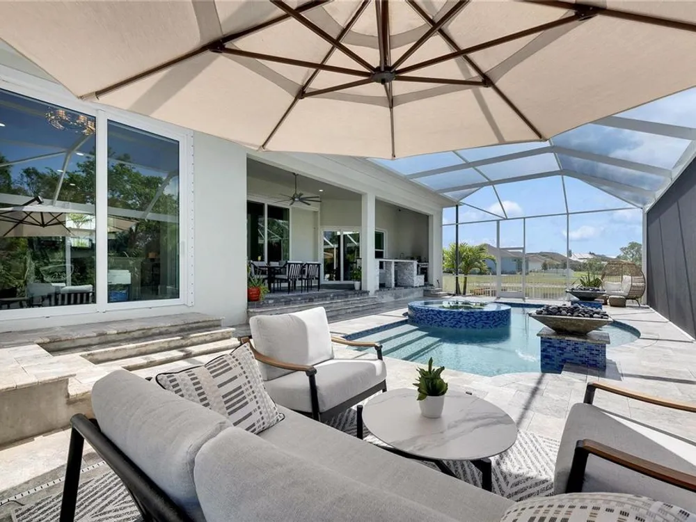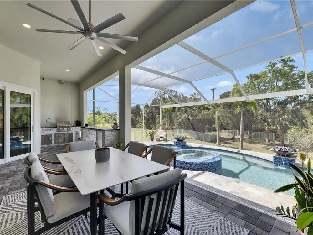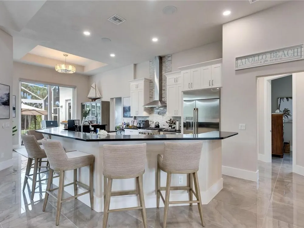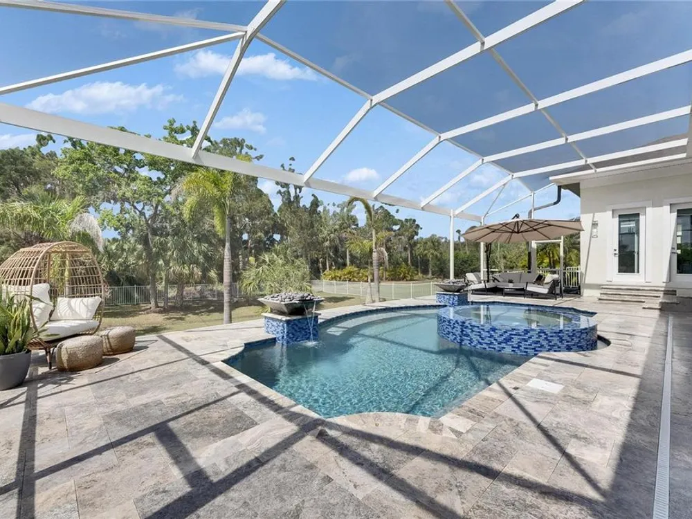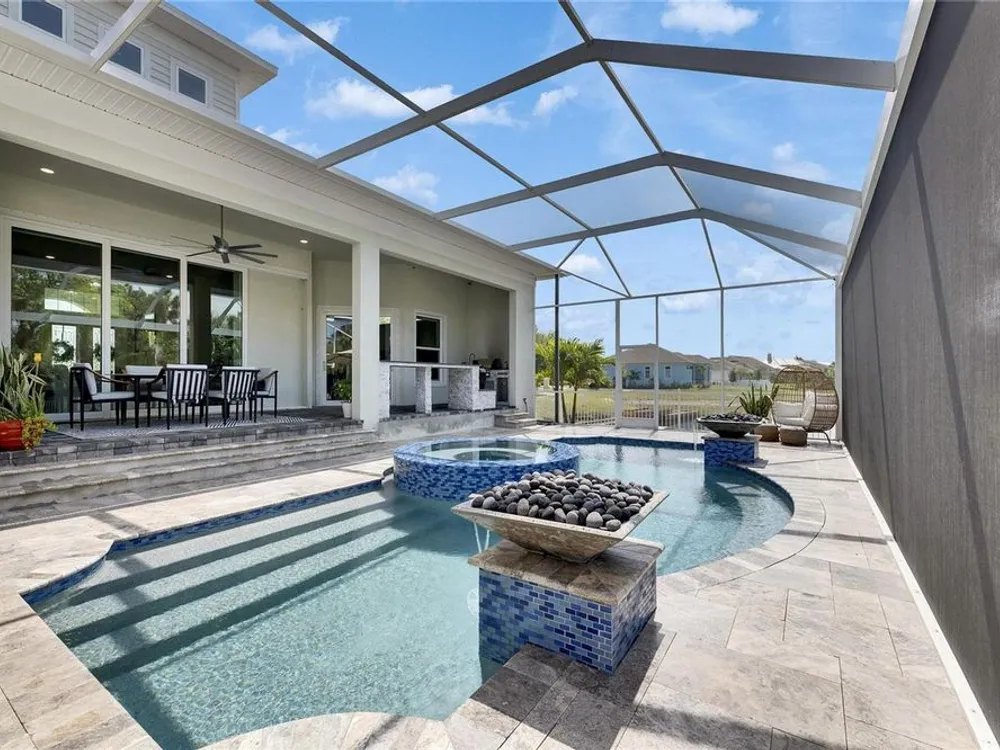 Short Sale. 706 Manns Harbor Blvd | Apollo Beach 4 Beds | 3 Baths | Over 2,500 Sq Ft | Custom Pool & Preserve Views Located in the gated waterfront community of Mirabay, this custom-built 4-bedroom, 3-bath home features over 2,500 square feet of living space and more than $200,000 in updates within the last year. The seller is also open to rental inquiries. The home sits on a well-landscaped lot with mature palms, upgraded exterior lighting, custom concrete curbing, and a fully fenced backyard. The yard was professionally regraded and improved with irrigation, new sod, French drains, and a sump pump system for long-term drainage control. Out back, the saltwater pool and spa are set in travertine decking and designed for both function and style—with gas heat, fire and water bowls, an in-floor cleaning system, and a panoramic screened enclosure. A built-in outdoor kitchen and full gutter system complete the exterior upgrades. Inside, you’ll find polished porcelain tile throughout, 24-foot ceilings in the great room, 8-foot interior doors, and detailed coffered ceilings in the dining room, home office, and primary suite. The kitchen is a standout with floor-to-ceiling cabinetry, quartz countertops, a large island that seats eight, high-end appliances, and a newly installed pot filler. The open layout offers clear views of the preserve and pond from the living room, primary suite, and a guest bedroom with ensuite bath and private lanai access. The primary bedroom features motorized shades and pond views. The bathroom includes a large walk-through shower with multiple heads, a soaking tub, and dual vanities. Additional upgrades include a full home security system, high-quality window treatments, motorized shades in the great room and primary suite, and a whole-home Google sound system. About the Community: Mirabay offers year-round resort-style living with heated pools, a 24-hour gym, tennis, pickleball, basketball courts, multiple parks, a clubhouse café, and the Outfitter’s Lounge with free access to kayaks, canoes, and paddleboards. It’s also a golf cart-friendly neighborhood with access to the Mirabay shops just down the street. With quick access to I-75 and the Skyway, this home combines updated living with the Mirabay lifestyle. One of the best-priced and most thoughtfully updated homes in the neighborhood.