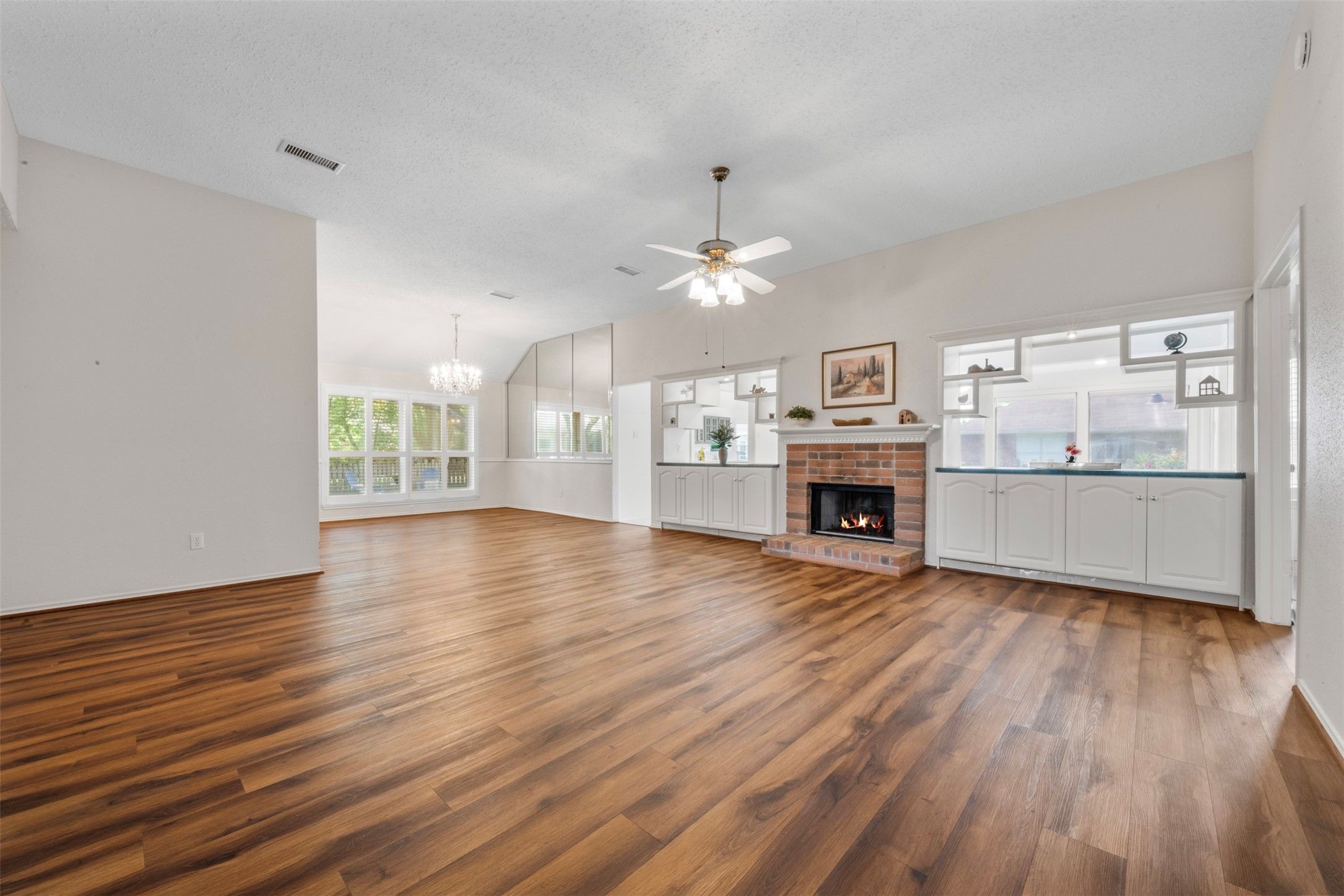 - Breakfast Bar, Double Vanity, Kitchen Island, Kitchen/Family Room Combo, Bath in Primary Bedroom, Tub Shower, Window Treatments, Ceiling Fan(s)