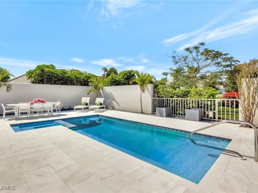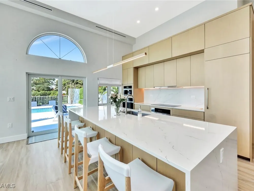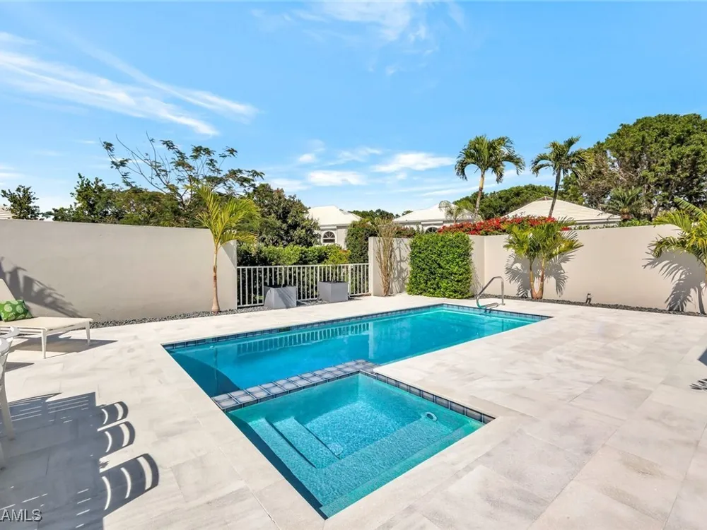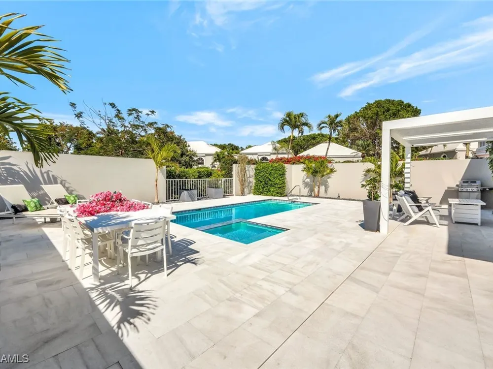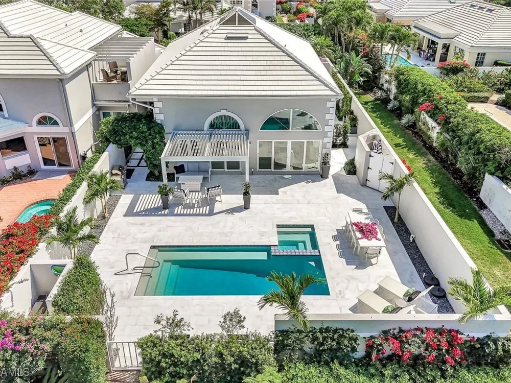Welcome to this magnificent home nestled in Villa Lantana, where luxury meets coastal charm. This thoughtfully redesigned and renovated 4 bedroom, 3.5 bath residence offers 2,524 square feet of sophisticated, modern living space. The private pool and large sun-filled deck are perfect for comfortable family living or elegant entertaining. The large, open first floor lets in plenty of sunlight for the kitchen with grand island, dining area and oversized great room. The villa's new layout seamlessly blends indoor and outdoor living, with generous room proportions and high-quality finishes throughout. The first floor primary bedroom suite boasts a luxurious ensuite bath and ample closet space. Also, on the first floor, an additional bedroom with ensuite bath. The second floor has two additional bedrooms and another bath that provide comfortable accommodations and privacy for family members or guests. The stunning kitchen features a grand island with Cambria Quartz countertops, Miele appliances, Sub Zero freezer drawers, Avallon beverage refrigerator, LG washer and dryer. The entire home has been replumbed and includes a whole house water filtration system. All new electrical and an air filtration system with 2 condenser units. The pool area has a 1900 foot deck with Pergola and new LED landscaping lighting. The pool has been completely resurfaced with new tile and pool heater. The villa also has a new roof and roof structure. This propert is NOT in a flood zone. It is an X zone property (FEMA). Well located, Villa Lantana is a short bike ride to Pelican Bay amenities including tennis, a fitness center, and beaches with 2 gourmet restaurants. Nearby are the premier venues of Waterside Shops and Artis-Naples. This bespoke villa combines the privacy of a villa with the amenities of resort-style living. Whether you're enjoying a quiet evening at home or entertaining guests on the patio, this property offers the quintessential Naples lifestyle that discerning buyers seek. Enjoy!