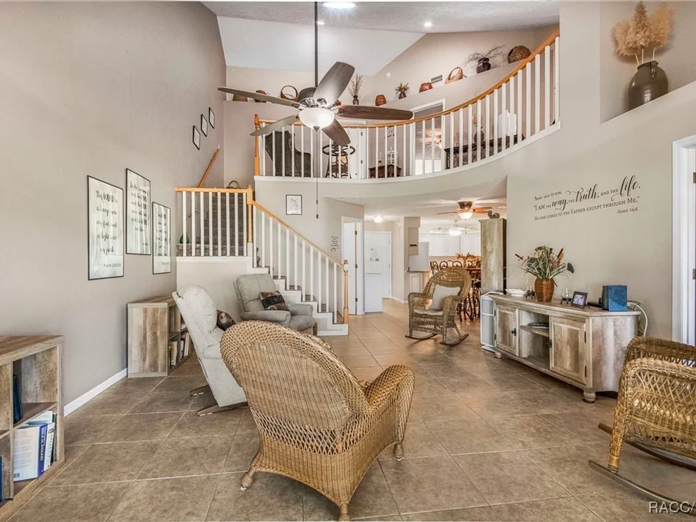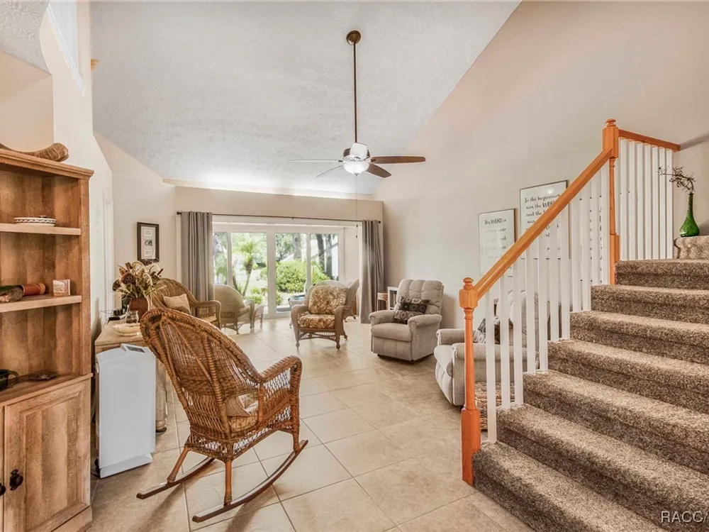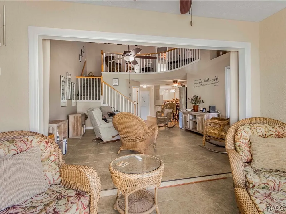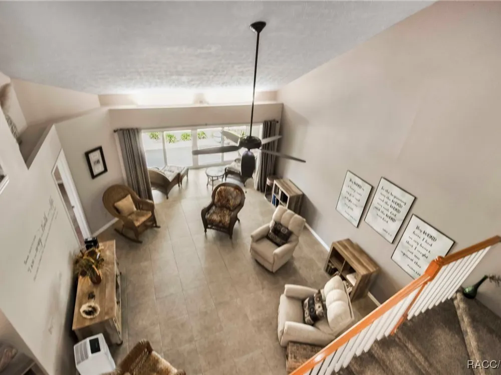 This move-in ready, beautifully updated townhouse sits on a cul-de-sac and has so many new features: Tile roof (2024) A/C (2023), kitchen, baths redone. Hurricane-proof sliders on rear allow the lanai to be part of the living area (interior sliders removed). The master is on the first floor, a kitchen door accesses the garage, there's an office/den/hobby room and a half bath. The open stairway beckons you to the second floor for 2 bedrooms, a bath and a walk-in attic. The garage has a rolldown screen door, the driveway has room for 2 cars. This townhouse has a stunning rear patio and lots of open space from which to enjoy wonderful sunsets. The active clubhouse has a much used library, a full kitchen for dinners, parties and a heated pool. Free cable, internet, wi-fi and RV/boat parking. Access to Little Lake Henderson and the Inverness Lake Chain is across the road, from a dock, alongside a community gazebo. Being within city limits, there's central water, sewer, trash pickup. Windermere sits on our 46-mile Rails-to-Trails for hiking, biking, close to downtown, quaint and historic Inverness for events, restaurants, shopping.