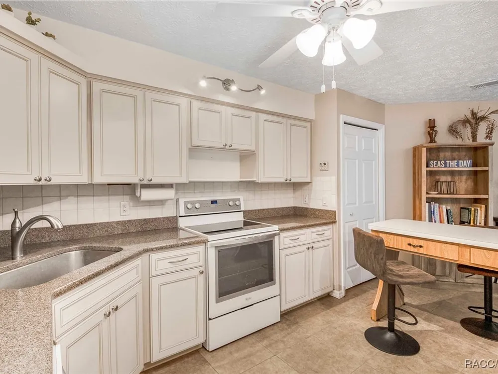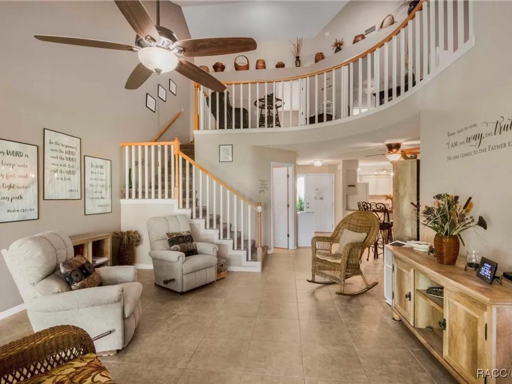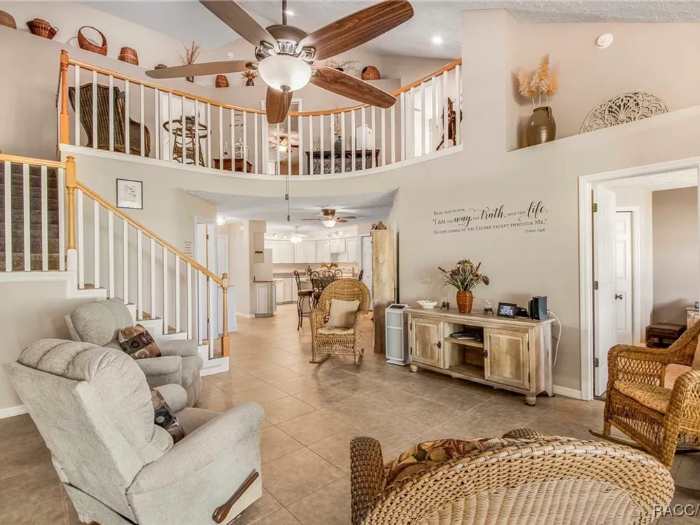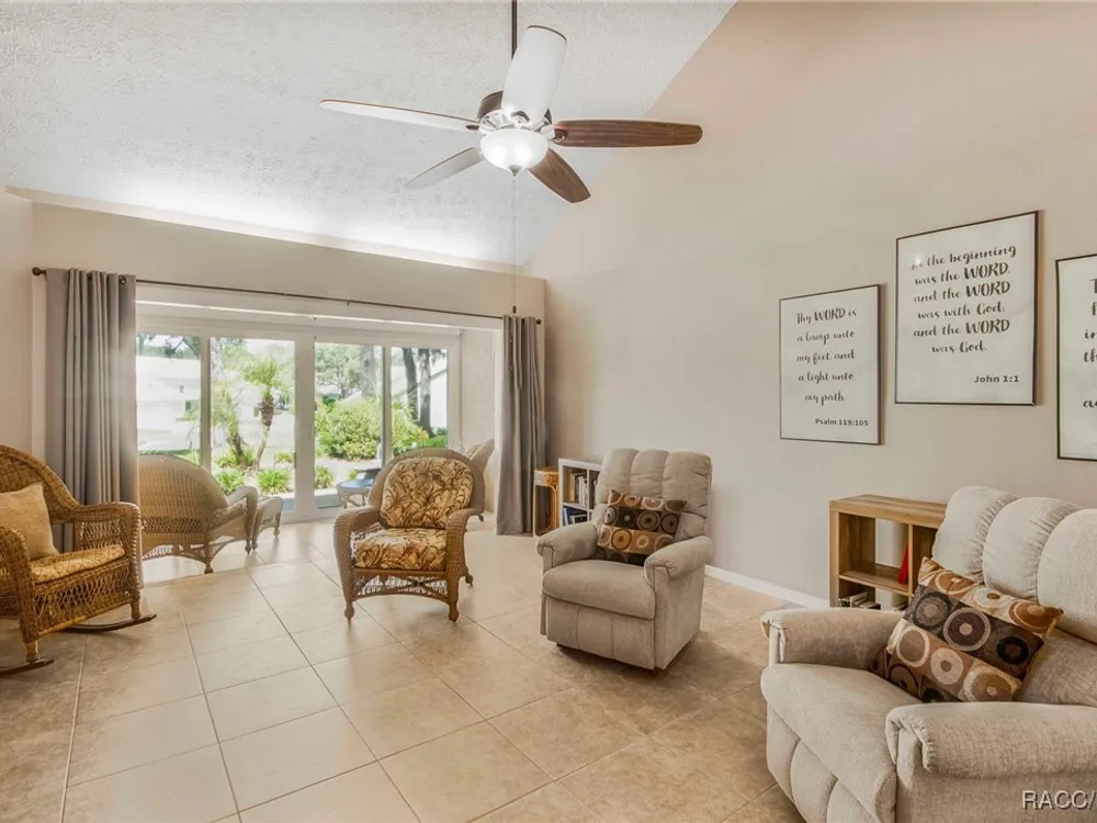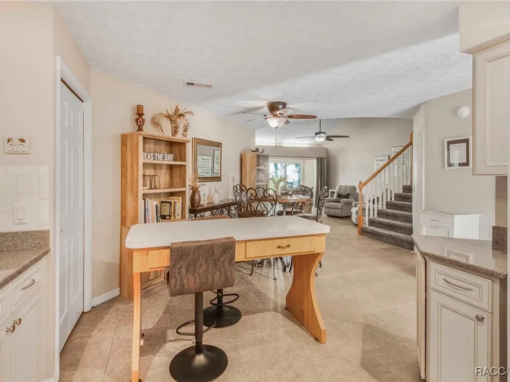 This move-in ready, beautifully updated townhouse sits on a cul-de-sac and has so many new features: Tile roof (2024) A/C (2023), kitchen, baths redone. Hurricane-proof sliders on rear allow the lanai to be part of the living area (interior sliders removed). The master is on the first floor, a kitchen door accesses the garage, there's an office/den/hobby room and a half bath. The open stairway beckons you to the second floor for 2 bedrooms, a bath and a walk-in attic. The garage has a rolldown screen door, the driveway has room for 2 cars. This townhouse has a stunning rear patio and lots of open space from which to enjoy wonderful sunsets. The active clubhouse has a much used library, a full kitchen for dinners, parties and a heated pool. Free cable, internet, wi-fi and RV/boat parking. Access to Little Lake Henderson and the Inverness Lake Chain is across the road, from a dock, alongside a community gazebo. Being within city limits, there's central water, sewer, trash pickup. Windermere sits on our 46-mile Rails-to-Trails for hiking, biking, close to downtown, quaint and historic Inverness for events, restaurants, shopping.