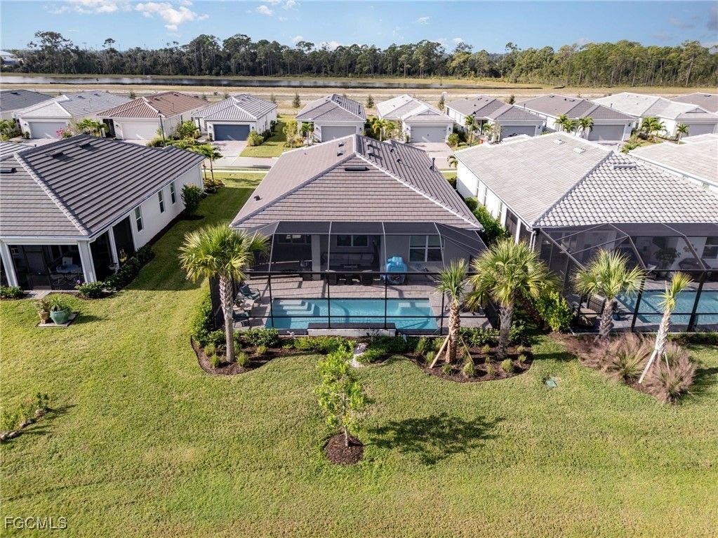 Live the Ultimate Florida Lifestyle with extraordinary indoor/outdoor living! Step outside to an exceptional lakefront outdoor retreat where every detail invites relaxation and entertainment. The spacious extended lanai (beyond builder standard) offers multiple seating and dining areas overlooking a sparkling Pool with waterfall, creating the perfect ambiance for gatherings or quiet evenings. Fire up the built- in grilling station—complete with rotisserie grill, beverage refrigerator, sink and vented hood—and enjoy alfresco dining in true Florida fashion! The exterior features a built-in speakers, wifboosters and an outdoor dimmable light package. Inside, the open concept living, kitchen, and dining areas feature triple and double pocket sliders, blending indoor and outdoor living seamlessly. The chef’s kitchen boasts 42" upper cabinets and generous counters ideal for cooking and entertaining. The luxurious primary suite offers a spa-inspired ensuite, walk-in closet and a linen closet. The guest bedroom and bath provide privacy, while the den/office with Custom Cabinetry is perfect for work, reading, or relaxing. Enjoy peace of mind with hurricane impact windows and doors, smart outlets, and an epoxy-finished oversized 3-car garage—ideal for vehicles, hobbies, or a golf cart. Situated on a completed street with no construction distractions, this move-in ready home defines luxury Florida living—indoors and out! Del Webb Oak Creek features amenities sure to please! Sports-Pools-Activities. And the restaurant is opening November 15! This well thought out home features all you need without the headache of construction. Schedule your showing today!