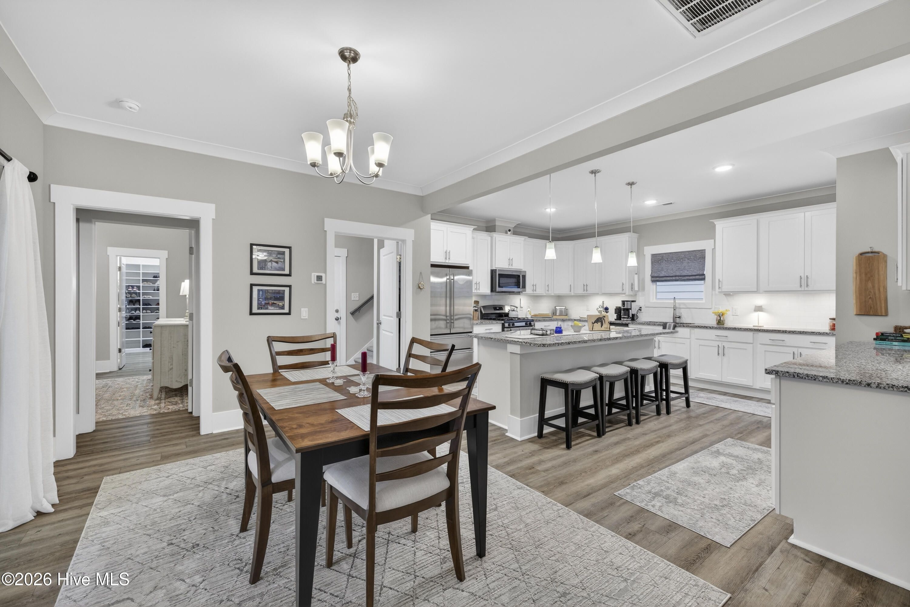 Beautiful 3-bedroom, 3.5-bath home featuring the spacious Saw Grass floor plan in the highly desirable River Bluffs community. This secure, gated neighborhood is conveniently located just minutes from Wilmington's historic downtown, area beaches, shopping, and dining. The home showcases a gourmet kitchen with quartz countertops, gas cooktop, wine refrigerator, and a large island with counter seating--perfect for entertaining. Luxury vinyl plank flooring runs throughout the main living areas, complemented by beautifully tiled bathrooms with granite vanities. The lower-level primary bedroom boasts custom Closet Factory shelving and clothing racks, providing exceptional storage and organization. Upstairs, a spacious carpeted bonus room or bedroom includes its own full bath, offering flexible living space for guests or a private retreat. Enjoy year-round relaxation in the custom fully enclosed glass sunroom/patio. Additional highlights include an epoxy-coated garage floor, irrigation system and a fenced backyard ideal for pets. Experience comfortable coastal living in a beautifully appointed home within one of the area's most sought-after communities.