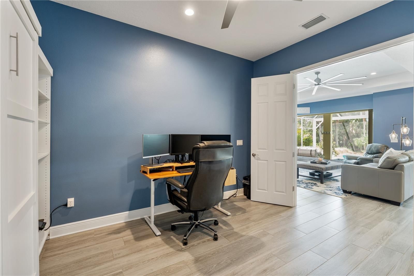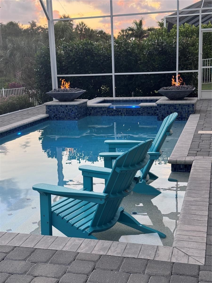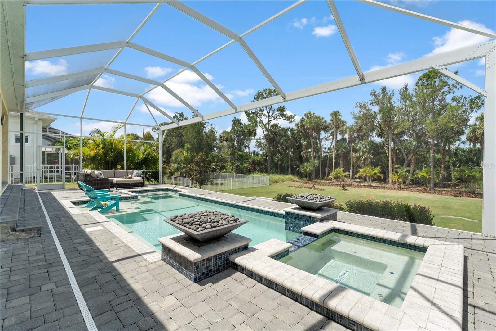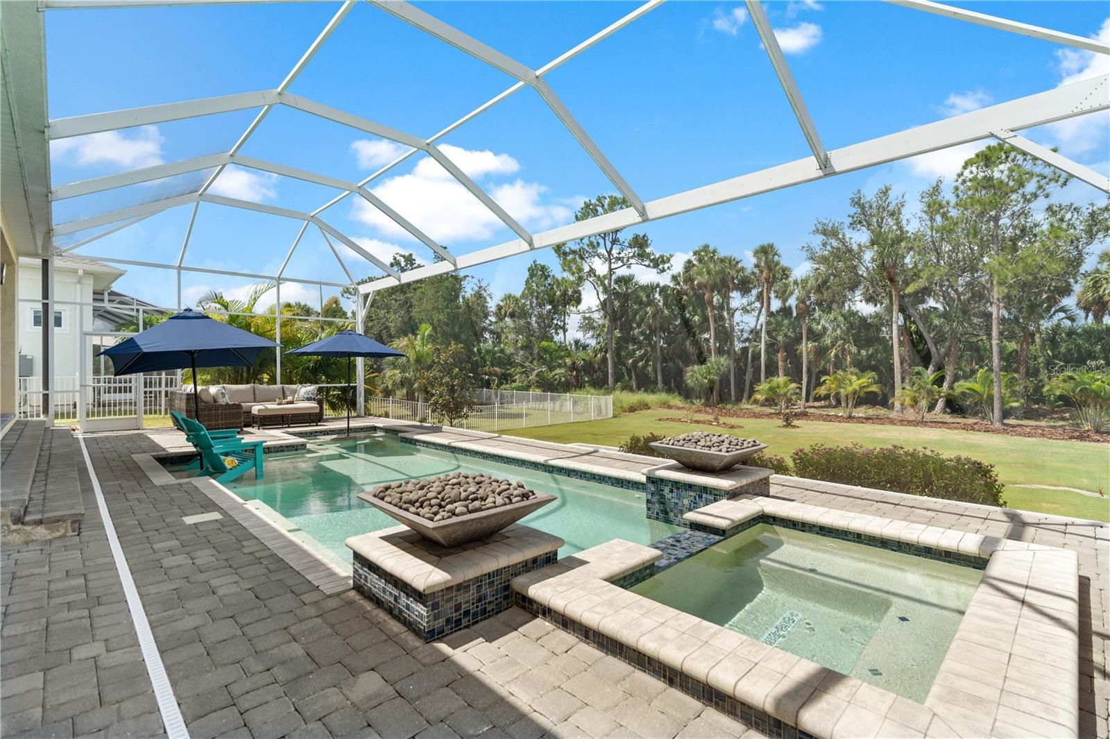 EXCEPTIONAL POOL HOME ON A SERENE PRESERVE OASIS IN THE EXCLUSIVE MIRABAY GATED COMMUNITY. Welcome to this magnificent single-family residence built in 2020, located in the highly sought-after Mirabay community, where every day feels like a weekend retreat. Mirabay is a private, waterfront community offering an array of top-tier amenities, including a fitness center, resort-style pool with a waterslide, lap pool, kids splash fountain, Poolside Café, tennis courts, pickleball courts, basketball courts, parks, playgrounds, kayaking, fishing, community boat ramp, and a boat lift for easy access to Tampa Bay. This stunning residence is packed with luxurious features and upgrades that elevate the living experience. Upon entering, you’ll be greeted by an elegant foyer showcasing a chic shiplap wall and upgraded lighting. The spacious open-concept layout connects the soaring living room to the chef’s kitchen and dining area. The living room boasts panoramic views of the preserve, offering a peaceful natural backdrop that can be enjoyed year-round through zero-corner sliders with air curtains that keep out any flying insects, dust, fumes and the indoor temperature just right while you embrace the outdoors. The gourmet kitchen is designed for both cooking and entertaining, featuring a gas range with a stylish hood, top-of-the-line stainless steel appliances, and overhead lighting above the island for cooking workspace. A built-in pantry ensures all your culinary essentials are neatly stored. Step outside to discover an expansive indoor/outdoor living area, perfect for enjoying Florida’s year-round beauty. The custom-designed pool includes a swim-up cocktail table and a Baja Sun Shelf, ideal for lounging or playing. On cooler evenings, warm up in the attached spa, complete with two gas-powered stone fire bowls. The outdoor kitchen is a chef's dream, outfitted with a custom bar, built-in gas grill, overhead vent, beer taps, ice machine, beverage fridge, and an outdoor sink. Entertaining here is effortless, with ample space for dining and lounging by the pool. The panoramic pool enclosure offers unobstructed views of beautifully landscaped gardens leading to a lush nature preserve. Inside, the luxurious primary suite features a mini split-unit AC system for personalized comfort. His and her closets are equipped with custom shelving to ensure plenty of storage. The primary bathroom includes elegant stone counters, a vanity space, walk-in shower with a built-in bench, and is pre-plumbed for a bathtub. Two additional bedrooms each have their own en-suite bathrooms, accentuated by unique design elements, including a charming shiplap wall in one and a stunning stacked stone wall in the other. For those working remotely, a private office/study with a murphy bed provides the perfect space for productivity and extra guests. This home also includes a wealth of modern upgrades and thoughtful details, such as solar panels for energy efficiency, a Trimlight system for customizable exterior lighting (perfect for seasonal holidays), an upgraded epoxy garage floor, a fully retractable garage screen with door, customized concrete landscape borders, a water softener, enhanced irrigation system, ladder and loft storage for easy access, and a Tesla charger for electric vehicle owners. Indulge in the unparalleled luxury and amenities that this home and the Mirabay community offer. Schedule your private showing today and experience elevated living at its finest!