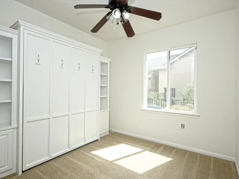 The Maverick floor plan is a charming and inviting space giving one a sense of a cozy bungalow. The recent paint job likely adds a fresh and modern touch to the interior, making it even more appealing. With 2 bedrooms and 2 bathrooms, this bungalow offers a comfortable living space for its residents. The kitchen seems well-equipped with a breakfast bar, gas range, and microwave/vent hood, making it a functional and convenient space for cooking and dining. The spacious living and dining room likely provide ample room for relaxation and entertaining guests, creating a cozy and welcoming atmosphere. The primary bedroom with a bay window and walk-in closet sounds like a comfortable and inviting retreat, offering a peaceful space for rest and relaxation. The guest bedroom with a Murphy bed is a clever and space-saving feature, providing flexibility for accommodating visitors or creating a home office or hobby space when not in use. The inclusion of a laundry room is a practical and convenient feature, making it easy to take care of household chores. The screened-in patio is a lovely addition, offering a space to enjoy the outdoors while being protected from the elements. Overall, this cozy bungalow seems to offer a comfortable and functional living space with thoughtful design elements and practical features. It provides a welcoming and inviting environment for its residents to enjoy and make their own.