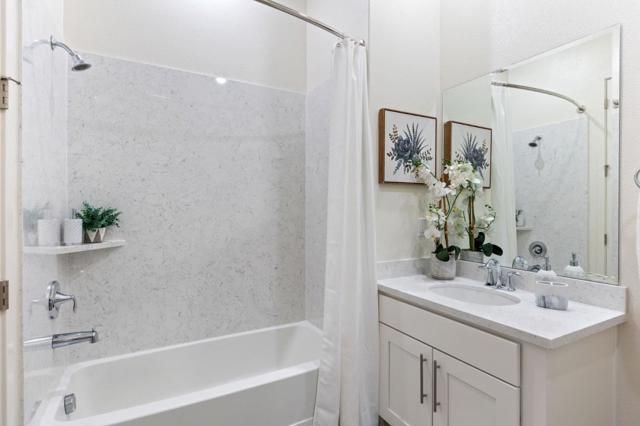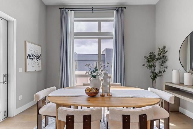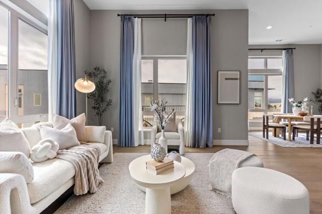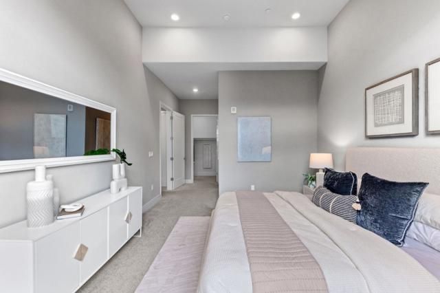 Welcome to Foster Square Community, a vibrant 55+ community in the heart of Foster City. Built in 2020, this modern condo offers an open floor plan with soaring ceilings, tall windows, and abundant natural light that fills every room. Tasteful flooring, recessed lighting, and thoughtful design details create an elegant yet comfortable living space. The home features three spacious bedrooms, including a primary en-suite retreat with a luxurious bathroom and oversized closet. The contemporary kitchen seamlessly connects to the living and dining areas, making it ideal for both daily living and entertaining. The modern, high-end chefs kitchen is outfitted with top-of-the-line appliances, sleek cabinetry, and a convenient breakfast bar, perfect for casual dining. Additional highlights include in-unit laundry, a large private balcony with neighborhood views, the Foster Square community amenities, and convenient access to popular shops, dining, and the Foster City lagoon trails. This unit includes a private, enclosed 2-car garage within the secure parking facility. Quick access to highway 101 makes Bay Area travel & daily commuting a breeze. Enjoy low-maintenance living in this welcoming community designed with comfort, connection, and convenience in mind.