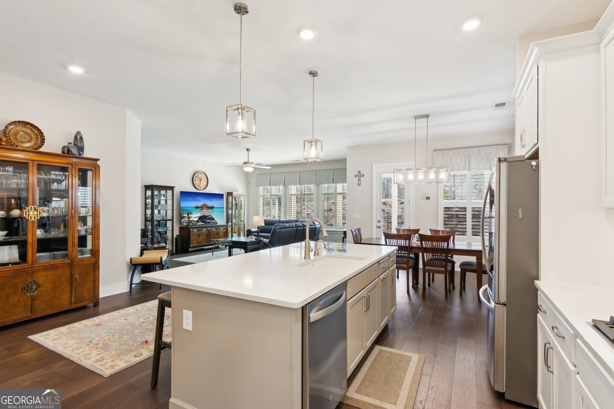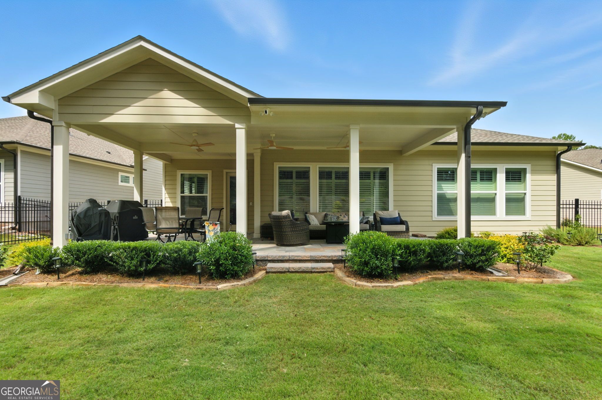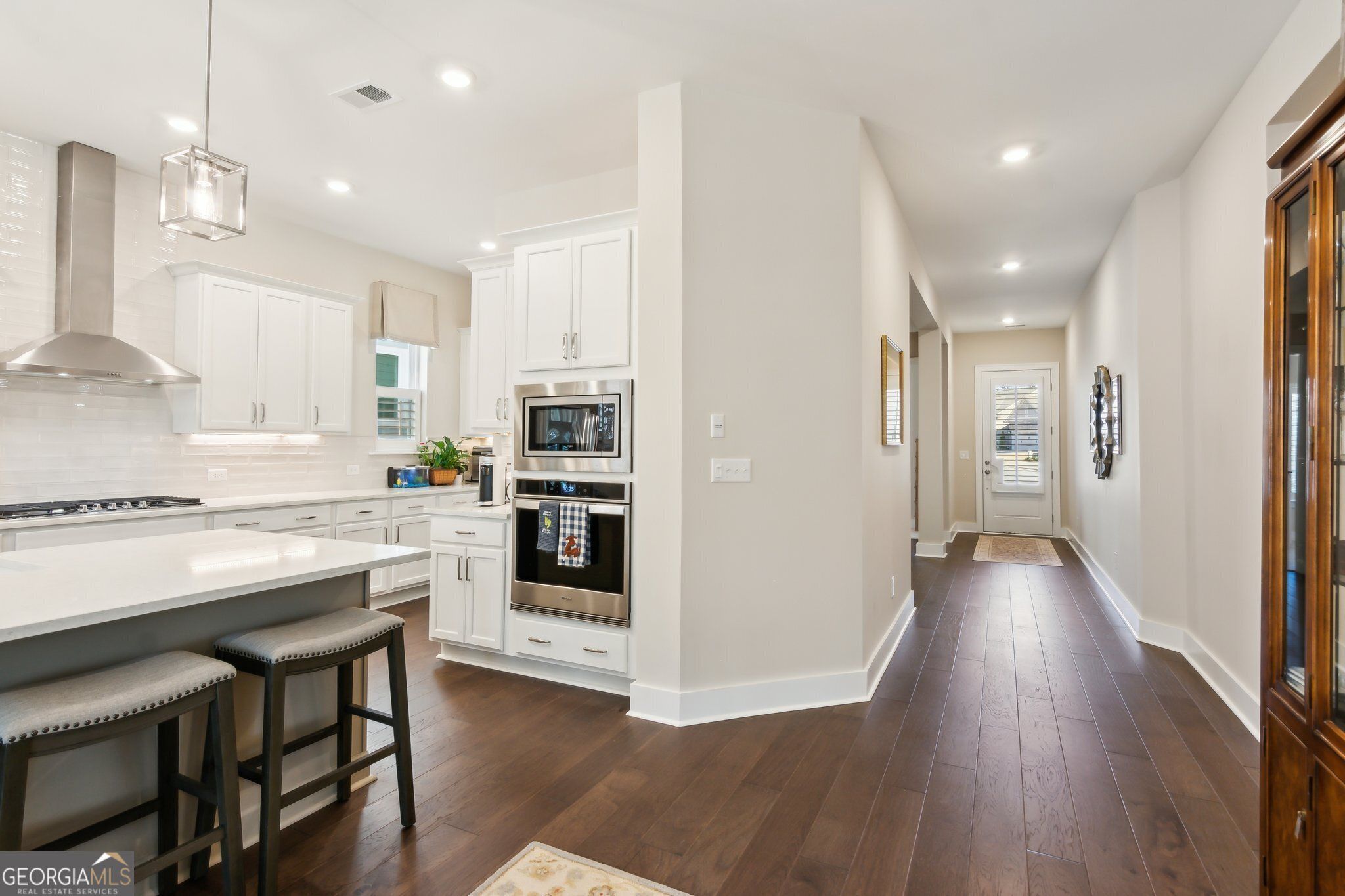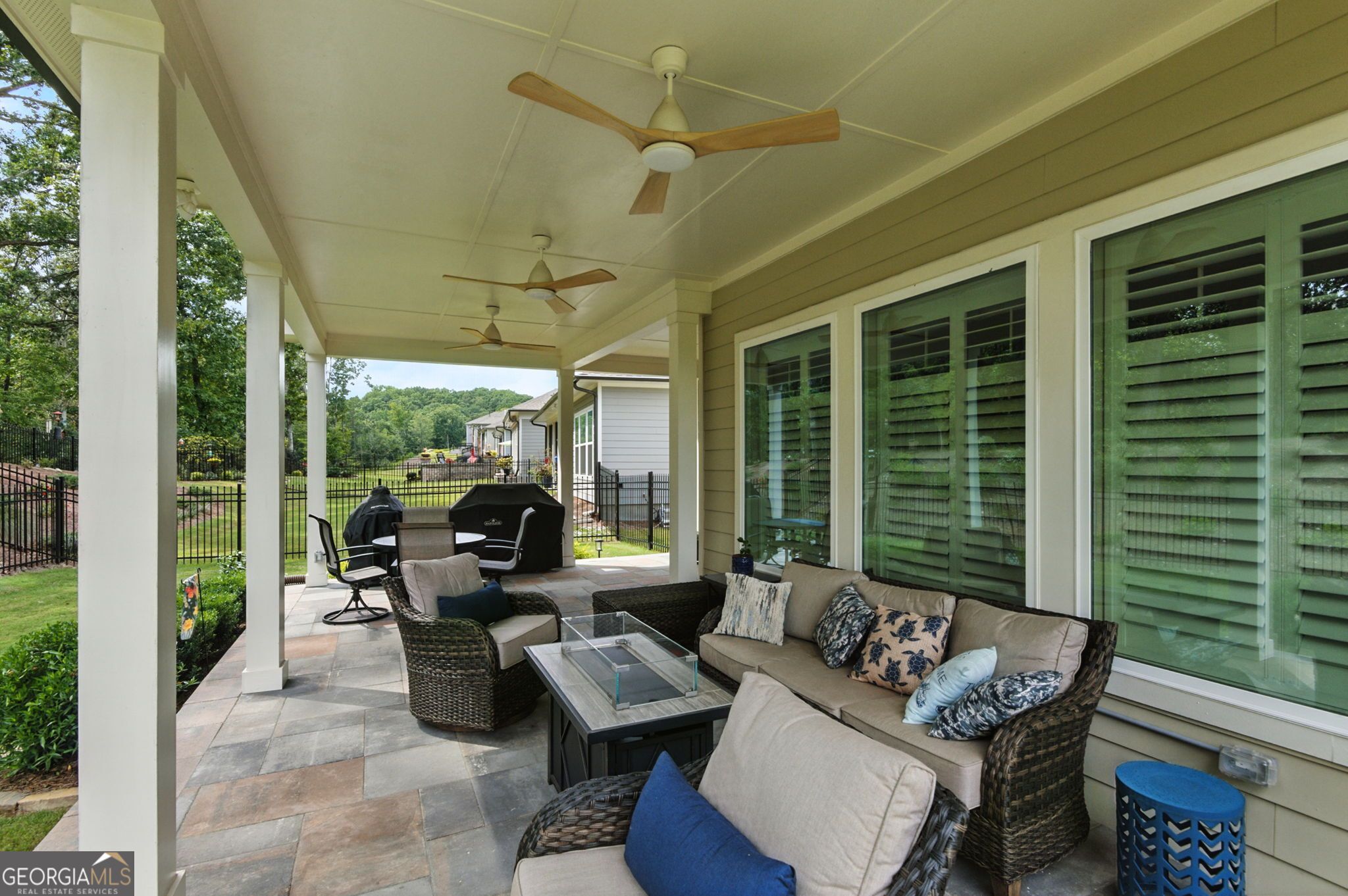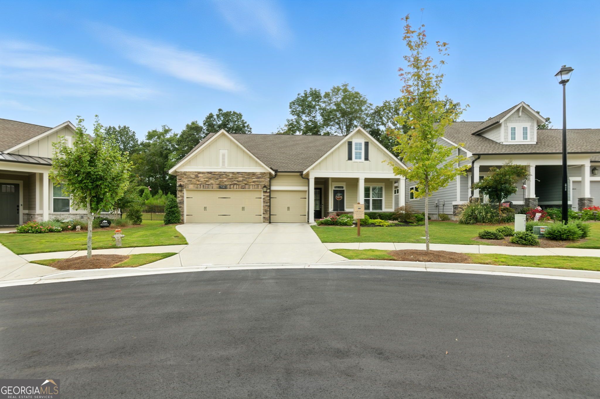 This stunning home with a 3-CAR GARAGE is in the coveted, exclusive, vibrant, active-adult community of The Retreat at Sterling on the Lake! All 3 of the bedrooms are on the main level. This is the Freeman Plan, which is the largest floor plan in The Retreat. The location is one of the most sought-after in the community, not only because it is in the cul-de-sac but also because of the gorgeous wooded view. When you step outside onto the extended, covered, rear porch and see all of the nature that abounds in the back yard, you will want to stay for hours! This home truly has a surprise around every corner! From the oversized walk-in pantry, to the spacious laundry room, to the zero-entry super shower in the owner's retreat, to the cozy study to the 10-foot ceilings, the surprises just keep coming and coming. The pristine kitchen includes a spacious island with quartz countertops, stainless steel appliances, a built-in microwave and oven, and a designer stainless steel vent hood above a 36" gas cooktop! Guests can relax in either of the two guest bedrooms, both with dedicated bathrooms. This home also includes instant hot water and a tankless hot water heater. The plantation shutters and the overhead storage in the garage will stay. This north-facing home is single-level living at its finest! The Retreat is a vibrant 55+ gated community, and the residents enjoy access to their own private exclusive amenities as well as the resort-style amenities of Sterling on the Lake, including pools, tennis courts, pickleball courts, walking trails, kayaking, fitness center, gym, theater, library, activities director, and more. Neighborhood events include Concerts in the Park, Movie Nights, Food Truck Fridays, Pool Parties, Holiday Parties, Spectacular 4th of July Fireworks, Volunteering, Empty-Nester Clubs, Men's Clubs, Women's Clubs, Coed Clubs. This home is truly located in a vibrant, active adult community. Enjoy the peace of mind of knowing that your one-level home was built by one of the nation's top home builders, David Weekley Homes! Those who qualify can even take advantage of Hall County's Senior Tax Exemptions! The 2024 taxes listed represent a senior discount. Schedule your private showing today and make this show-stopping property yours! Note: All visitors must sign the Visitor Sign-In Sheet located on the kitchen island prior to touring the home.