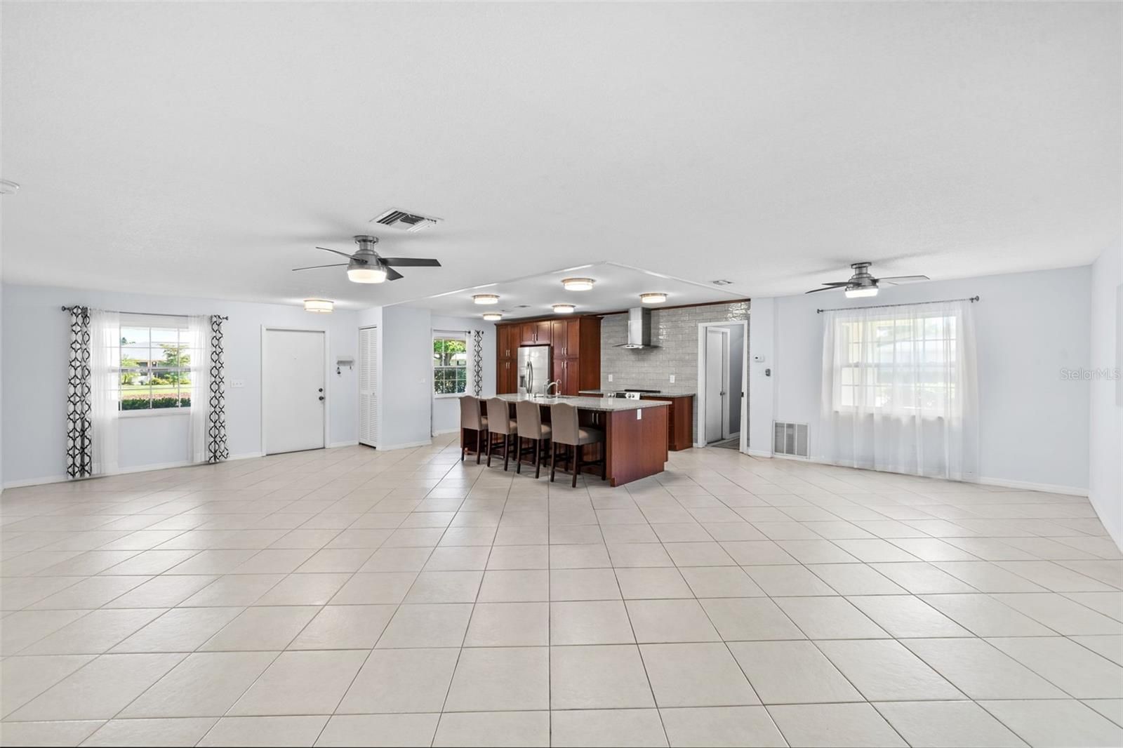 - Ceiling Fan(s), Kitchen/Family Room Combo, Living/Dining Room, Open Floorplan, Other, Main Level Primary, Solid Surface Counters, Thermostat