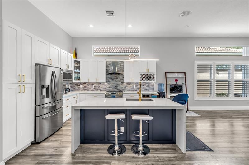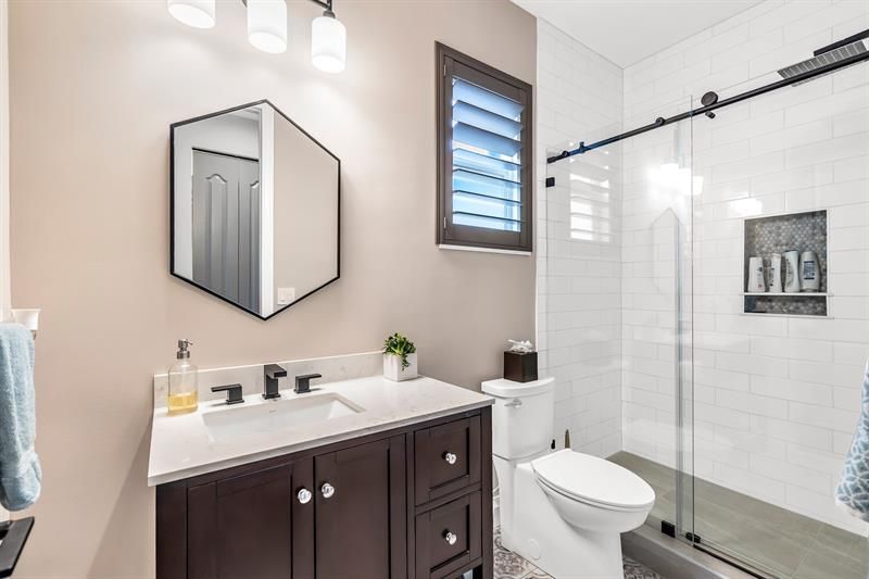 Stunning home in the serene, boutique 55+ community of Mizner Falls! This beautifully updated 2/2.5 + den/office features a spacious open-concept layout with vaulted ceilings & abundant natural light. The large primary suite & second bedroom both offer en suite baths, plus a versatile den/office. Enjoy a heated private pool (redone 2022), sea oak flooring, & a modern gourmet kitchen with a waterfall island featuring quartz countertops, SS appliances, & a wine fridge. Additional highlights include an electric fireplace, plantation & accordion shutters, garage & closet built-ins, newer water heater (2021) & AC (2023), & a freshly painted exterior (2021). Move-in ready and truly exceptional! Amenities include clubhouse, pool, fitness center, tennis, pickleball, bocce ball, and so much more!