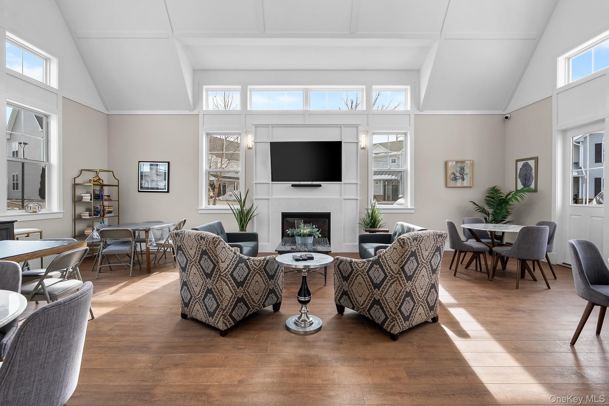 Enjoy life in the vibrant Breton Hills 55+ Community in Glen Cove. This desirable ground-floor end unit offers easy, single-level living with an open-concept layout ideal for both everyday comfort and entertaining. The spacious living room flows seamlessly into the dining area and modern kitchen, which features ample cabinetry, generous counter space, and stainless-style appliances. The home includes two large bedrooms, each with closets, and two beautifully updated bathrooms. Additional highlights include abundant storage throughout and a washer and dryer conveniently located inside the unit. Breton Hills offers an active and welcoming lifestyle with beautifully maintained grounds and a resident clubhouse featuring an interior fireplace, kitchen, and fitness area. Outdoors, residents enjoy a patio with gas barbecues, perfect for gatherings and seasonal events. The community hosts social activities such as card games and dinners, fostering a friendly and engaging atmosphere. Ample parking and designated garbage areas for residents add to everyday convenience. This move-in-ready condo is located within a secure, gated community and offers close proximity to all that Glen Cove and the North Shore have to offer. Enjoy nearby Morgan Park, Pryibil Beach, Crescent Beach, Glen Cove Golf Course, and miles of scenic waterfront. Conveniently located near shopping, dining, and major highways, this home presents an exceptional opportunity for comfortable, low-maintenance living in a sought-after 55+ community.