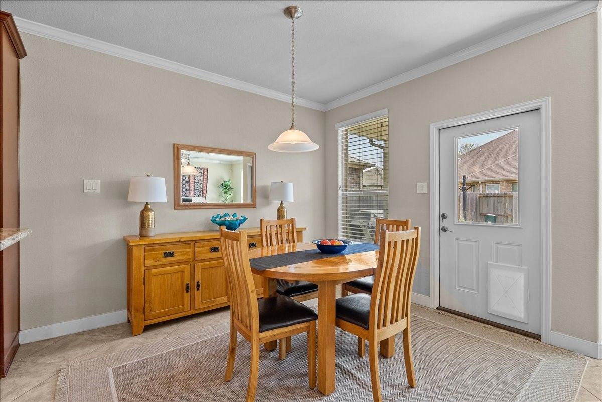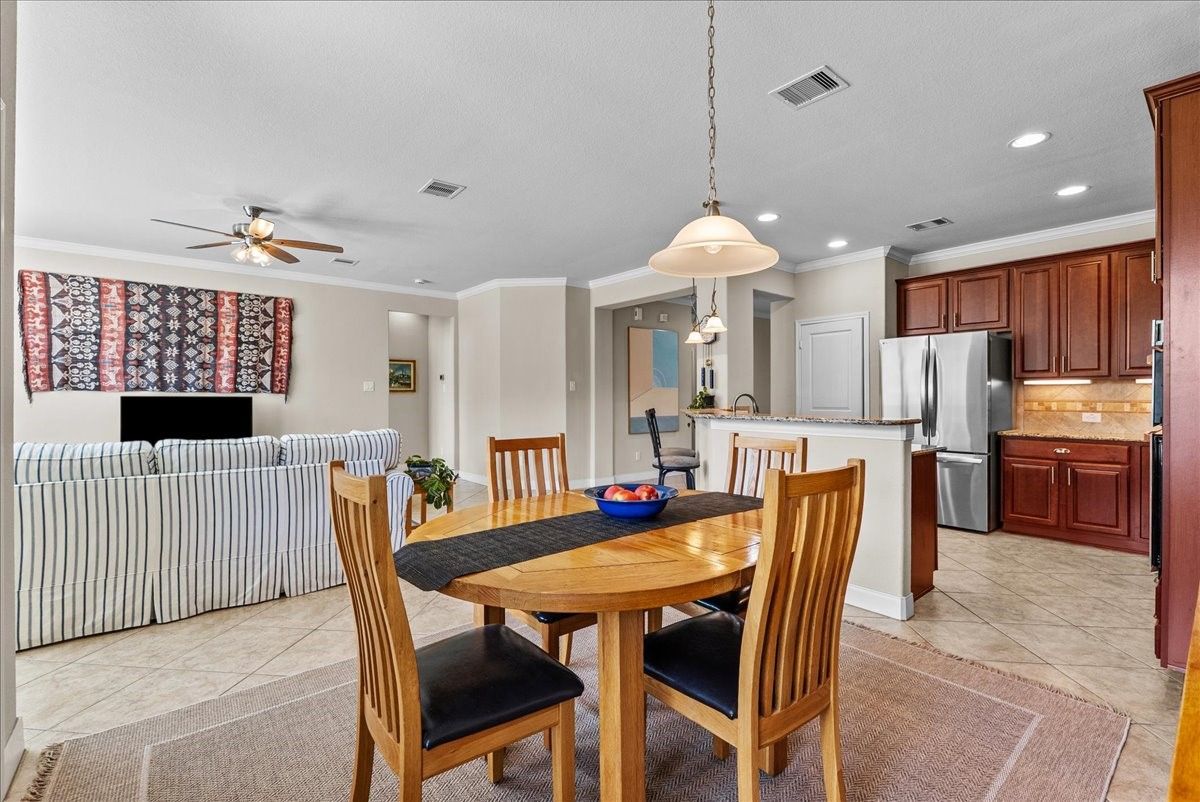 - Breakfast Bar, Crown Molding, Double Vanity, Granite Counters, High Ceilings, Kitchen/Family Room Combo, Pantry, Soaking Tub, Separate Shower, Tub Shower, Window Treatments, Ceiling Fan(s), Programmable Thermostat