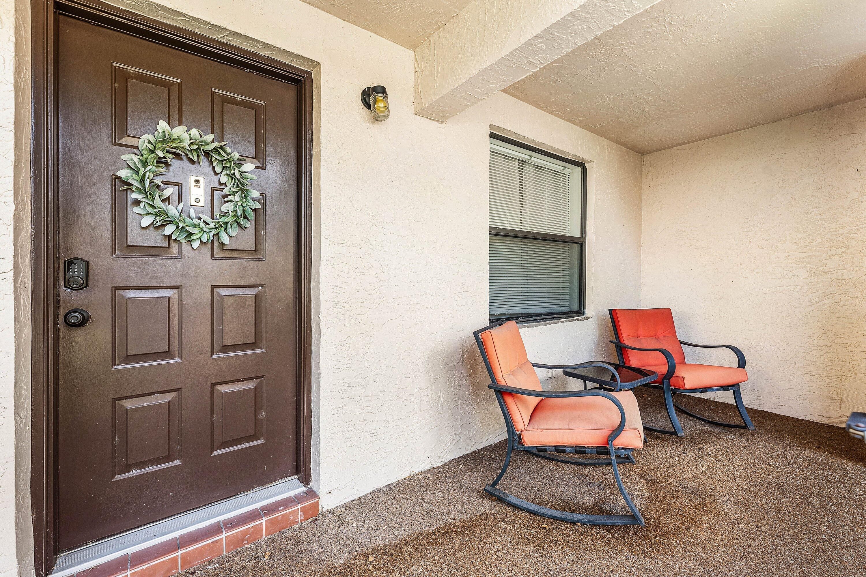 Move-in ready 1st floor condo in a desirable 55+ building! This bright and freshly painted home offers a split floor plan with plank tile flooring throughout for a clean, modern finish. The kitchen has been updated with stylish finishes, and both bathrooms have been tastefully renovated as well. A walk-in closet provides plenty of storage, while the in-unit washer & dryer add everyday convenience.Enjoy the outdoors on your screened, covered patio, with parking right outside your door for easy access. Offered partially furnished or unfurnished, this home is flexible to fit your needs. Steps to the clubhouse for a refreshing dip. Low-maintenance living in a great location--perfect for relaxing and enjoying the lifestyle you deserve!