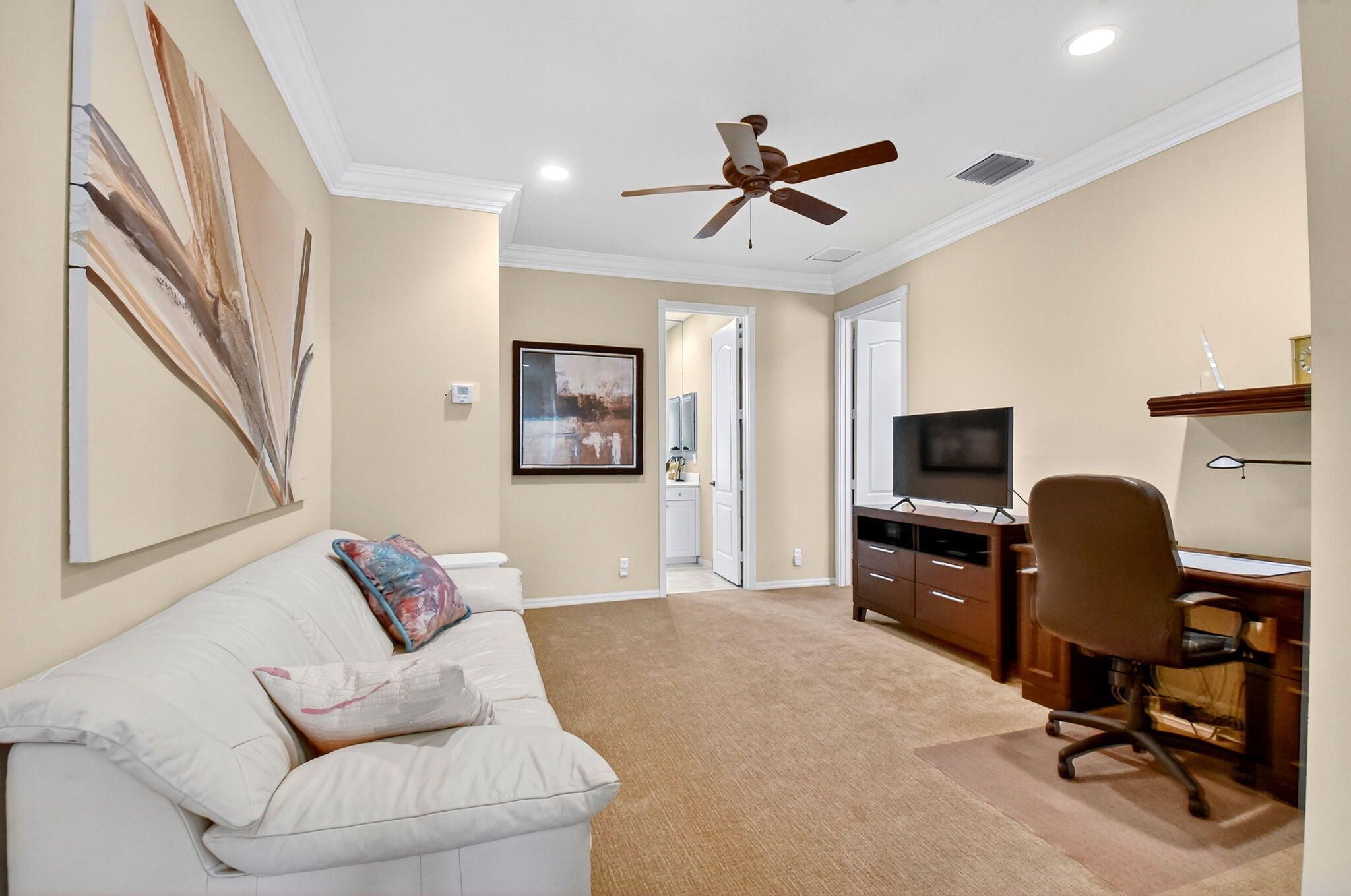 Welcome to the desirable gated community of Mizner Falls! This exceptional residence sits on one of the largest lots and is the largest home in the neighborhood. While 2 stories, it lives like a 1 story, with the Owner's Suite and a guest bedroom conveniently located on the main level. Meticulously maintained, it features diagonal tile flooring, plantation shutters, an expanded driveway, newer appliances, and a 2022 roof. The private, beautifully landscaped yard offers an extended paver patio and covered seating area, perfect for relaxing or entertaining. Upstairs, a spacious loft w/guest suite provide the ideal space for visitors, hobbies, or a home office, offering the perfect blend of comfort, flexibility. This community has less than 80% of 55+ residents...thus ALL WELCOME!!!