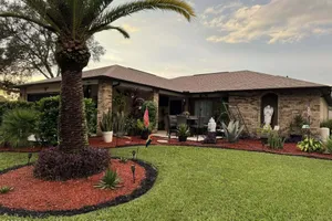 This beautifully updated home in the highly sought-after Timber Pines community is ready to impress with a brand-new roof in 2025 and a stunning, oversized backyard that truly sets it apart. Mature landscaping surrounds the property, creating a private outdoor oasis complete with a private well, making it as practical as it is picturesque. Whether you enjoy gardening, entertaining, or simply relaxing in the Florida sunshine, this backyard offers endless possibilities. Inside, the thoughtful layout begins with a spacious 16x30 living room that flows effortlessly into the 22x11 enclosed Florida room, perfect for year-round enjoyment. A formal dining room and a well-appointed kitchen with abundant cabinetry, pantry space, stainless steel appliances, a breakfast nook, and a convenient pass-through window make everyday living and entertaining a breeze. The vaulted 20x14 family room expands the living area even further, while updated fixtures and ceiling fans throughout the home provide modern comfort. The primary suite is a retreat of its own, measuring 22x11 and featuring dual closets, sliders to the Florida room, and a stylish en-suite bath with dual vessel sinks, vanity space, and a tiled walk-in shower. The split-bedroom design ensures privacy, offering a comfortable guest bedroom with ample closet space and an updated bath. Additional features include an inside laundry room with cabinetry and a utility tub, a screened two-car garage, and a welcoming front patio overlooking the landscaped grounds. Residents of Timber Pines enjoy a vibrant lifestyle with 24-hour gated security, golf, tennis, pickleball, multiple pools, a clubhouse, fitness center, and an array of social activities. With its large backyard, private well, and brand-new roof, this home combines beauty, functionality, and the best of Florida living in one remarkable package. Don't miss the chance to make this stunning property your own—schedule your private showing today and start living the Timber Pines lifestyle you've been dreaming of!