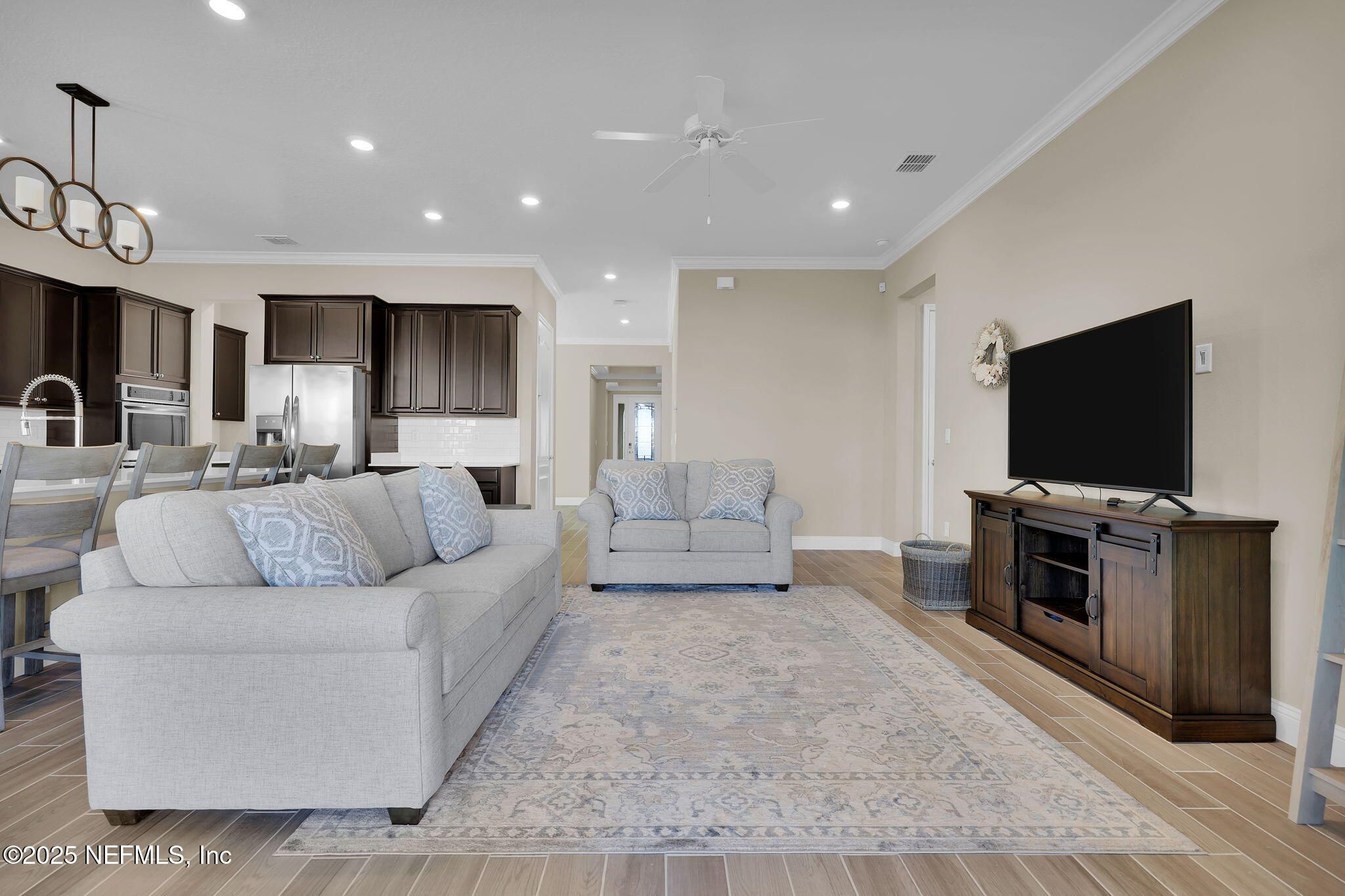 Maintenance-Free Luxury in Nocatee's Premier 55+ Gated Community! This meticulously maintained 3BR/2.5BA plus flex/dining room home is designed for low-maintenance, resort-style living in Artisan Lakes. The open floor plan features a gourmet kitchen with quartz countertops, stainless steel appliances, and a large entertainer's island. The spacious primary suite includes a spa-like bath and walk-in closet. Relax year-round on the screened lanai overlooking a peaceful, private backyard. Community amenities include a clubhouse, fitness center, resort-style pool, pickleball, walking trails, and a vibrant social calendar—plus full access to Nocatee's Splash & Spray parks, dog parks, trails, and more. Conveniently located near shopping, dining, golf, and major highways. Schedule your tour today!