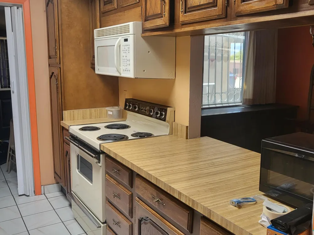 - Dishwasher, Electric Range, Exhaust Fan, Gas Hookup, Microwave, Refrigerator