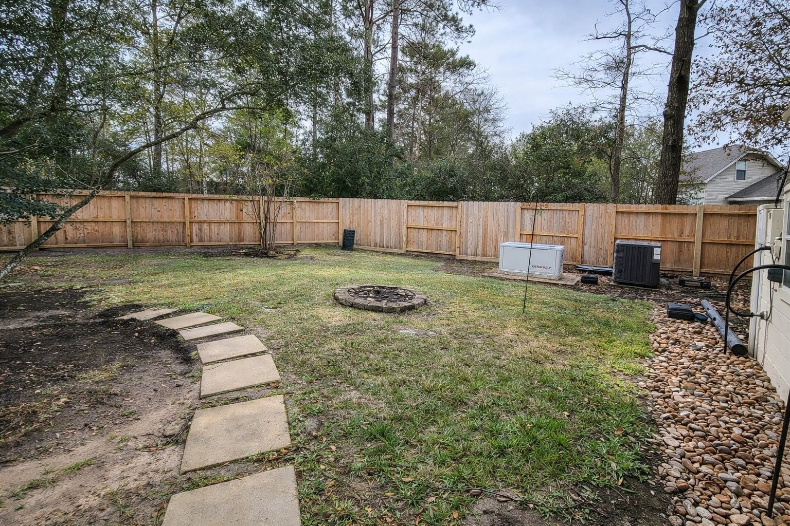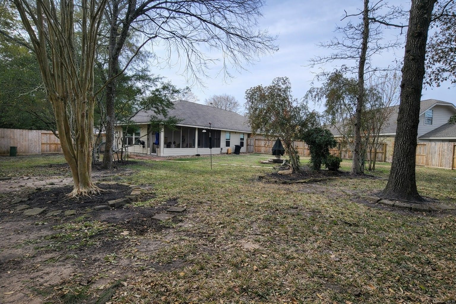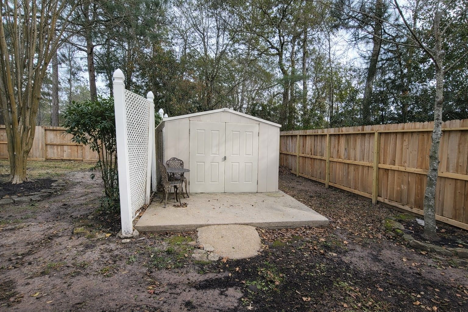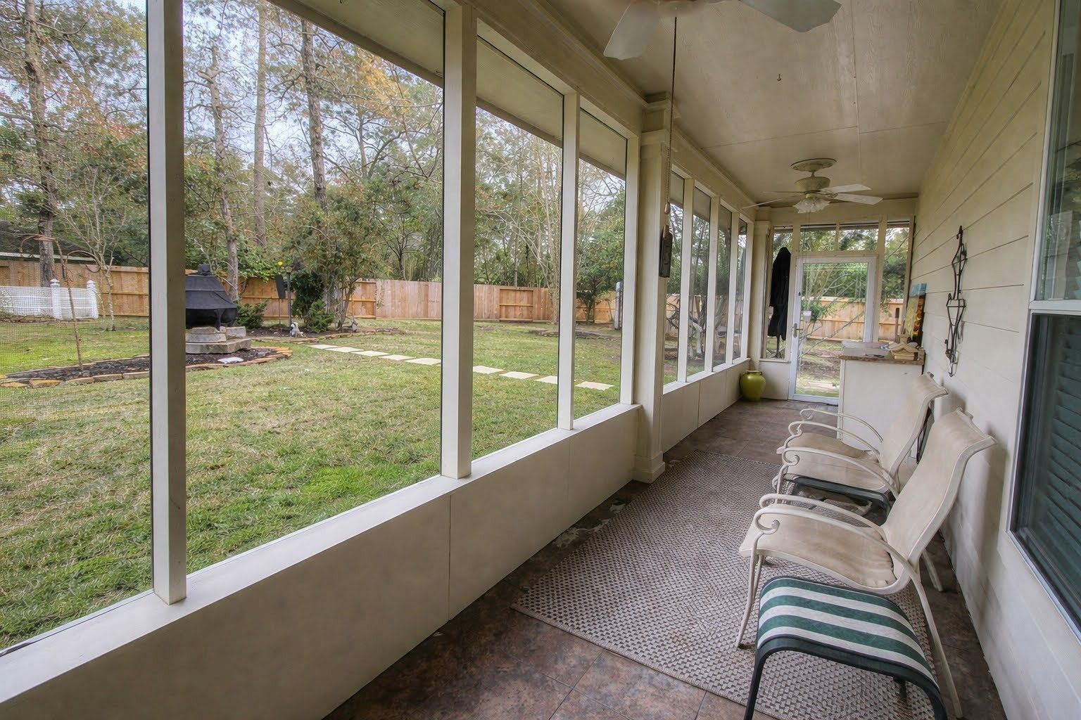 Well-maintained one-story home with a functional split floor plan & valuable upgrades throughout. The spacious living area flows into the kitchen, offering ample cabinet and counter space and an open feel ideal for everyday living and entertaining. The private primary suite features an en-suite bath with extended vanity and seating area, separate shower, soaking tub, and a large walk-in closet. Secondary rooms are generously sized, including a dedicated office or 3rd bedroom with a full-size closet, offering flexible living options.Recent improvements include a new HVAC system installed October 2024 and a whole-home generator for added comfort and peace of mind. Enjoy the covered and screened patio overlooking a large, private backyard with no rear neighbors, ideal for outdoor living, entertaining, or future customization. Property also includes a backyard storage unit. Convenient location near I-45, shopping, dining, and everyday amenities. Includes all the amenities of Windsor Hills.
