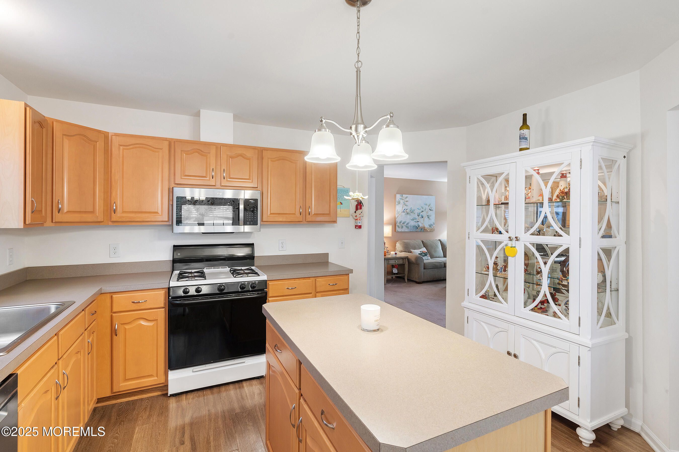 Welcome to Perry's Lake 55+ community! This well maintained Cranbury model is 1,680 sq. ft. 2 bedroom, w\ den or office, 2 full bathrooms. This open & bright kitchen with maple cabinetry, has an additionl eat- in- kitchen area, center island, dishwasher, microwave, new lighting in kitchen & formal dining room, new floors in dining room & kitchen, freshly painted, large laundry room, new dryer, washer 3 yrs old, primary bedroom features a true walk-in closet, with access to primary bathroom, shower stall, linen storage, large garage with pull down attic for storage. This community has a new clubhouse, pickleball, excercise room, basketball court, tennis, social club & is three miles from LBI! summertime never looked so good! This home will not last! Shedule your showing today
