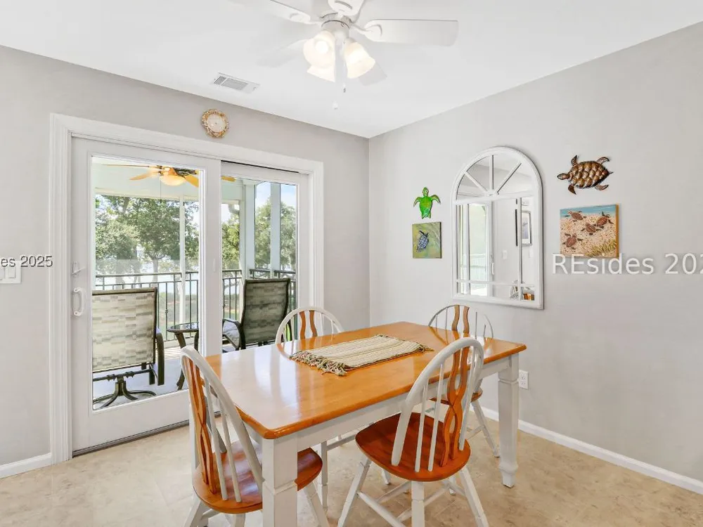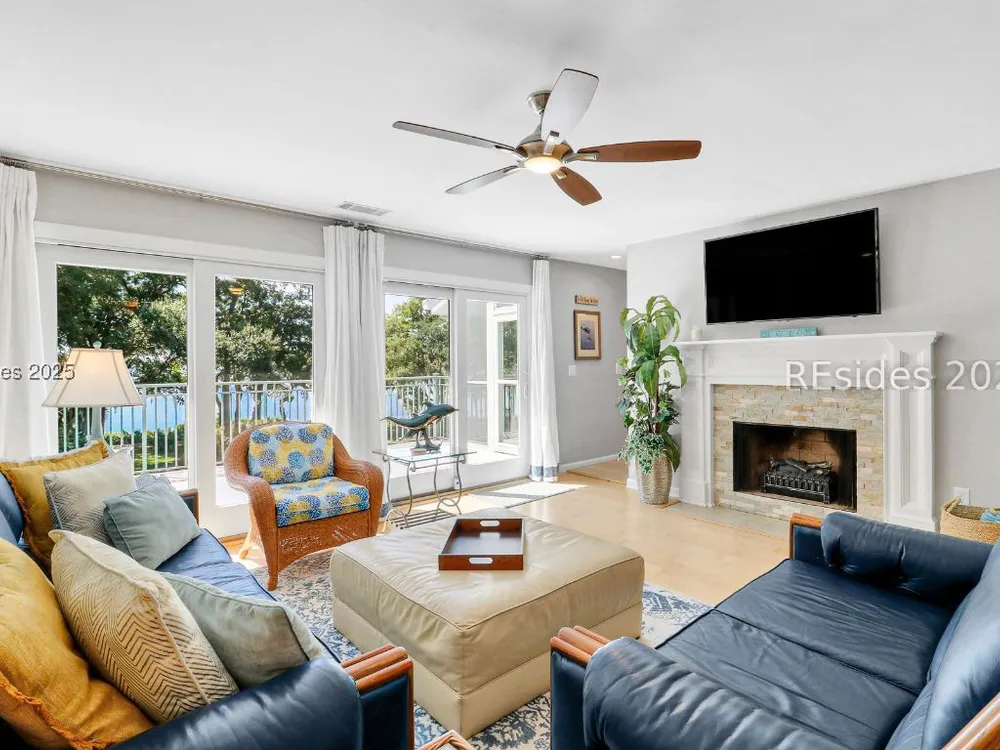 Nestled on the Top-Floor with breathtaking views of the Skull Creek Intracoastal Waterway, this rare turnkey 2-bedroom villa offers the perfect blend of comfort and Lowcountry charm. Located behind the gate in sought-after Hilton Head Plantation, this fully furnished residence has a spacious interior and expansive outdoor living. The Light & Bright inside offers updated flooring, ideal bedroom separation, a refreshed kitchen, smooth ceilings, and a large primary bathroom with a beautifully designed shower! Versatile central room can be used as an office or flex-space. Enjoy evening sunsets hovering over the water on either your private back patio w/ a retractable awning or the separate screened porch! Separate owners storage closet outside the front door. The Indian Springs complex offers a private dock & pool for its owners. Convenient location within amenity-rich HHP!