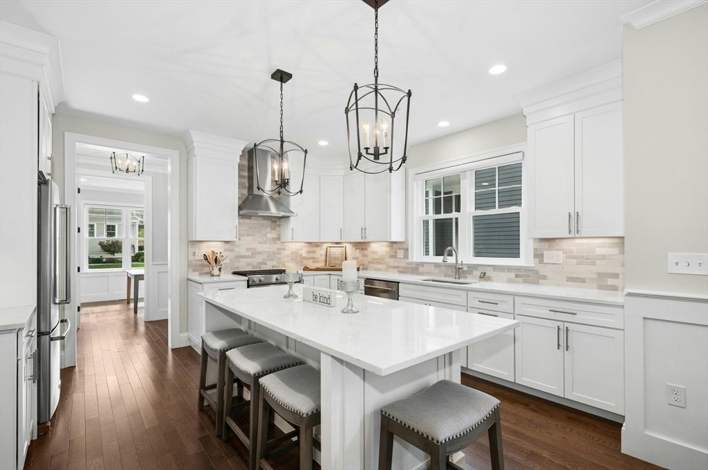 High-end luxury awaits at "The Trails," one of Hopkinton's most coveted, 55+ active communities (at least one owner). This 4-year-young, attached townhome provides over 3,000 SF of designer-inspired living space, including a finished walkout lower level. The residence is truly exceptional, boasting over $132,000 in custom upgrades beyond the builder’s spec. Architectural details like elegant wainscoting, detailed custom molding, vaulted ceilings and high-end fixtures elevate every room. Hardwood floors flow through the gourmet kitchen—equipped with a professional hood vent, four-seat island, backsplash, and beautiful quartz countertops—into the dining room and the sun-drenched family room. The 1st-floor main suite features a luxurious bathroom and spacious walk-in closet. With a full bath on every level, plus a versatile loft and bonus room upstairs, the functionality is unmatched. Set on a premium lot that abuts conservation woods, seasonal water views!