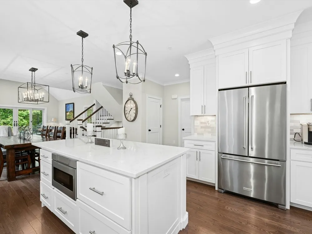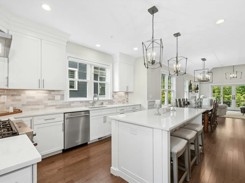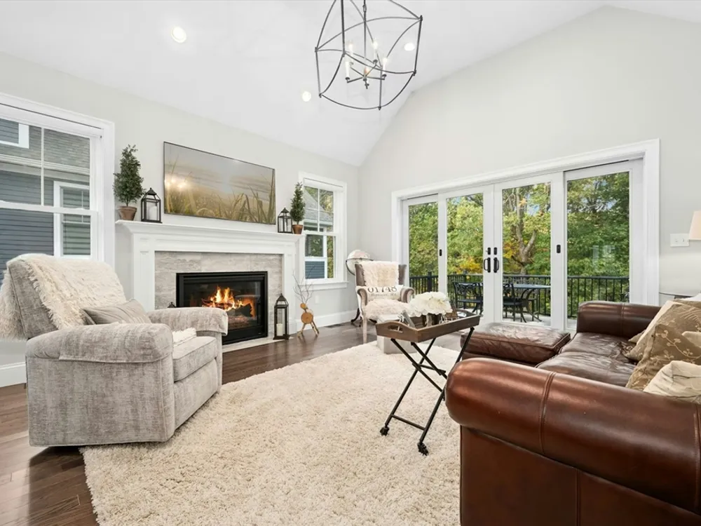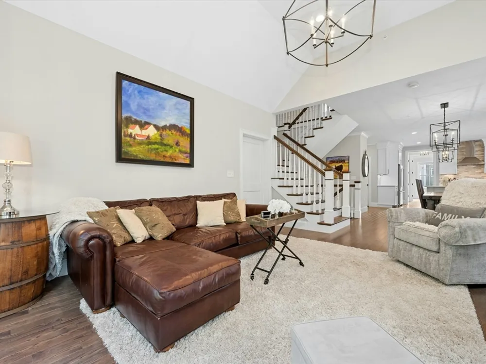 High-end luxury awaits at "The Trails," one of Hopkinton's most coveted, active communities. This 4-year-young, attached townhome provides over 3,000 SF of designer-inspired living space, including a finished walkout lower level. The residence is truly exceptional, boasting over $132,000 in custom upgrades beyond the builder’s spec. Architectural details like elegant wainscoting, detailed custom molding, vaulted ceilings and high-end fixtures elevate every room. Hardwood floors flow through the gourmet kitchen—equipped with a professional hood vent, four-seat island, backsplash, and beautiful quartz countertops—into the dining room and the sun-drenched family room. The 1st-floor main suite features a luxurious bathroom and spacious walk-in closet. With a full bath on every level, plus a versatile loft and bonus room upstairs, the functionality is unmatched. Set on a premium lot that abuts conservation woods, serene seasonal water views can be enjoyed the moment you move in!