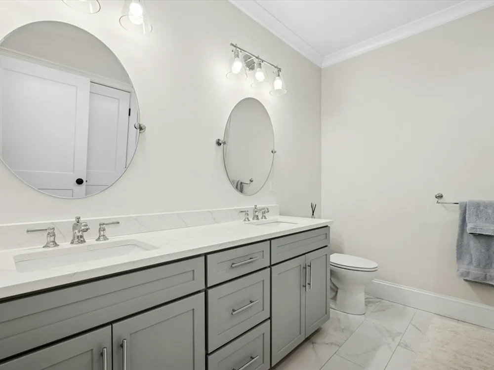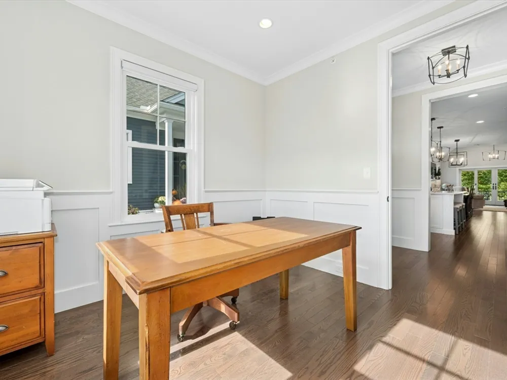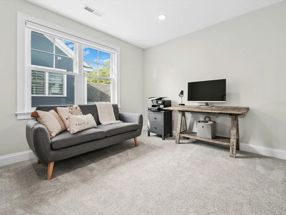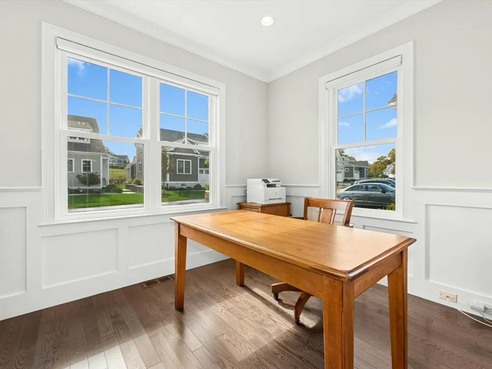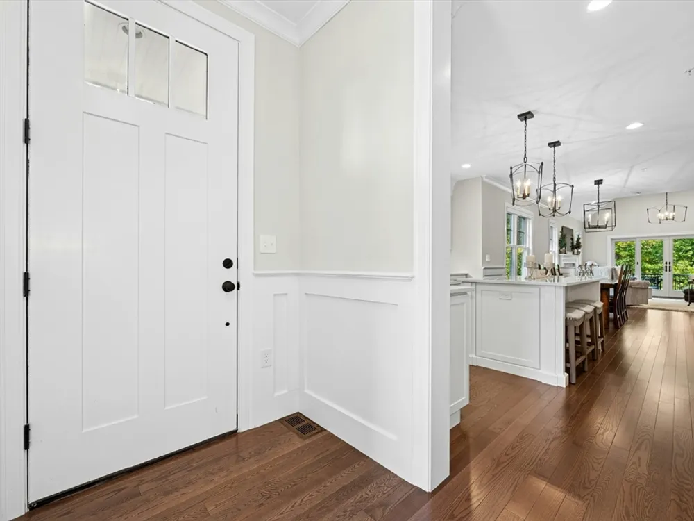 High-end luxury awaits at "The Trails," one of Hopkinton's most coveted, active communities. This 4-year-young, attached townhome provides over 3,000 SF of designer-inspired living space, including a finished walkout lower level. The residence is truly exceptional, boasting over $132,000 in custom upgrades beyond the builder’s spec. Architectural details like elegant wainscoting, detailed custom molding, vaulted ceilings and high-end fixtures elevate every room. Hardwood floors flow through the gourmet kitchen—equipped with a professional hood vent, four-seat island, backsplash, and beautiful quartz countertops—into the dining room and the sun-drenched family room. The 1st-floor main suite features a luxurious bathroom and spacious walk-in closet. With a full bath on every level, plus a versatile loft and bonus room upstairs, the functionality is unmatched. Set on a premium lot that abuts conservation woods, serene seasonal water views can be enjoyed the moment you move in!
