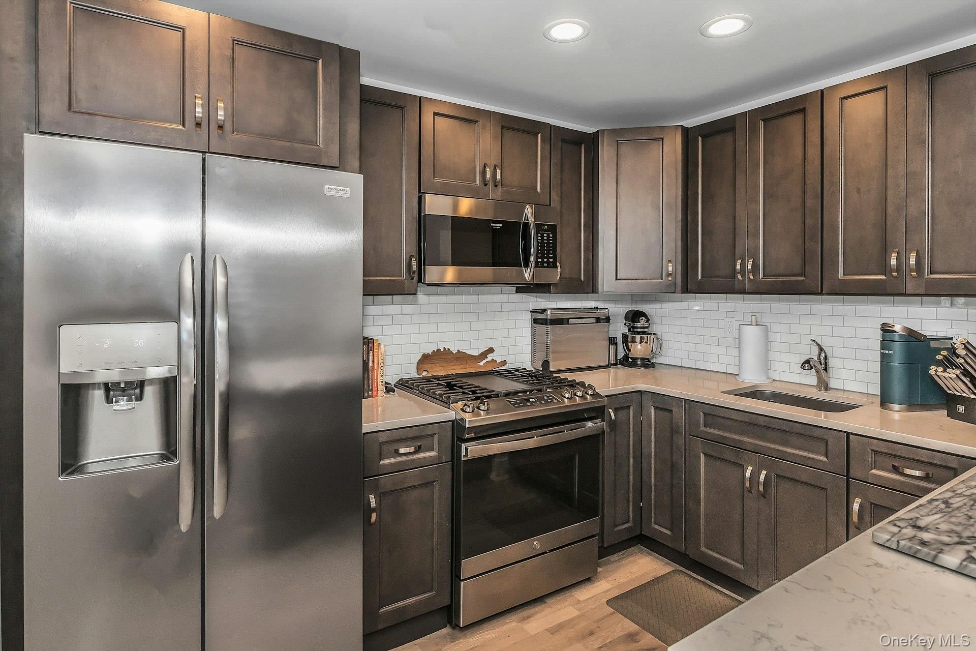Welcome home to this beautiful & sundrenched 55+ Luxury Condo end unit in the desirable Breton Hills Community in Glen Cove. This unit offers quality workmanship throughout, including well pointed Mill Work & Venetian Plaster. This bright and spacious home offers an open-concept vaulted ceiling living room, kitchen, and dining area, perfect for comfortable everyday living and entertaining. The Primary suite features a private en-suite bathroom, while a second bedroom and hallway bath provide additional space for guests or an office. A full size washer and dryer are conveniently located within the unit, along with a utility room and storage area for extra convenience. This Community has a beautiful vaulted ceiling Club House with Fireplace, Kitchen and Fitness Room. Stone patio and gas barbeques provide a lovely outdoor area. This active community gathers for Social activities including; Bocci, Cards & Dinners. There’s also plenty of parking and a separate garbage area for residents. This is a rare opportunity to own a modern, move-in ready condo in a secure, gated community that offers comfort, convenience, and community. Be a part of this active 55+ Gated community, centrally located to all the best the North Shore has to offer, including; Morgan Park, Prybil Beach, Glen Cove Golf Course and miles of waterfront.